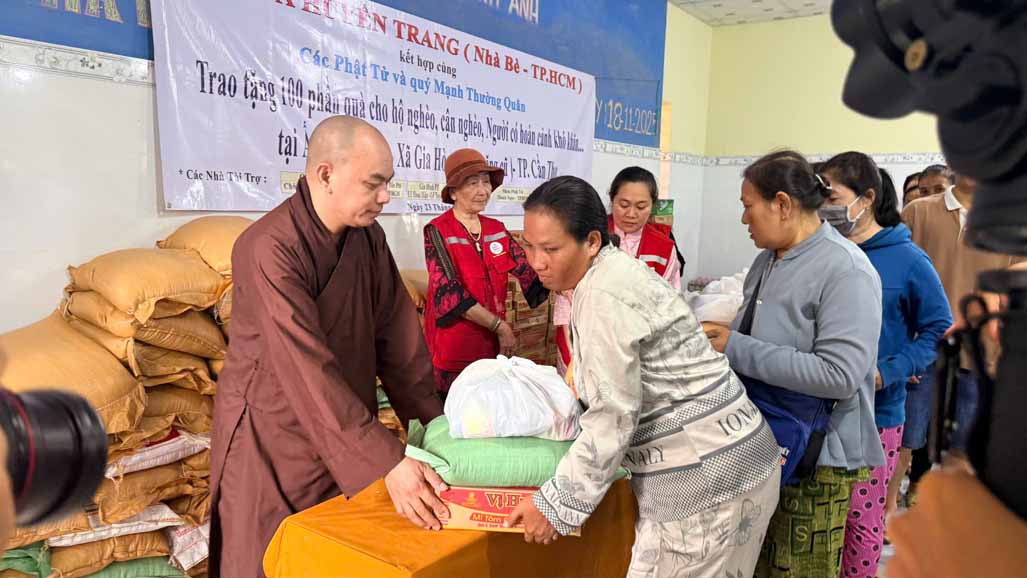 Bên cạnh đó, đoàn tiếp tục đến Tu viện Khánh Anh, xã Gia Hòa, TP. Cần Thơ, trao tặng 100 phần quà đến các hộ gia đình khó khăn. Các phần quà gồm nhu yếu phẩm phục vụ sinh hoạt hằng ngày, góp phần giúp bà con ổn định cuộc sống trong giai đoạn cuối năm.