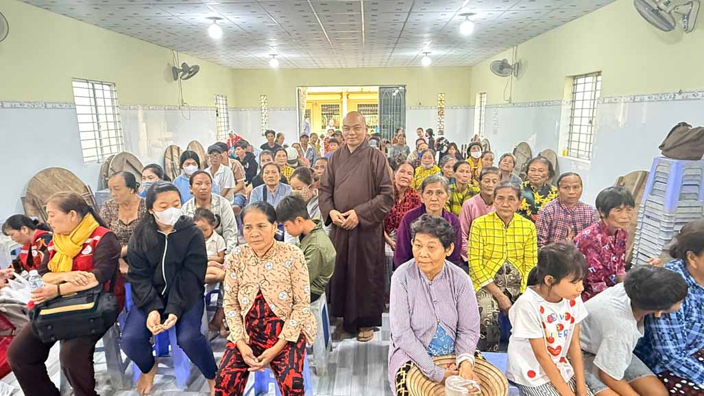 Chư Tăng tại tu viện cùng Phật tử địa phương đã thân tình đón tiếp đoàn, buổi trao quà diễn ra trong tinh thần hòa hợp, chia sẻ và lan tỏa lòng từ bi của đạo Phật. Đây là nguồn hỗ trợ thiết thực giúp bà con vượt qua khó khăn trước mắt, nhất là sau mùa mưa bão và thời điểm giáp hạt.