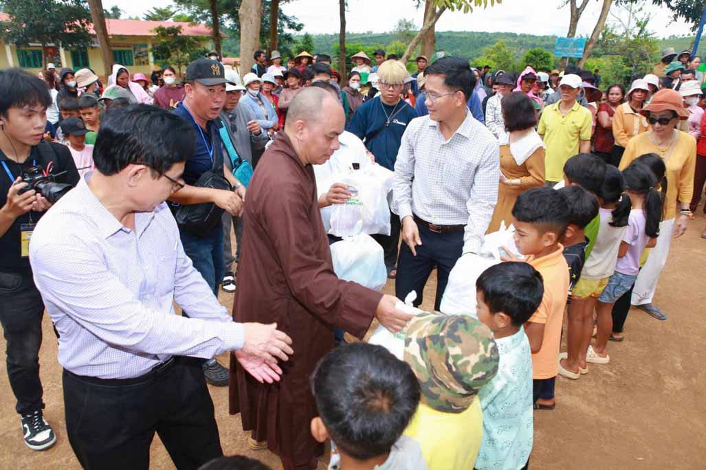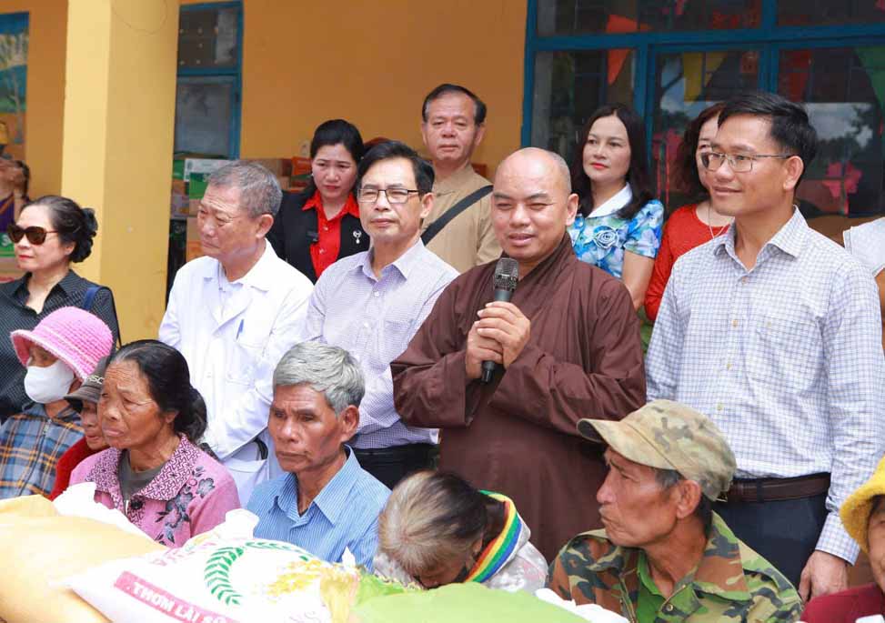 Phát biểu tại buổi trao quà, Đại đức Thích Giác Tiến, Tri sự chùa Huyền Trang, Trưởng đoàn chia sẻ: “Tinh thần từ bi của đạo Phật luôn hướng đến việc san sẻ yêu thương, giúp đỡ những mảnh đời khó khăn trong xã hội. Mỗi phần quà tuy giá trị vật chất không lớn, nhưng chứa đựng tấm lòng của chư Tăng Ni, Phật tử và các mạnh thường quân. Mong rằng những món quà nhỏ bé này sẽ góp phần mang lại niềm vui, động viên bà con và các em học sinh vươn lên trong cuộc sống.”