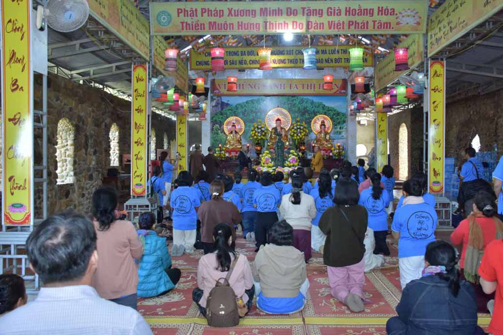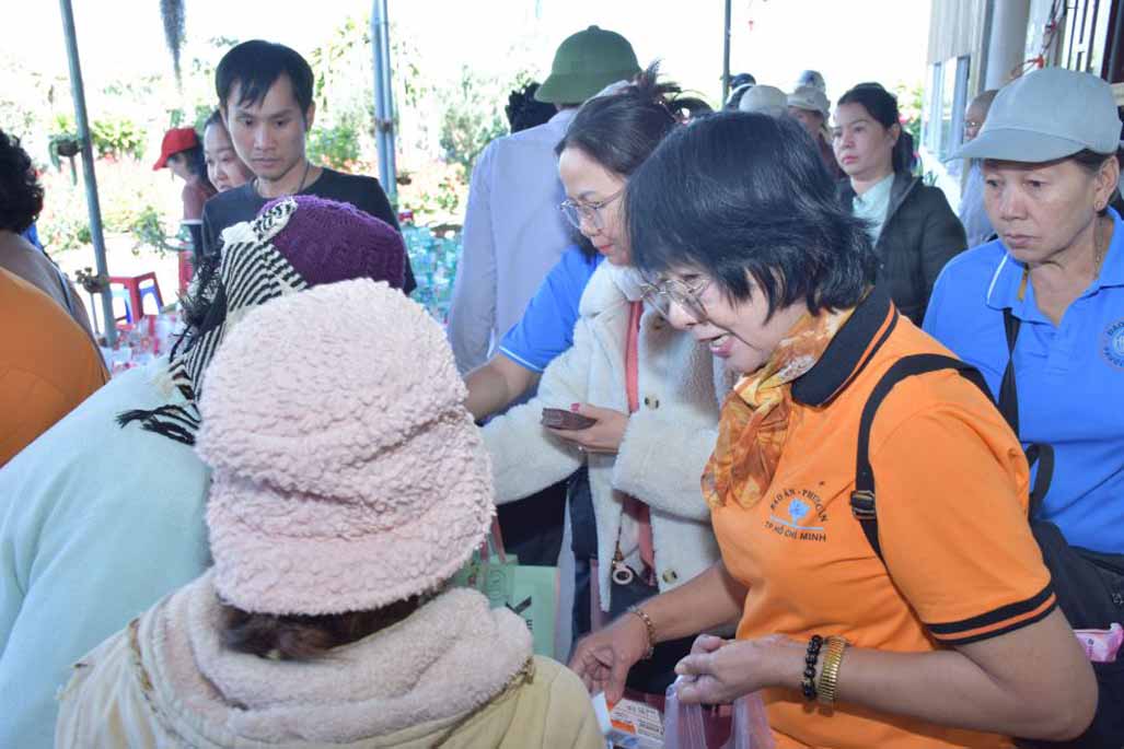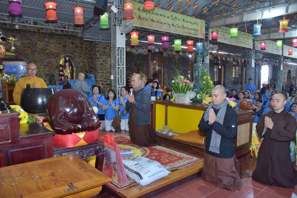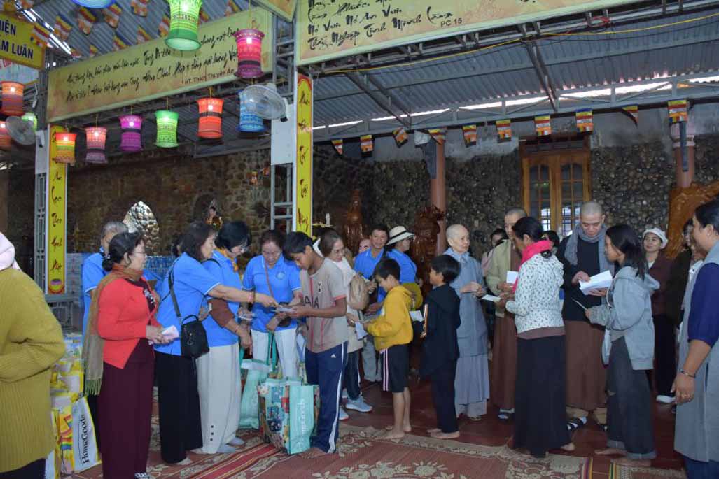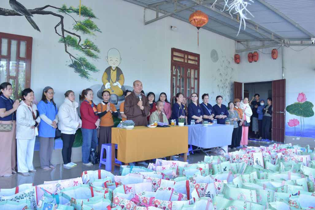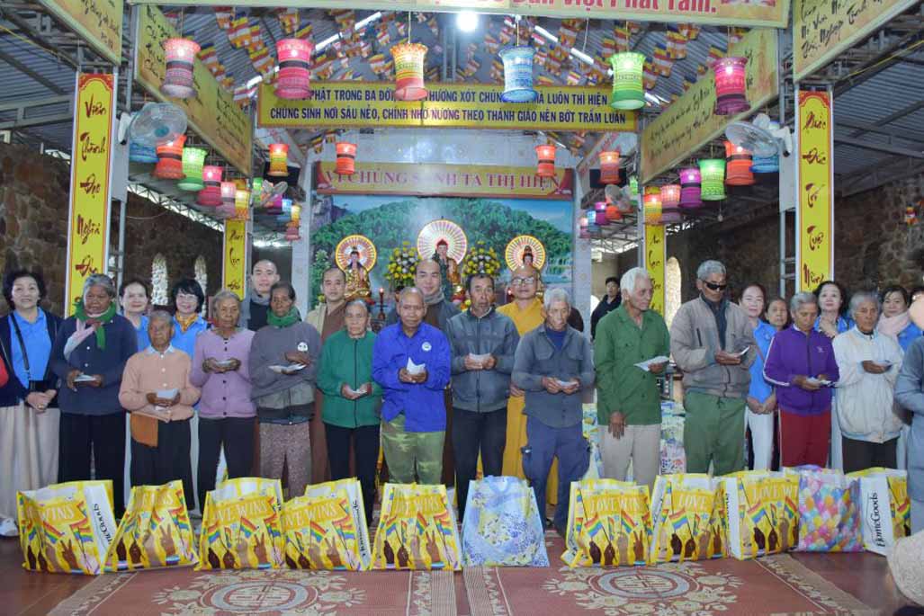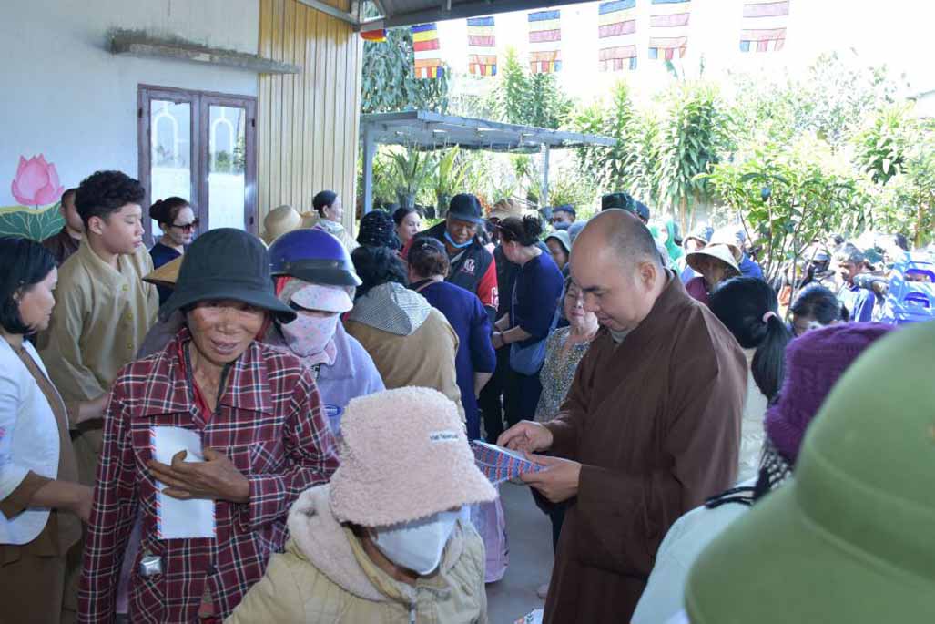 Tiếp đó, ngày 25/ 1, đoàn tiếp tục đến chùa Phổ Quang (xã Đinh Trang Thượng, tỉnh Lâm Đồng), trao tặng 200 phần quà.