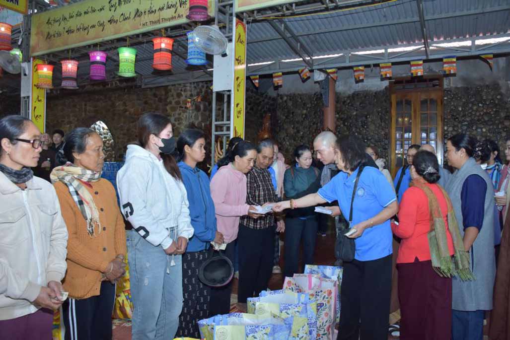Cụ thể, ngày 24/ 1, đoàn đã đến chùa Quảng Trạch (xã Hòa Bình, H. Lắk, tỉnh Đắk Lắk), trao tặng 100 suất quà đến bà con địa phương.