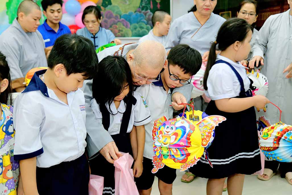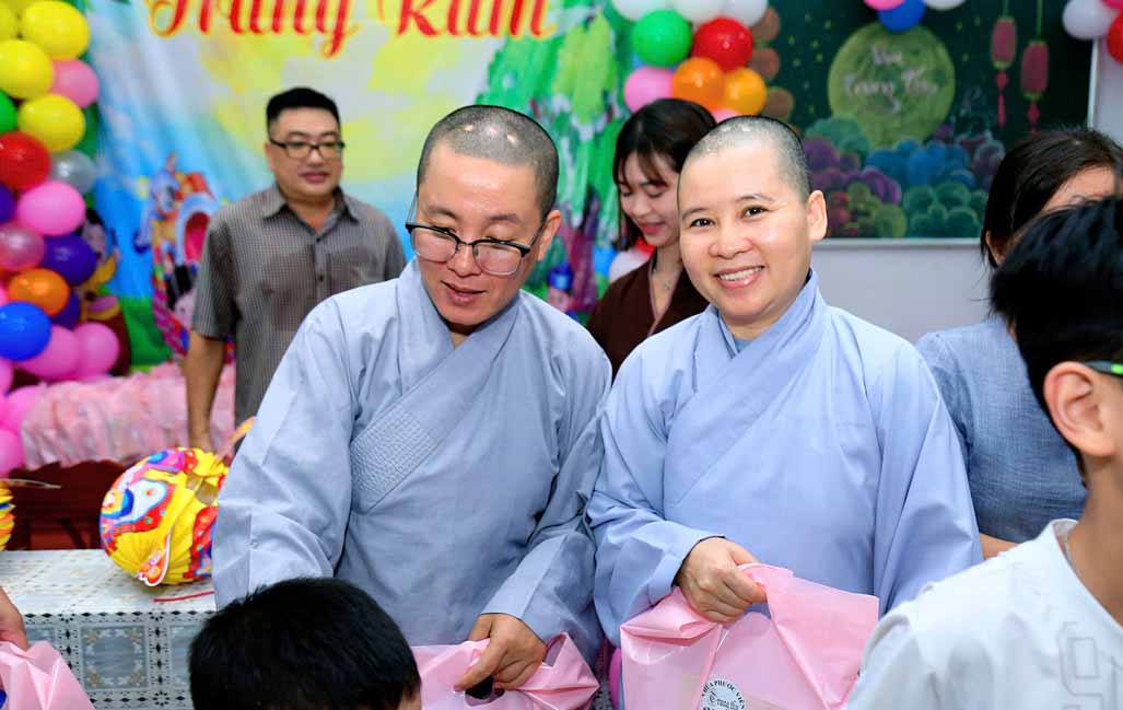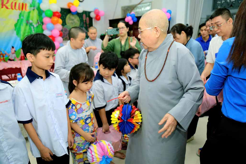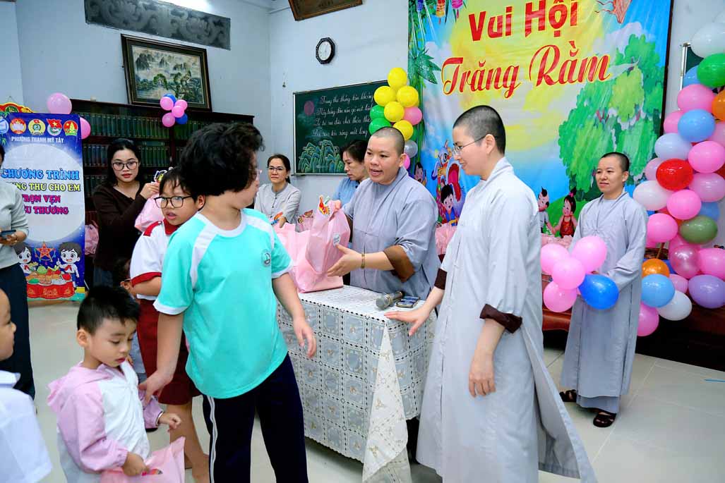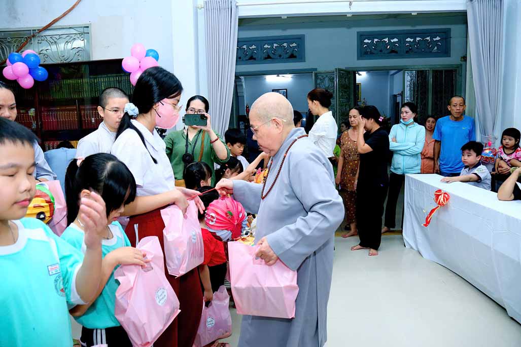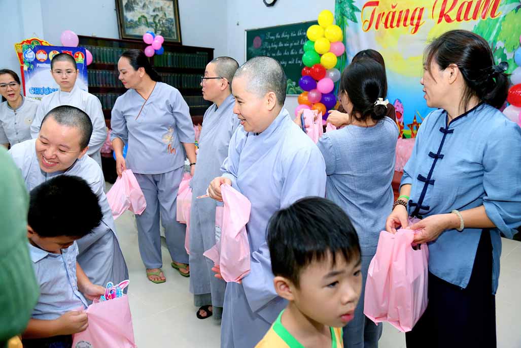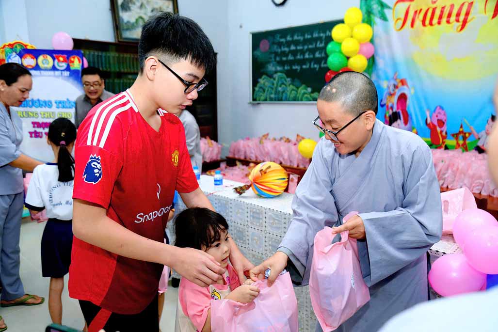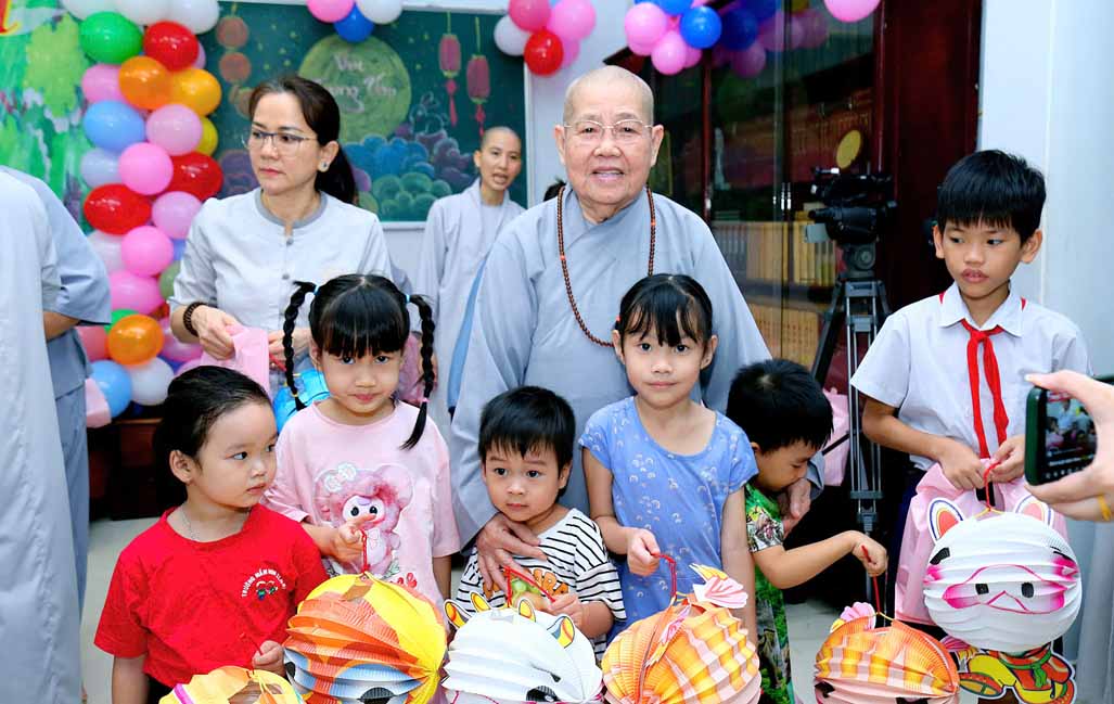 Ni trưởng bày tỏ niềm xúc động khi thấy các em được đón một mùa Trung thu ấm áp, vui tươi, rộn rã tiếng cười bên người thân và bạn bè. Lời chúc của Ni trưởng không chỉ dừng lại ở niềm vui vật chất, mà còn hướng các em đến giá trị tinh thần cao quý: “Mong rằng các cháu sẽ luôn ngoan ngoãn, học giỏi, vâng lời ông bà, cha mẹ, trở thành những người con hiếu thảo và những công dân có ích cho xã hội”.