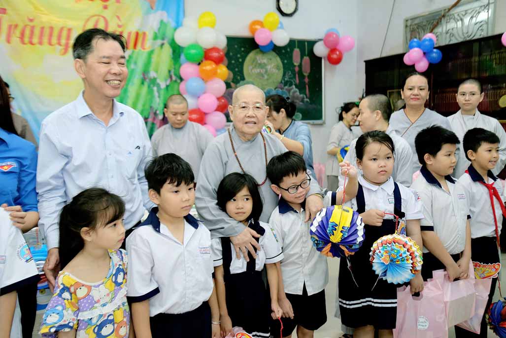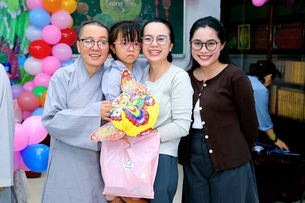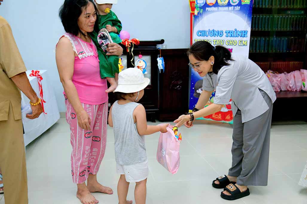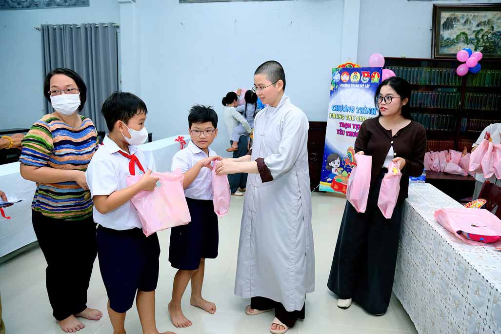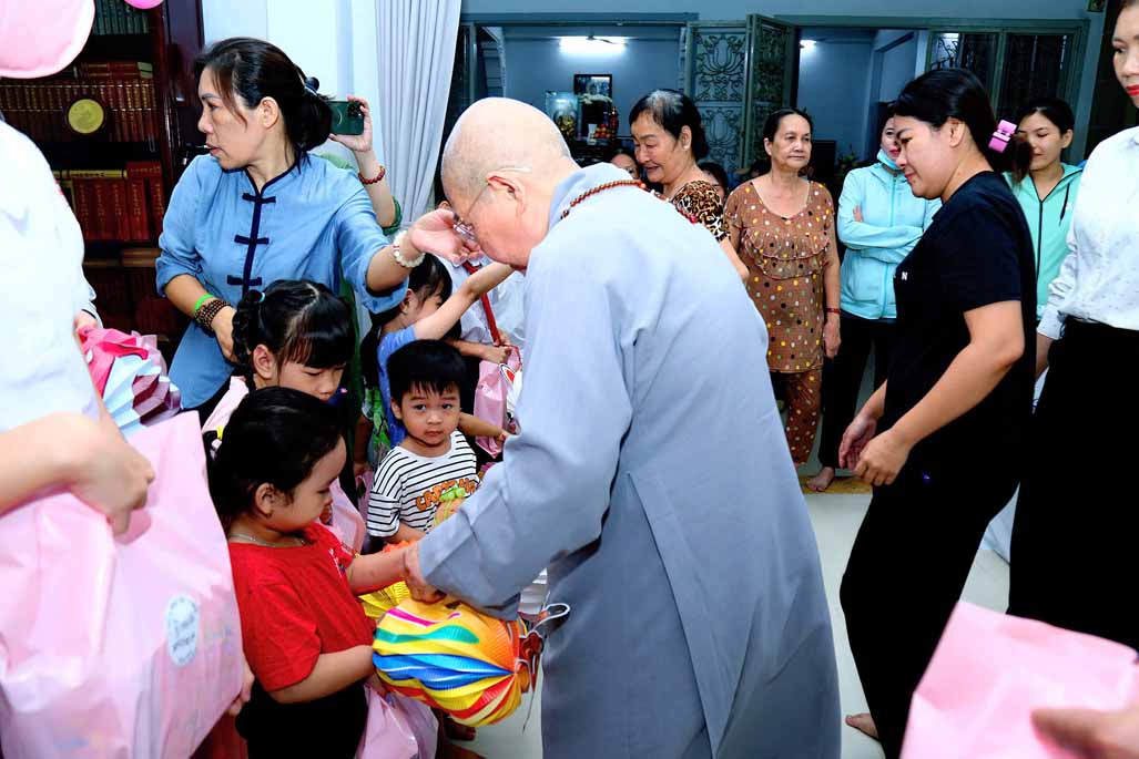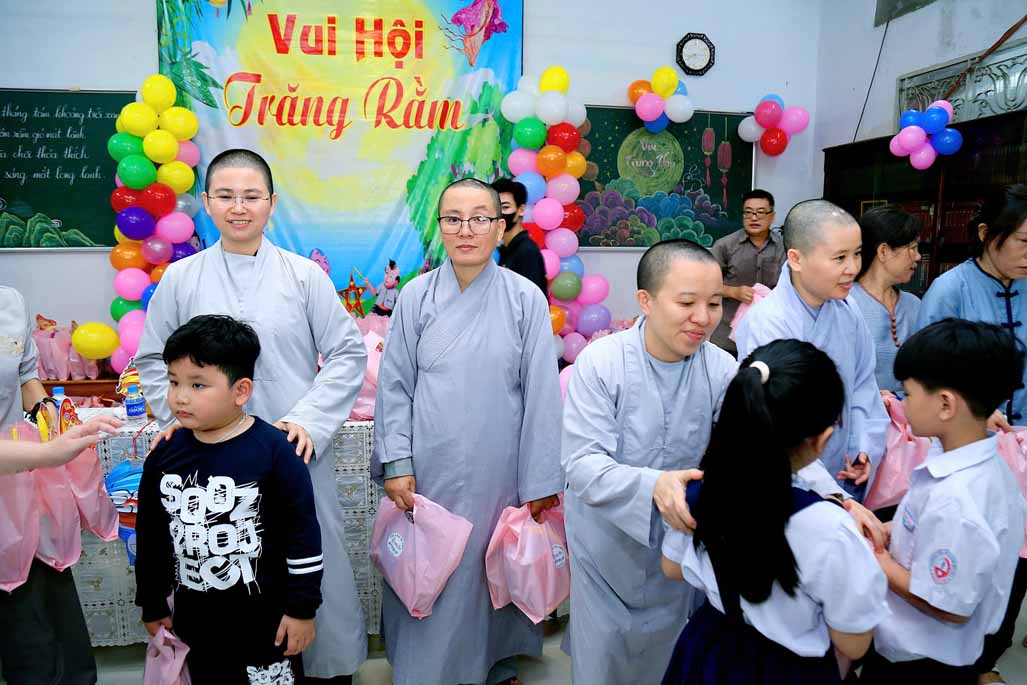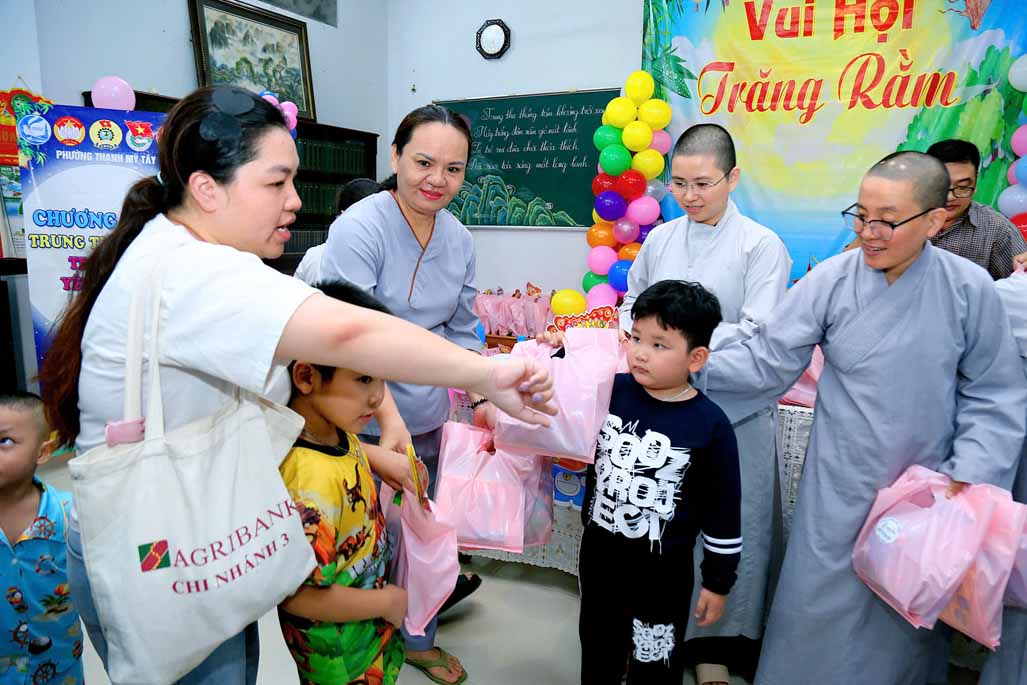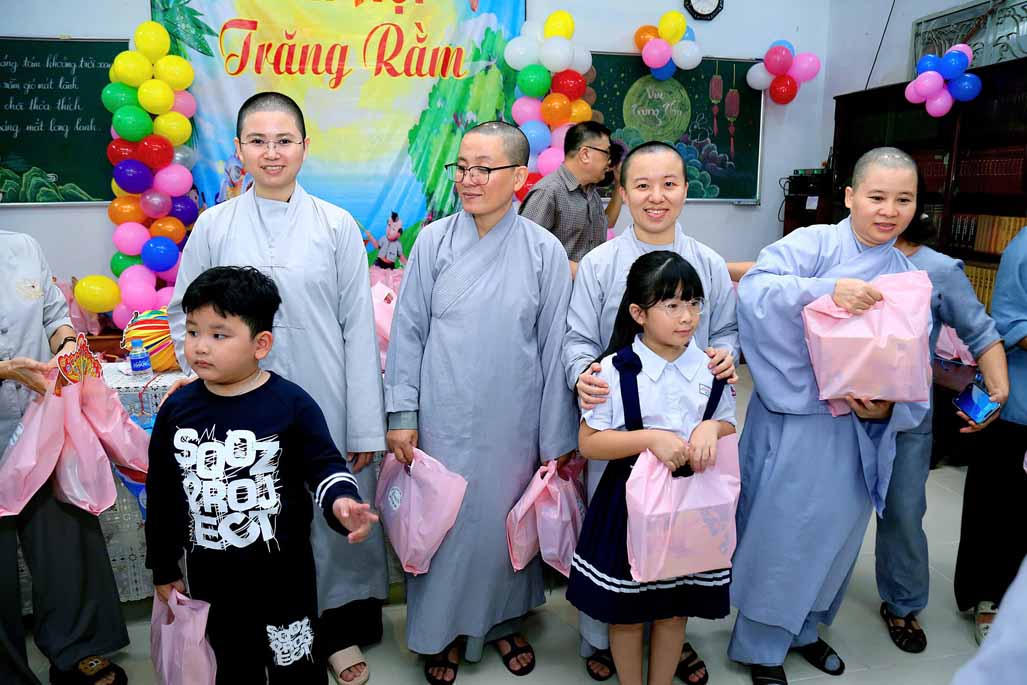 Ni trưởng bày tỏ niềm xúc động khi thấy các em được đón một mùa Trung thu ấm áp, vui tươi, rộn rã tiếng cười bên người thân và bạn bè. Lời chúc của Ni trưởng không chỉ dừng lại ở niềm vui vật chất, mà còn hướng các em đến giá trị tinh thần cao quý: “Mong rằng các cháu sẽ luôn ngoan ngoãn, học giỏi, vâng lời ông bà, cha mẹ, trở thành những người con hiếu thảo và những công dân có ích cho xã hội”.