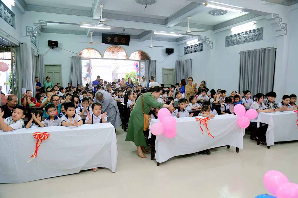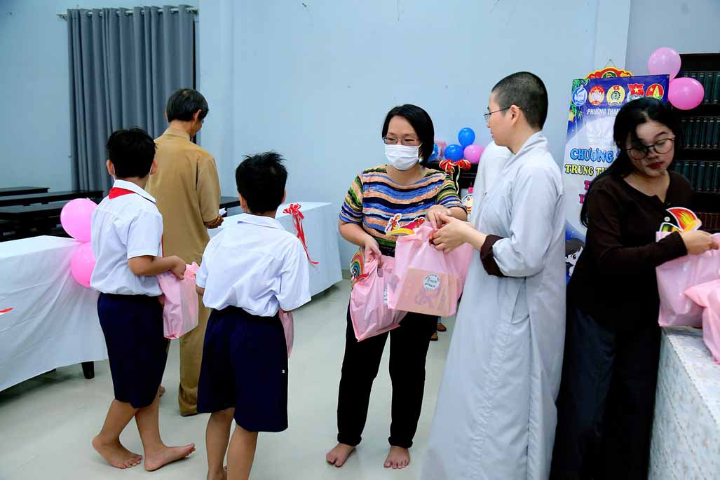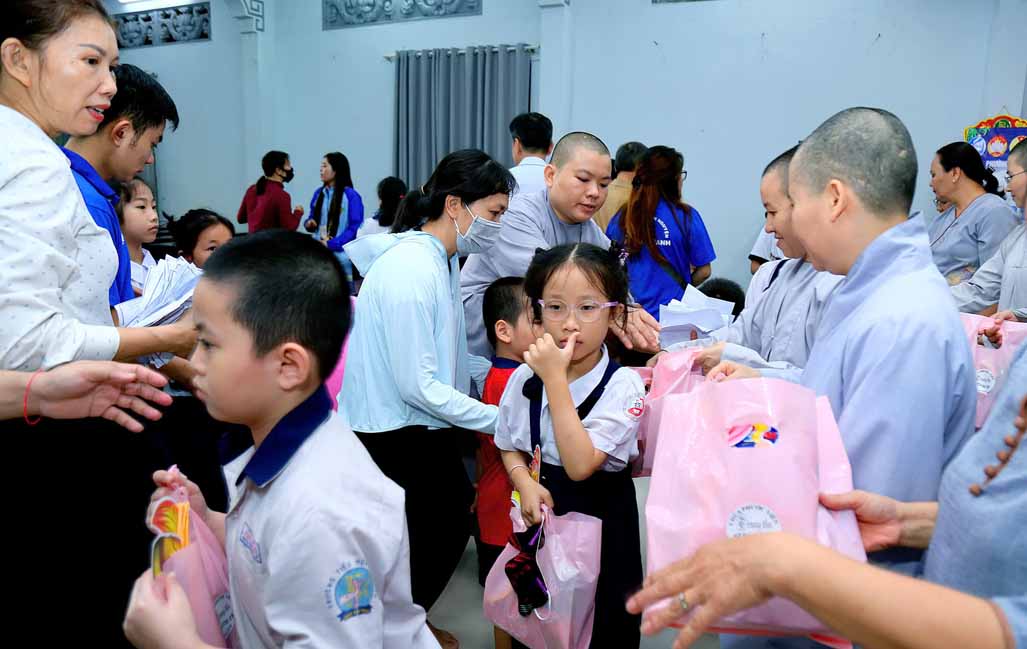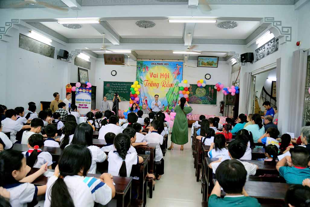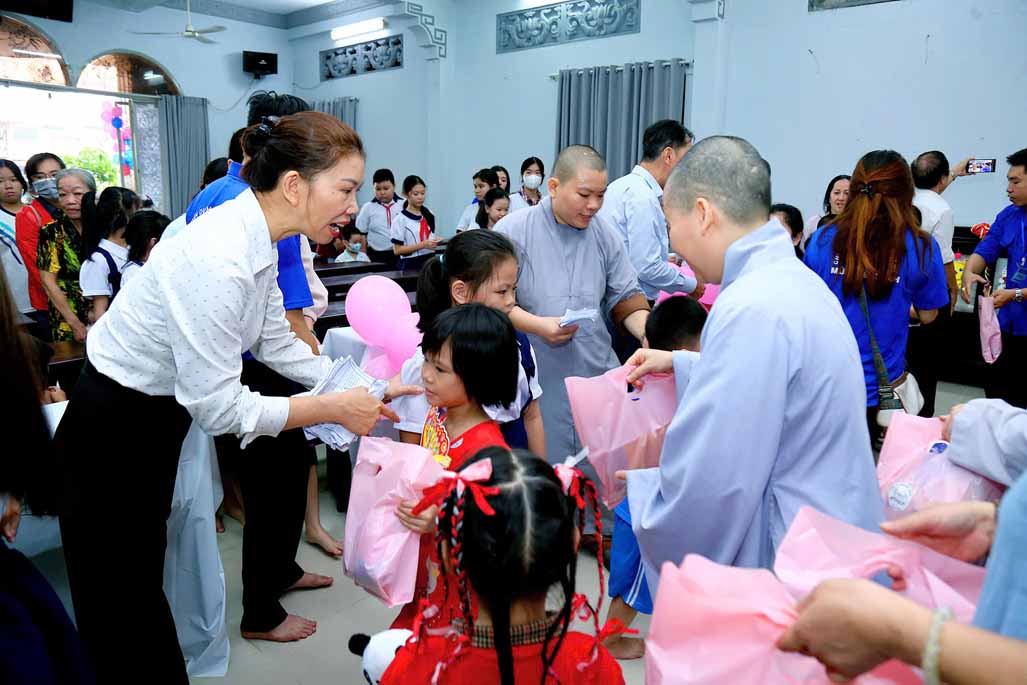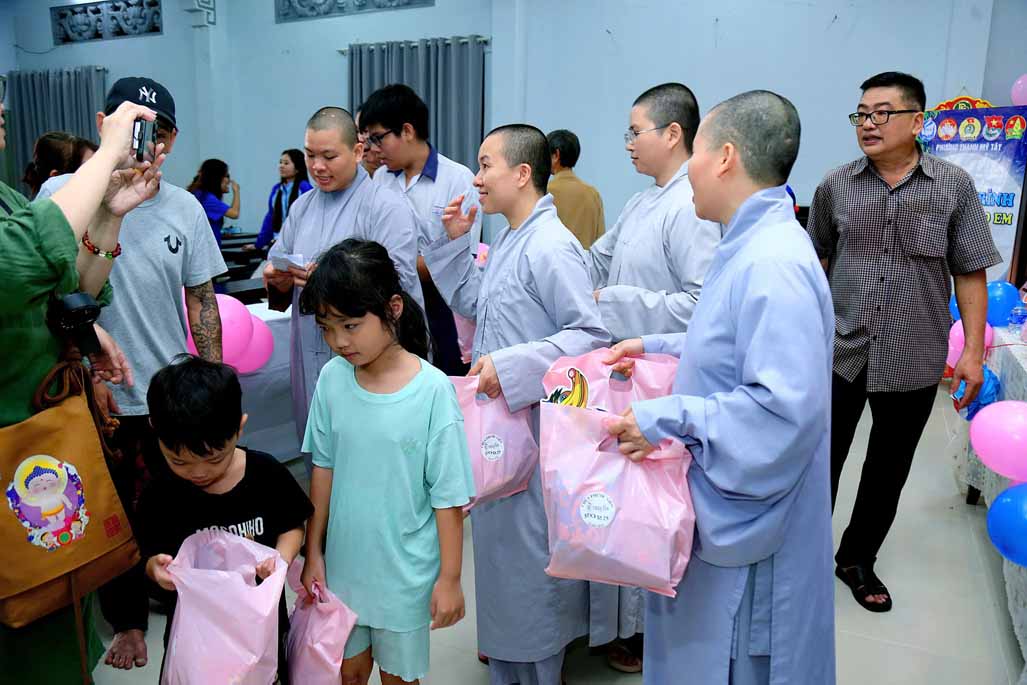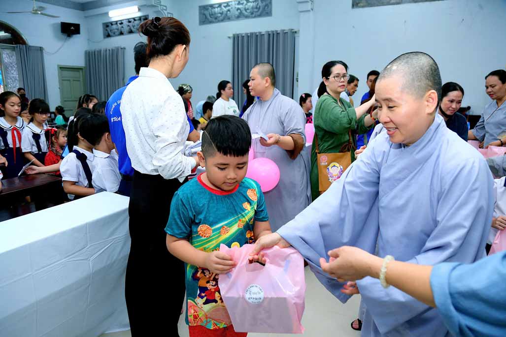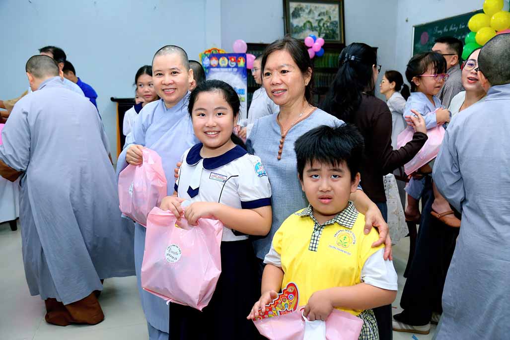 Buổi lễ có sự chứng dự của Ni trưởng Thích Từ Nhẫn – Phó Phân ban Ni giới Trung ương, Phó ban Trị sự, Trưởng Phân ban Ni giới GHPGVN TP. HCM, trụ trì chùa Phước Viên cùng chư Tôn đức Ni và sự hiện diện chân thành của đại chúng. Về phía chính quyền, có sự tham dự của ông Lâm Quốc Chính – Đảng ủy viên, Chủ tịch Mặt Trận Tổ Quốc phường Thạnh Mỹ Tây, TP. HCM, đại diện các ban ngành, thể hiện sự đồng lòng chăm lo cho thế hệ mầm non của đất nước. Khi những chiếc túi quà được trao đi, ánh mắt long lanh niềm vui của các em nhỏ chính là món quà vô giá nhất.