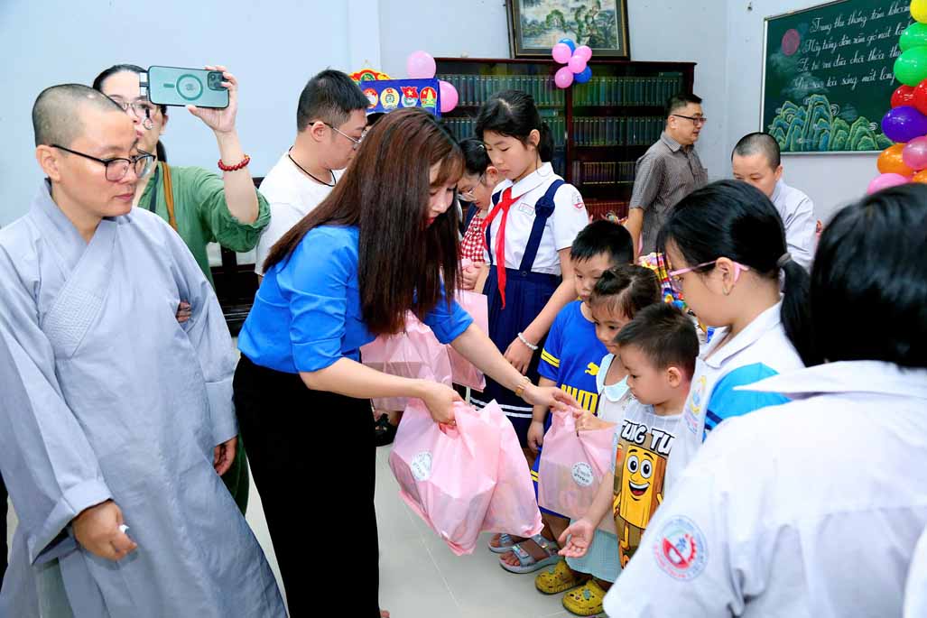 Trong không khí rộn ràng, háo hức chuẩn bị đón Tết Trung thu cổ truyền, một nguồn sáng ấm áp của tình người đã lan tỏa khắp khuôn viên chùa Phước Viên (số 318, phường Thạnh Mỹ Tây, TP. HCM). Nơi đây, không chỉ có ánh sáng của đèn lồng, mà còn có ánh sáng của lòng nhân ái, được gói ghém cẩn thận, mang đến niềm vui sớm cho 500 em nhỏ.