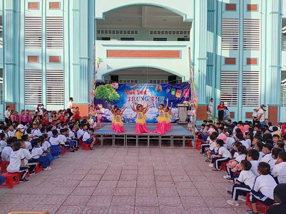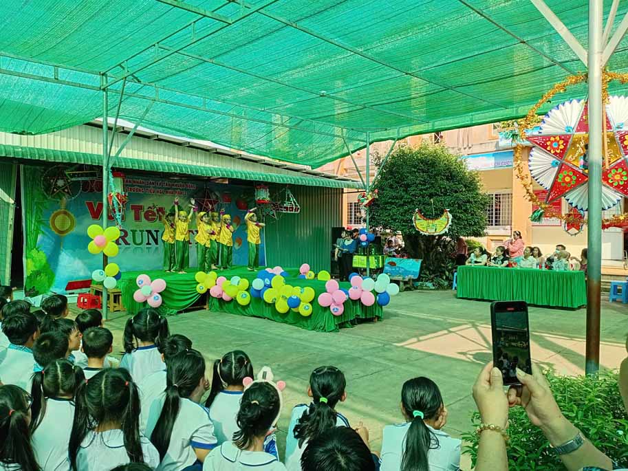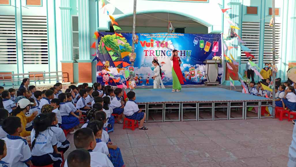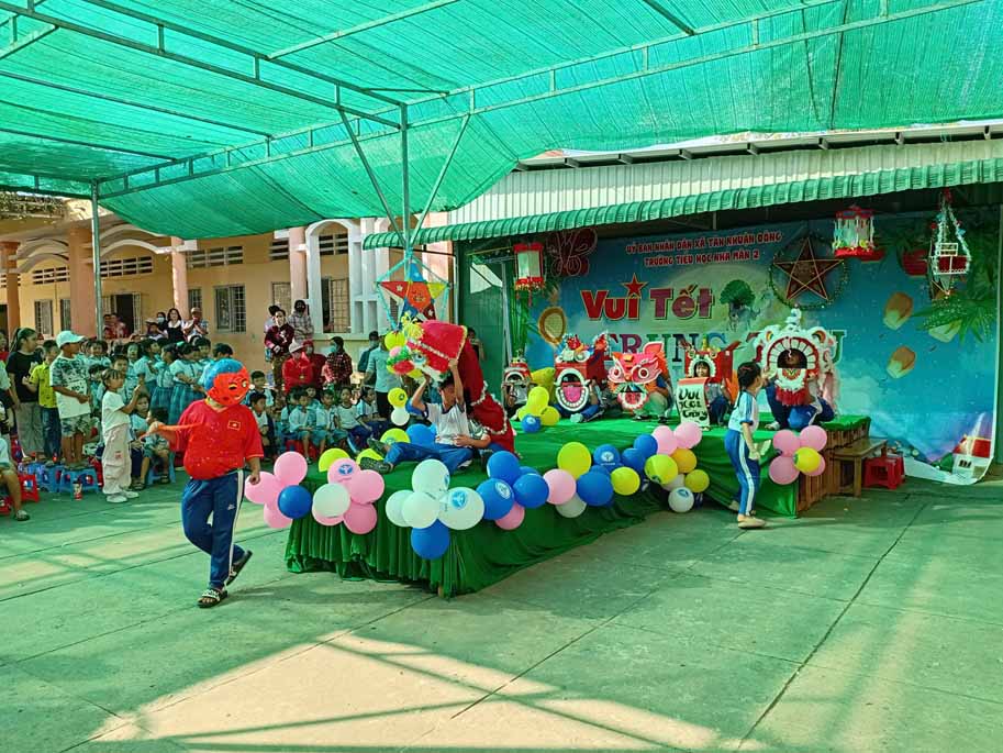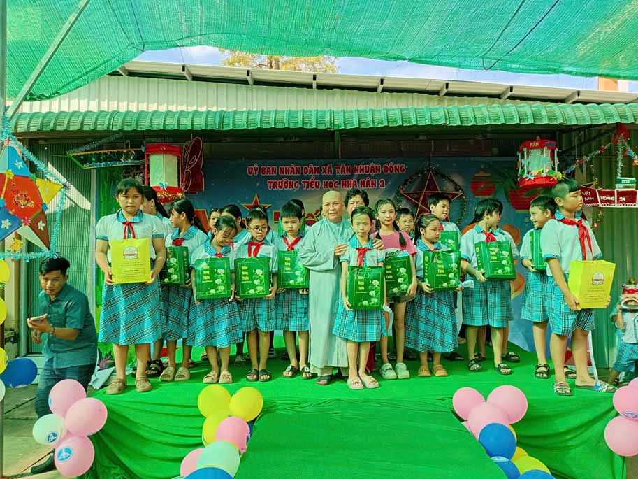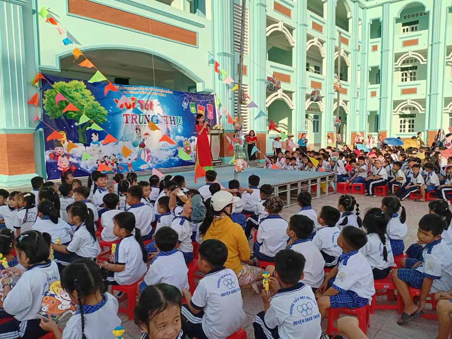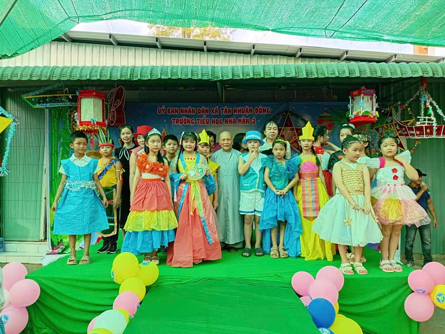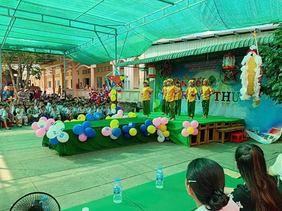 Đại diện BGH trường tiểu học, cô Nguyễn Trần Thanh Trúc – Hiệu trưởng trường tiểu học Nha Mân 2 và thầy Cao Hoàng Khải – Hiệu trưởng trường Tiểu học Hòa Tân 1, gửi lời chúc mừng nhân dịp Tết Trung thu, đồng thời chia sẻ về ý nghĩa của ngày Tết đoàn viên – dịp để gia đình sum họp, trẻ em được vui chơi, nhận quà và cảm nhận tình yêu thương của cộng đồng.