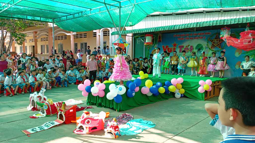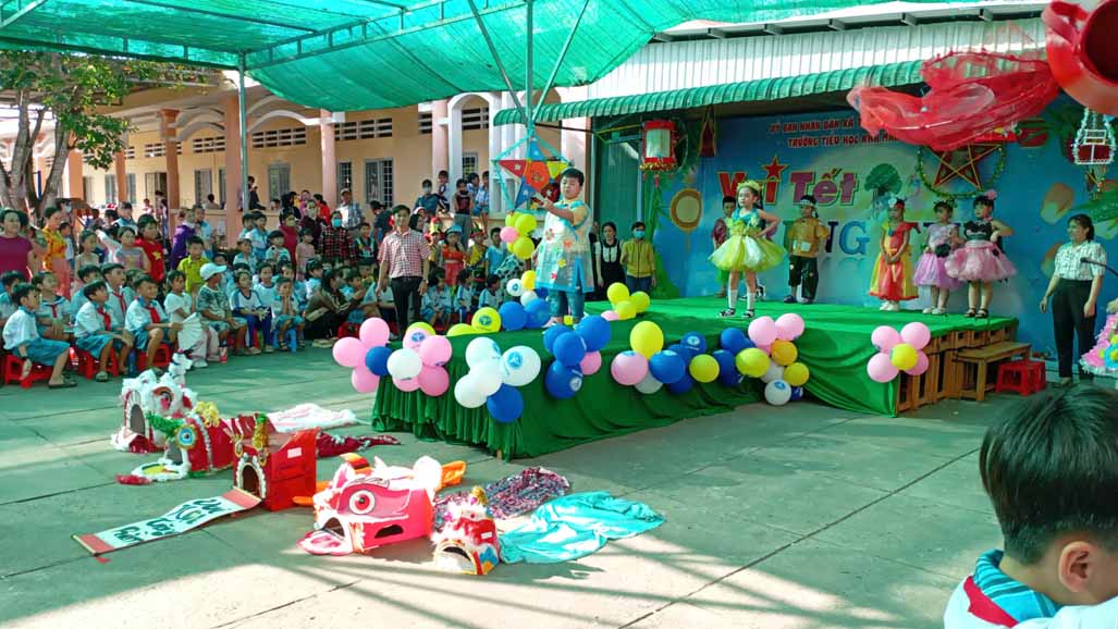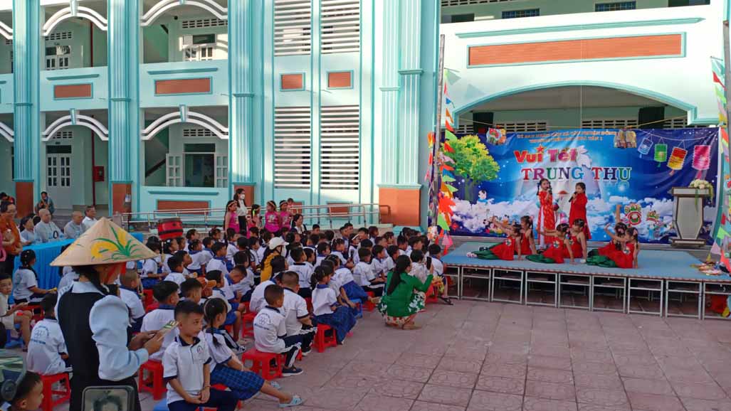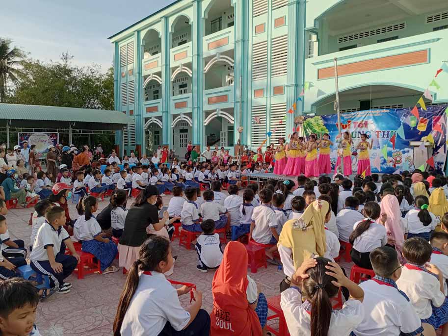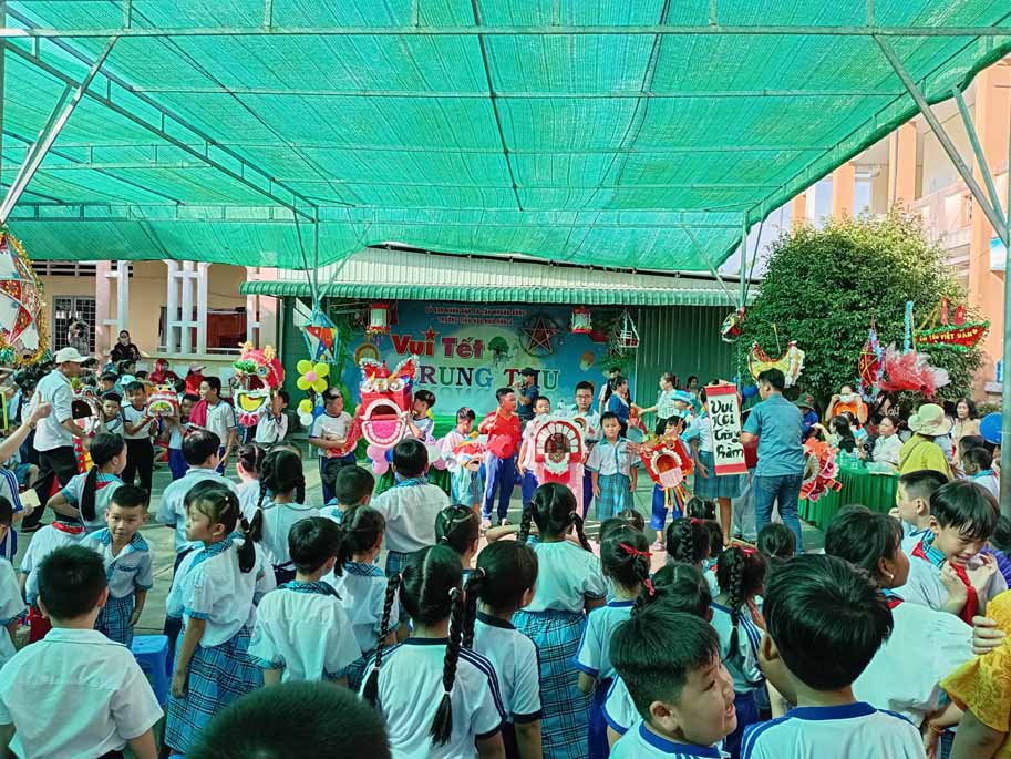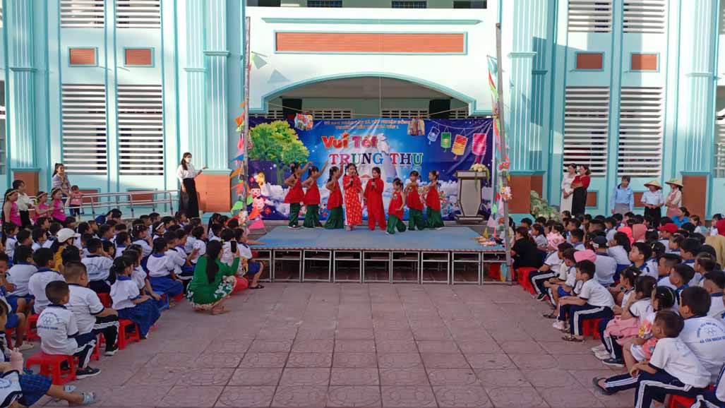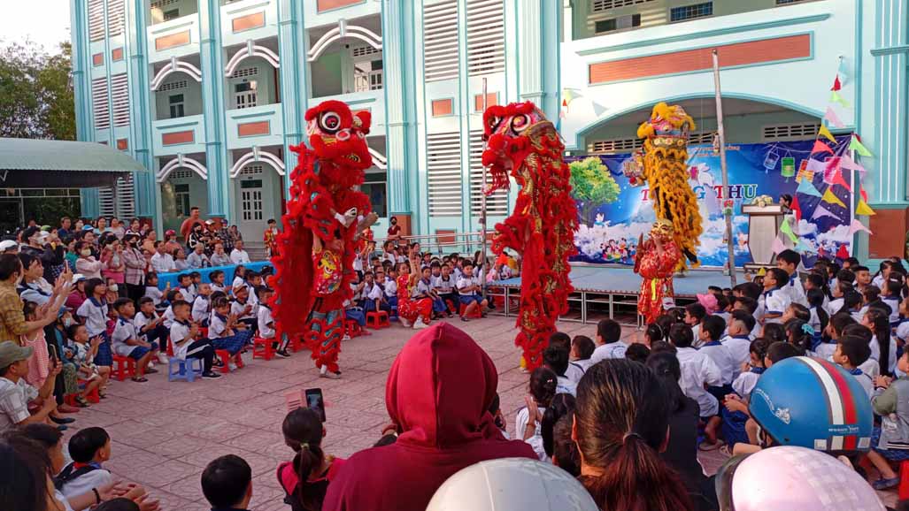 Đại diện BGH trường tiểu học, cô Nguyễn Trần Thanh Trúc – Hiệu trưởng trường tiểu học Nha Mân 2 và thầy Cao Hoàng Khải – Hiệu trưởng trường Tiểu học Hòa Tân 1, gửi lời chúc mừng nhân dịp Tết Trung thu, đồng thời chia sẻ về ý nghĩa của ngày Tết đoàn viên – dịp để gia đình sum họp, trẻ em được vui chơi, nhận quà và cảm nhận tình yêu thương của cộng đồng.