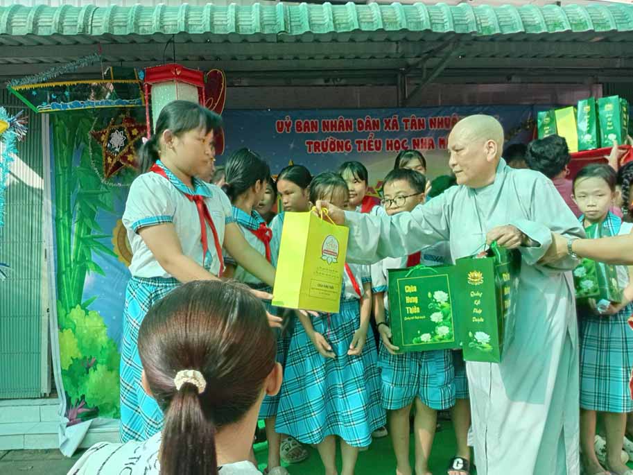 Hòa trong không khí rộn ràng của Tết Trung thu trên khắp cả nước, chiều ngày 11 tháng 8 năm Ất Tỵ (02/ 10/ 2025) và chiều ngày 14 – 15 tháng 8 năm Ất Tỵ ( 05 – 06/ 10/ 2025) Chùa Thiên Phước đã phối hợp cùng Ban Giám Hiệu 2 trường Tiểu Học : Nha Mân 2 và Hòa Tân long trọng tổ chức chương trình “Vui Tết Trung Thu” dành cho 1000 em học sinh tiểu học tại 2 trường và các em thiếu nhi xung quanh chùa Thiên Phước.