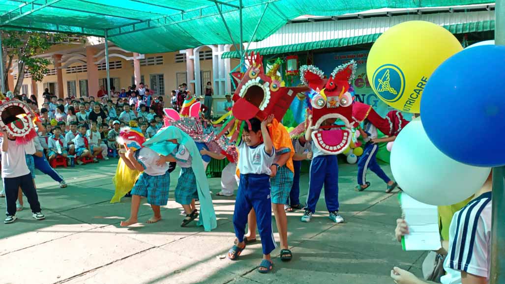 Chương trình diễn ra sôi động với nhiều tiết mục đặc sắc như múa lân, các tiết mục văn nghệ, cùng các hoạt động giao lưu vui nhộn với tiết mục biểu diễn thời trang bảo vệ môi trường, v.v… tạo nên bầu không khí vui tươi, đầy tiếng cười. Các trò chơi dân gian cũng được lồng ghép, mang lại cho các em một Trung thu đậm đà bản sắc truyền thống, xây dựng giáo dục tinh thần đoàn kết của các em học sinh, cũng như Bài học chia sẻ niềm vui và đón nhận tình yêu thương của Ni Sư Trụ Trì chùa Thiên Phước cùng quý mạnh thường quân.