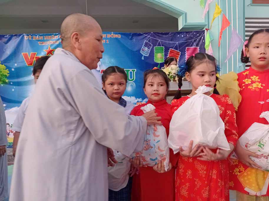 Phát biểu khai mạc Ni sư Thích Nữ Như Năng bày tỏ lòng tri ân đến quý mạnh thường quân, quý chư tôn đức Tăng Ni chùa Hưng Thiền đã chung tay hỗ trợ những phần quà ý nghĩa, đồng thời gửi lời cảm ơn đến ban Giám hiệu, các thầy cô tập thể giáo viên của 2 trường tiểu học, đã tạo điều kiện để nhà chùa tổ chức chương trình Trung thu ấm áp và đầy yêu thương dành cho các em học sinh. Ni Sư chúc mừng các em có một đêm trung thu tràn ngập niềm vui. Mong muốn các em cố gắng phấn đấu, rèn luyện, học tập để không phụ lòng cha mẹ, thầy cô. Xứng danh là con ngoan trò giỏi, cháu ngoan Bác Hồ.