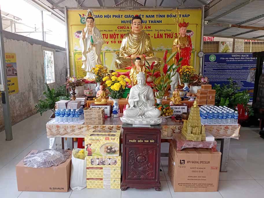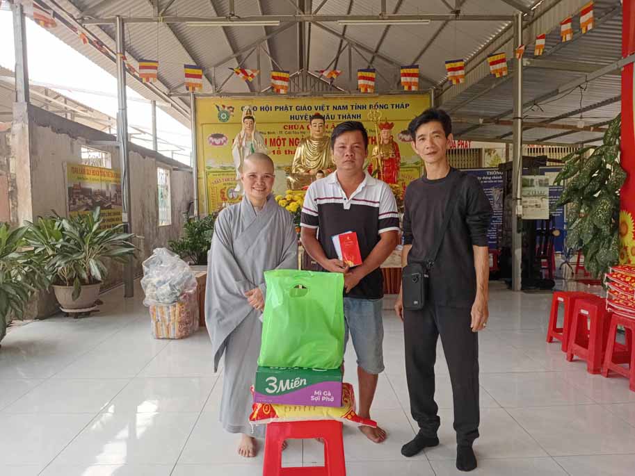 Buổi lễ trao tặng diễn ra trong không khí trang nghiêm, ấm cúng với sự quang lâm chứng minh của Sư cô Thích Nữ Tâm Thường – Trụ trì chùa Quan Âm; cùng sự hiện diện của bà Võ Hồng Nghi – Phó Thường trực Chủ tịch Ủy ban MTTQVN xã Phú Hựu, đại diện chính quyền địa phương, quý Phật tử và bà con nhân dân.