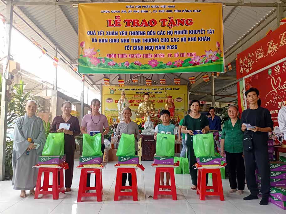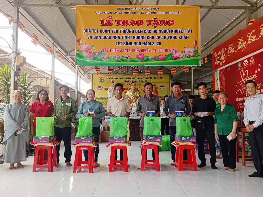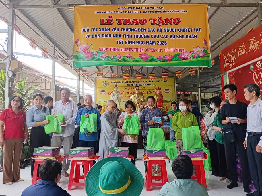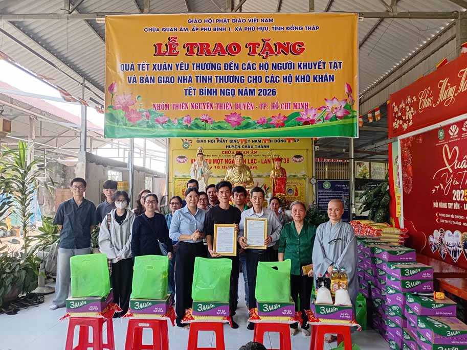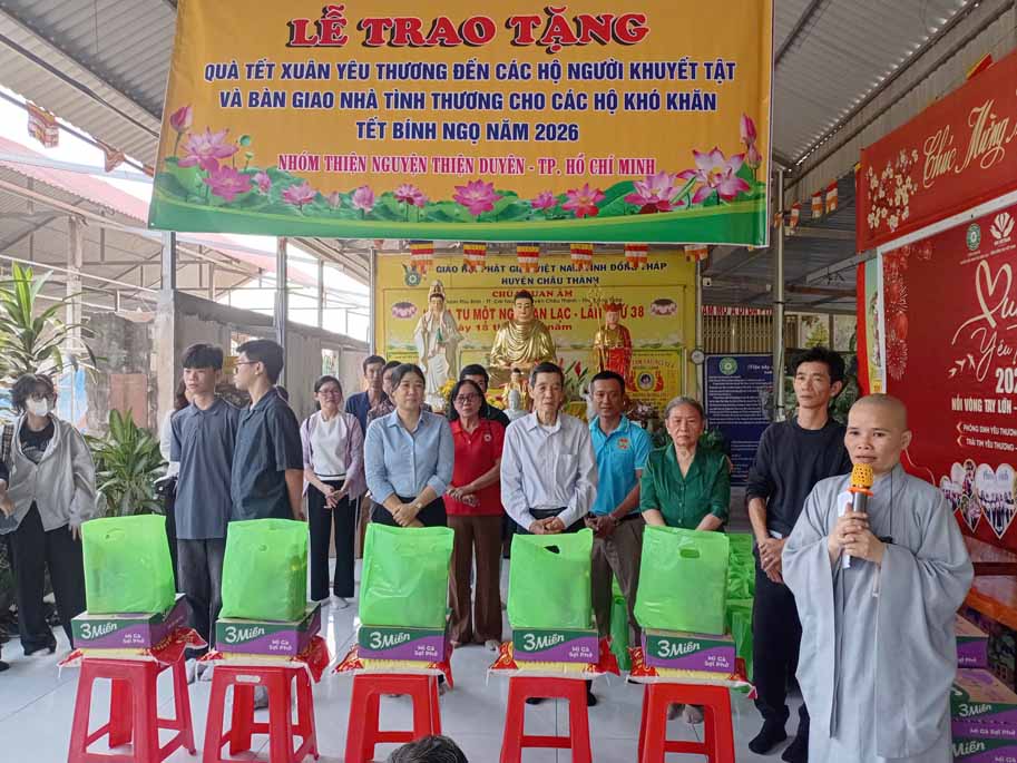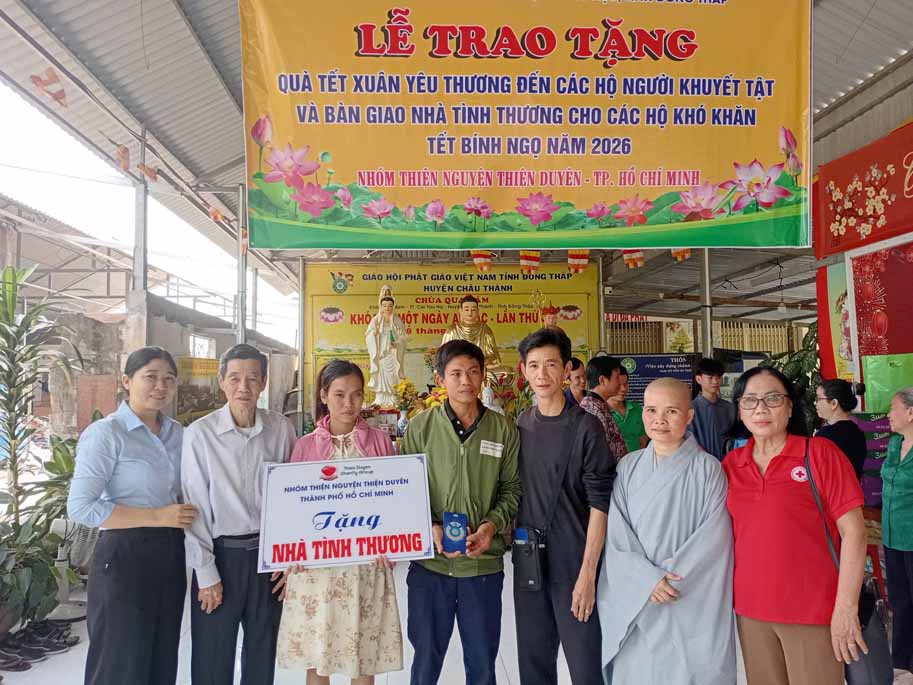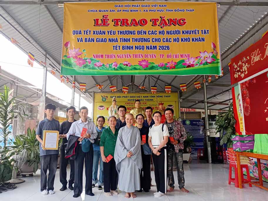 Ngày 25/ 01/ 2026 (mồng 7 tháng Chạp năm Ất Tỵ) trong không khí hoan hỷ khi mùa xuân Bính Ngọ đang về rất gần, nhóm Thiện nguyện Thiện Duyên Charity Group cùng gia đình chú Bùi Hữu Hùng đến từ TP. Hồ Chí Minh mang theo những phần quà Tết nghĩa tình trao tặng cho 60 hộ người mù, khiếm thị có hoàn cảnh khó khăn, đồng thời bàn giao và trao tặng ba căn nhà tình thương cho các gia đình còn khó khăn trong cuộc sống tại xã Phú Hựu, tỉnh Đồng Tháp.