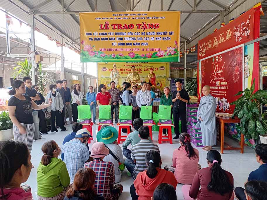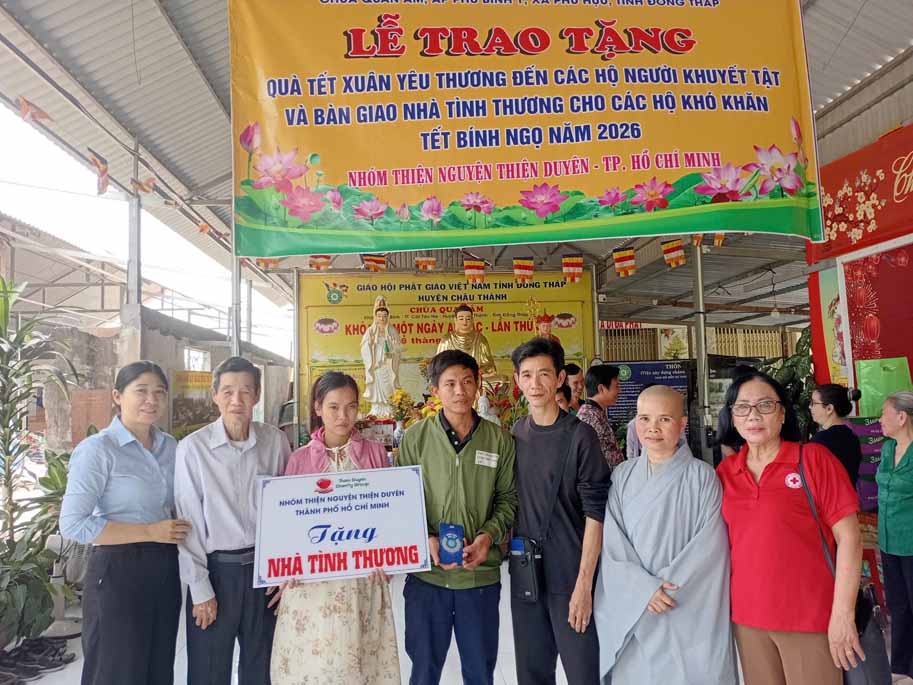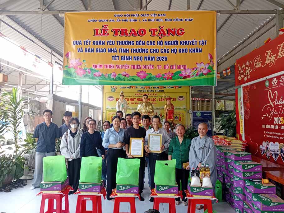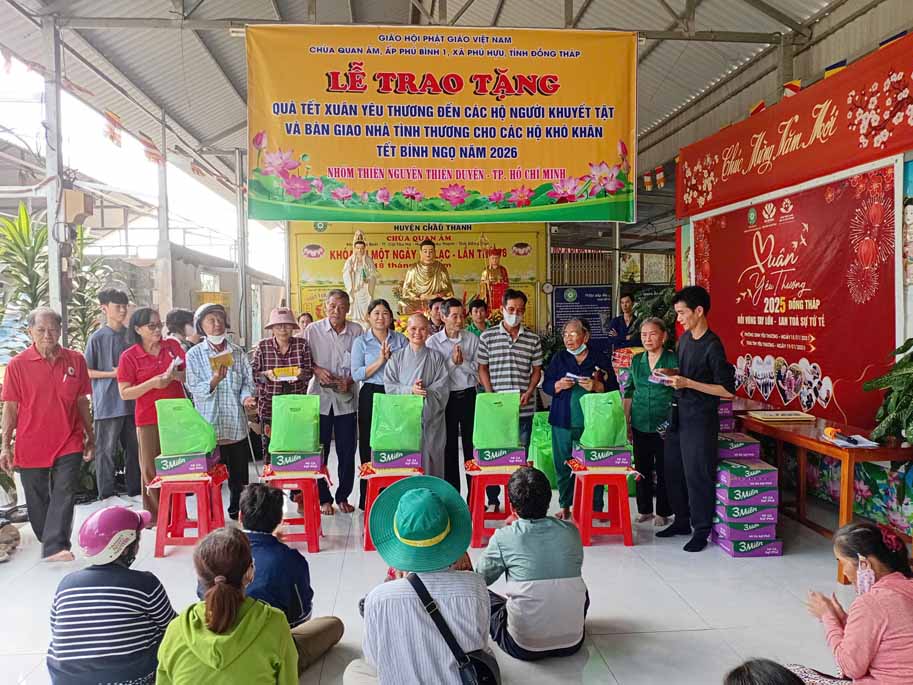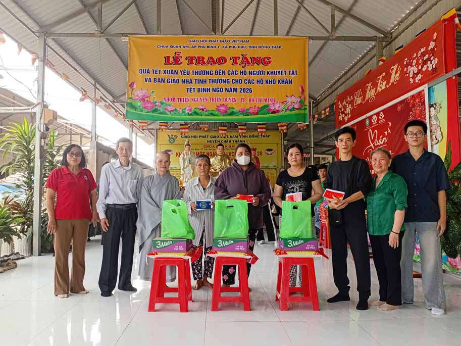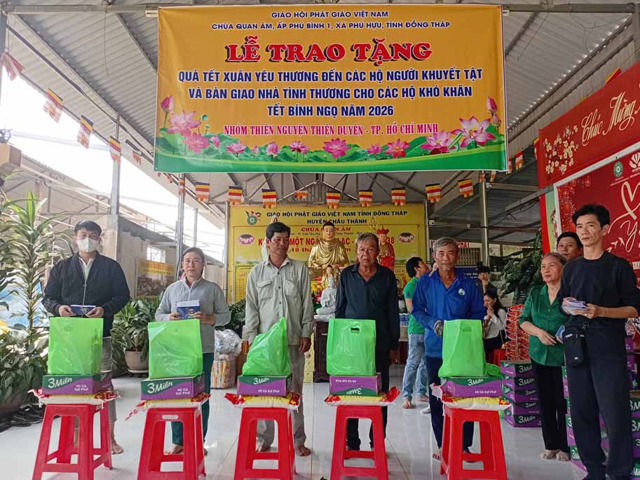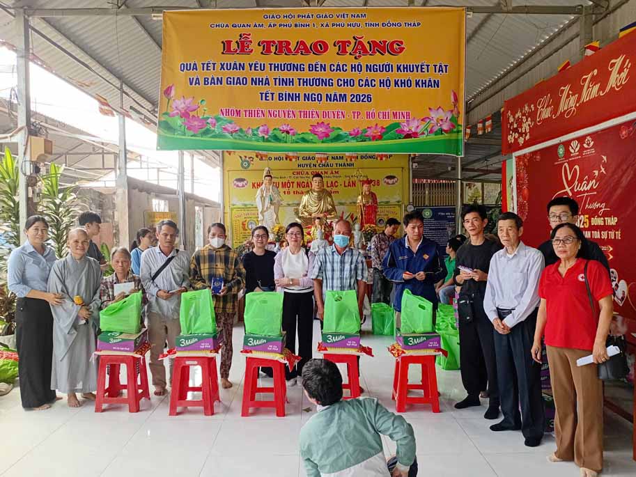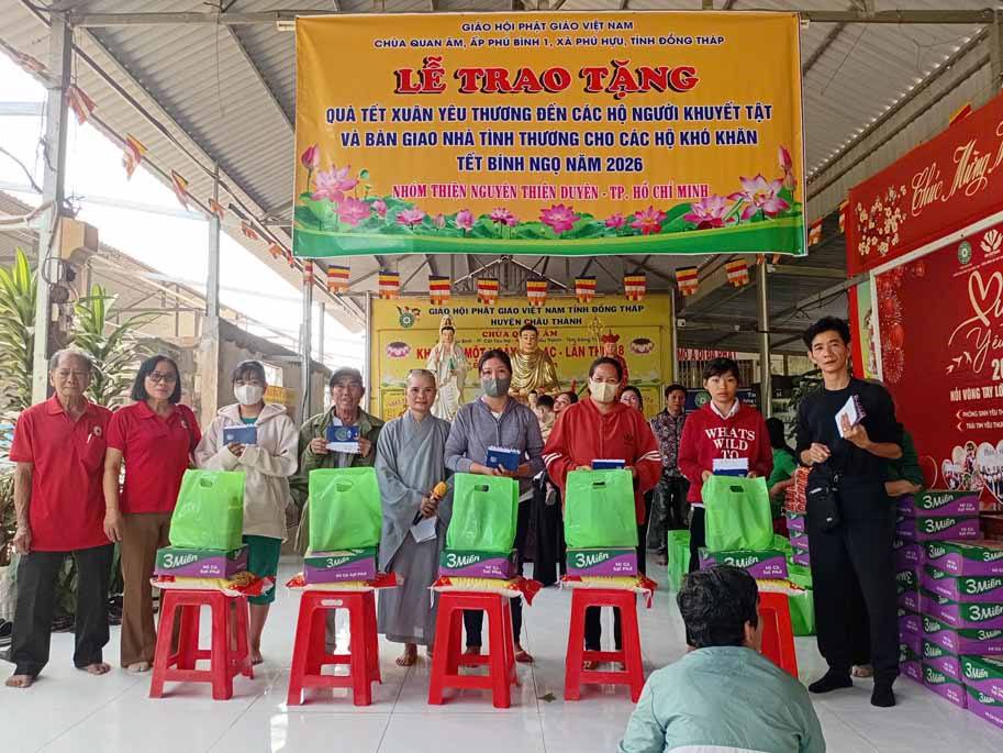 Ngày 25/ 01/ 2026 (mồng 7 tháng Chạp năm Ất Tỵ) trong không khí hoan hỷ khi mùa xuân Bính Ngọ đang về rất gần, nhóm Thiện nguyện Thiện Duyên Charity Group cùng gia đình chú Bùi Hữu Hùng đến từ TP. Hồ Chí Minh mang theo những phần quà Tết nghĩa tình trao tặng cho 60 hộ người mù, khiếm thị có hoàn cảnh khó khăn, đồng thời bàn giao và trao tặng ba căn nhà tình thương cho các gia đình còn khó khăn trong cuộc sống tại xã Phú Hựu, tỉnh Đồng Tháp.
