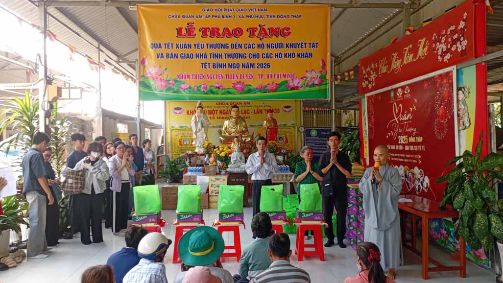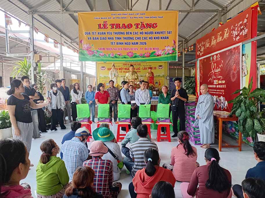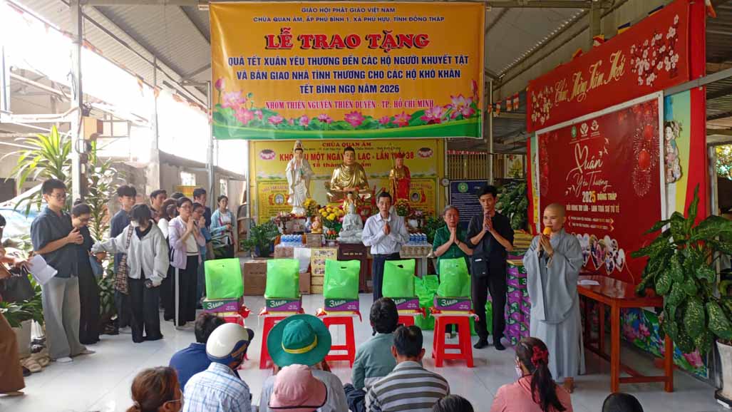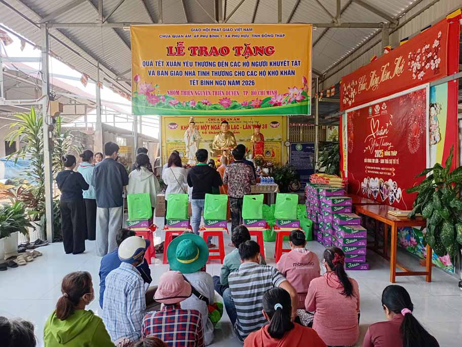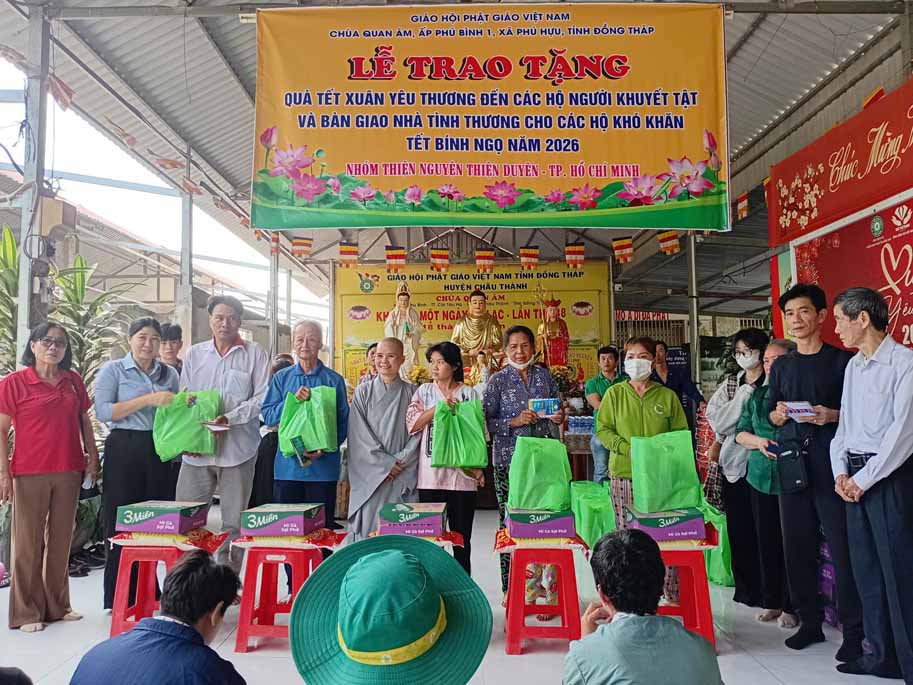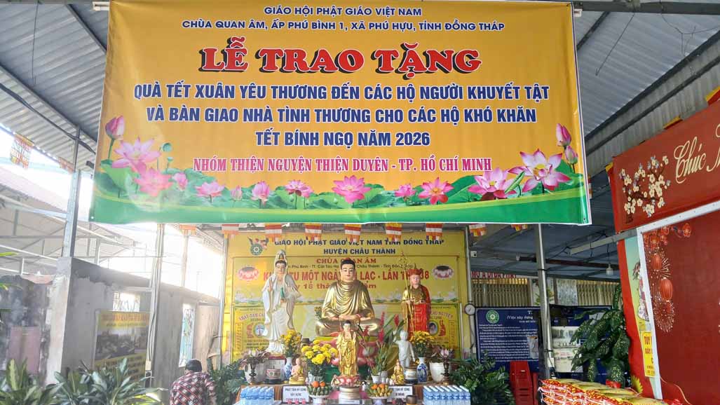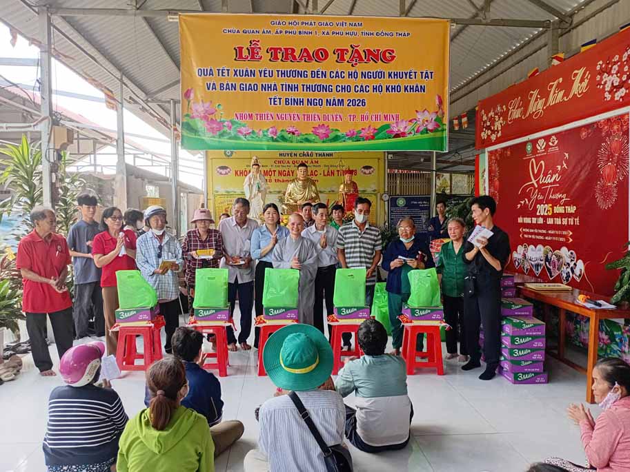 Ngày 25/ 01/ 2026 (mồng 7 tháng Chạp năm Ất Tỵ) trong không khí hoan hỷ khi mùa xuân Bính Ngọ đang về rất gần, nhóm Thiện nguyện Thiện Duyên Charity Group cùng gia đình chú Bùi Hữu Hùng đến từ TP. Hồ Chí Minh mang theo những phần quà Tết nghĩa tình trao tặng cho 60 hộ người mù, khiếm thị có hoàn cảnh khó khăn, đồng thời bàn giao và trao tặng ba căn nhà tình thương cho các gia đình còn khó khăn trong cuộc sống tại xã Phú Hựu, tỉnh Đồng Tháp.