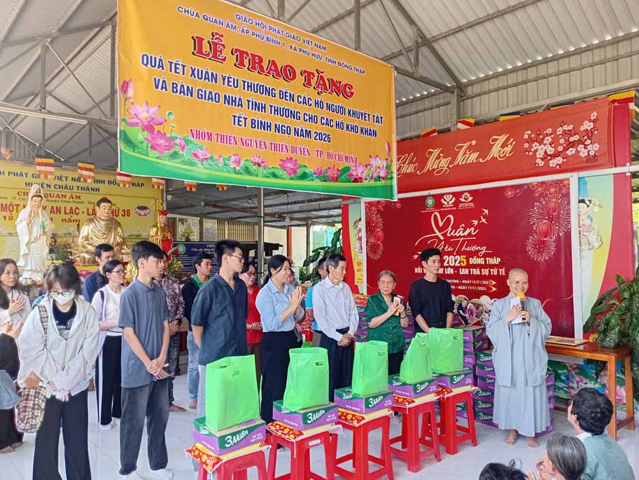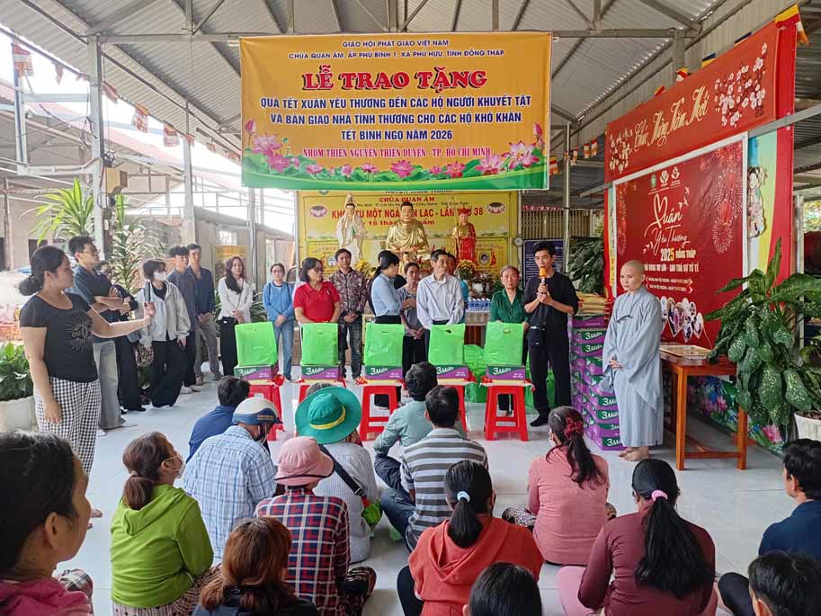 Thay mặt cho các hộ gia đình được nhận quà Tết và nhà tình thương, Sư cô Thích Nữ Tâm Thường đã dâng lời tri ân sâu sắc đến Nhóm Thiện nguyện Thiện Duyên Charity Group, gia đình chú Bùi Hữu Hùng cùng toàn thể quý mạnh thường quân, các nhà hảo tâm đã phát tâm lành, không quản đường xa mang yêu thương về với bà con nghèo. Những nghĩa cử cao đẹp ấy chính là biểu hiện sinh động của tinh thần từ bi trong đạo Phật, là ánh sáng sưởi ấm lòng người, gieo những hạt giống thiện lành để mùa xuân nhân ái nở hoa khắp mọi nơi.