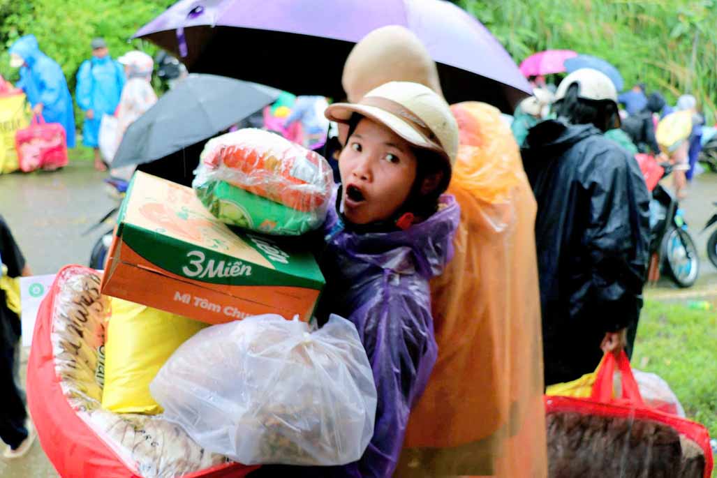 Với tâm nguyện Bồ tát hạnh và đem tinh thần từ bi của người con Phật đến những nơi khó khăn, đặc biệt là những nơi chịu ảnh hưởng nặng nề do cơn bão số 13 gây ra, chư Ni trong đoàn đã không quản đường xa, trực tiếp đến từng khu vực khó khăn của xã để lắng nghe, thăm hỏi và động viên bà con.