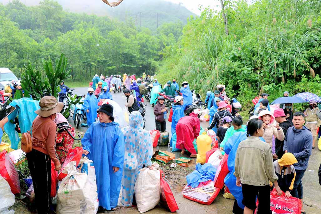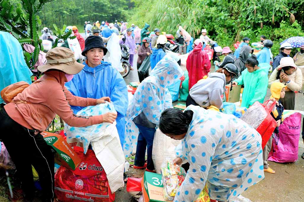 Với tâm nguyện Bồ tát hạnh và đem tinh thần từ bi của người con Phật đến những nơi khó khăn, đặc biệt là những nơi chịu ảnh hưởng nặng nề do cơn bão số 13 gây ra, chư Ni trong đoàn đã không quản đường xa, trực tiếp đến từng khu vực khó khăn của xã để lắng nghe, thăm hỏi và động viên bà con.