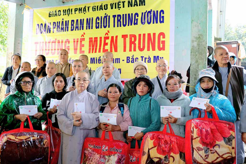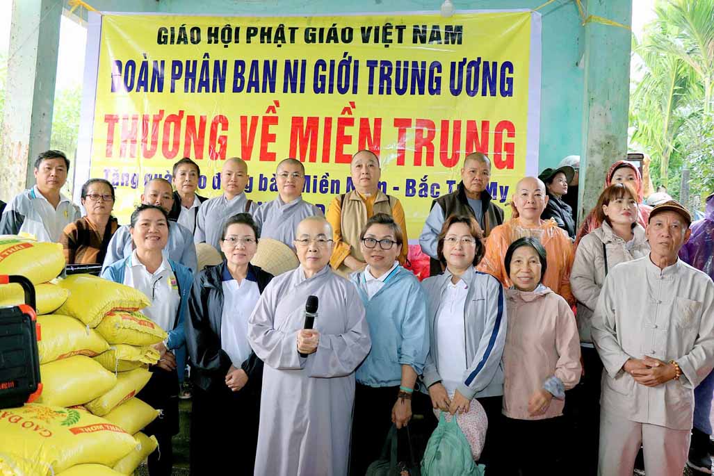 Ngày 23 tháng 11 năm 2025, trên tinh thần từ bi của người con Phật và tấm lòng hướng về những mảnh đời còn nhiều gian khó, Phân ban Ni giới Trung ương đã tổ chức chuyến thăm và tặng quà cứu trợ cho các hộ gia đình chịu ảnh hưởng nặng nề bởi cơn bão số 13 tại xã Trà Đốc, thành phố Đà Nẵng (huyện Bắc Trà My, tỉnh Quảng Nam cũ).