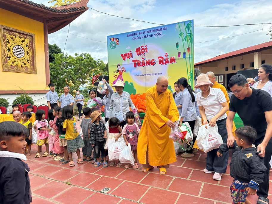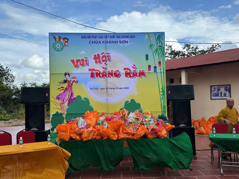 Chiều ngày 05/ 10/ 2025 (ngày 5 tháng 9 năm Ất Tỵ), tại chùa Khánh Sơn (xã Sa Thầy, tỉnh Quảng Ngãi), đã diễn ra chương trình “Vui Tết Trung thu” và trao tặng 700 phần quà Trung thu cho các em thiếu nhi địa phương.