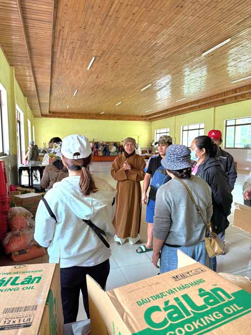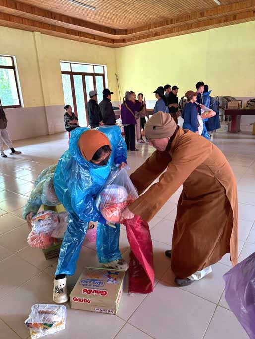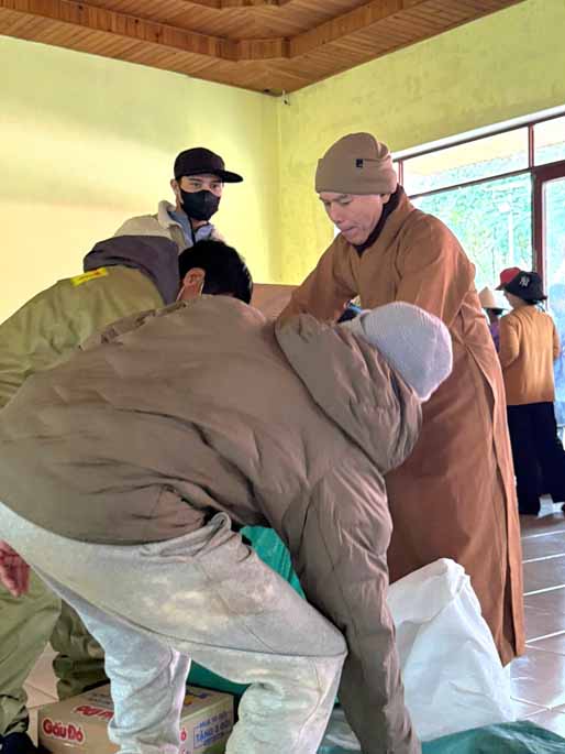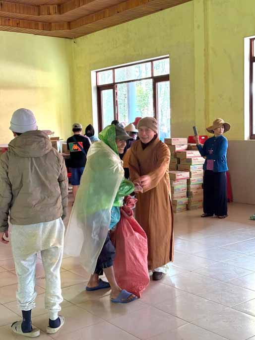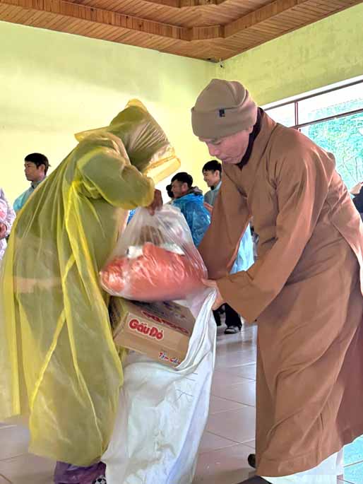 Thượng tọa chia sẻ và cầu nguyện:“Chúng tôi thành tâm cầu nguyện cho tất cả bà con vùng thiên tai, đặc biệt là bà con dân tộc tại Măng Đen, với ý chí kiên cường của mình sẽ mau chóng vượt qua cơn hoạn nạn này. Mong rằng ánh sáng Phật pháp và tình người sẽ xoa dịu những mất mát, giúp đồng bào sớm xây dựng lại mái nhà, ổn định sinh kế, và tìm thấy sự bình an, hạnh phúc trong ngôi nhà chung Quảng Ngãi mới – nơi cao nguyên và biển cả cùng nhau phát triển bền vững.”