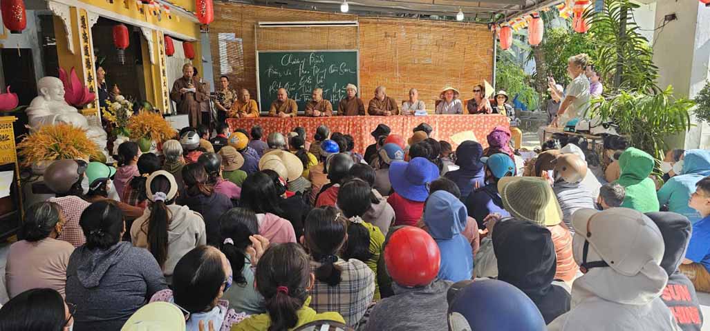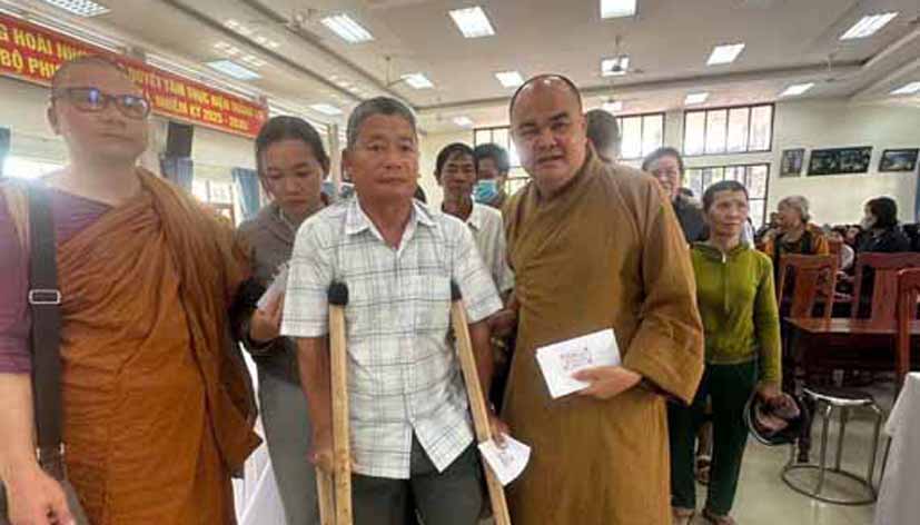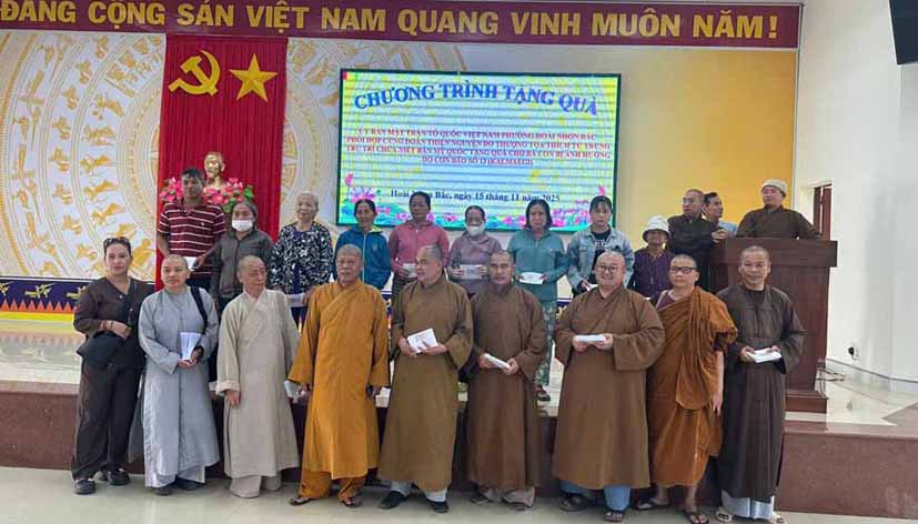 Sáng ngày 15/ 11/ 2025, đoàn từ thiện do BTS GHPGVN tỉnh Quảng Ngãi do TT. Thích Nhuận Pháp – Phó ban kiêm chánh Thư ký BTS tỉnh; TT. Thích Tâm Lạc Phó ban Kiêm Trưởng ban Pháp chế Phật giáo tỉnh, phối hợp cùng Thượng tọa Thích Từ Trung, TT. Thích Phước Hiền (Mỹ quốc), Ni Sư Thích Như Tri (Trụ trì chùa Từ Ân, TP. Hồ Chí Minh) đã tổ chức trao quà tại hai phường chịu thiệt hại nặng trên địa bàn phường Sa Huỳnh: trao tặng 200 phần quà; phường Hoài Ân Bắc: Trao tặng 300 phần quà. Mỗi phần quà là 500.000 đồng tiền mặt, tổng trị giá là 250.000.000 đồng, kịp thời giúp bà con khắc phục hậu quả ban đầu, đặc biệt tại khu vực ven biển Sa Huỳnh bị nước biển dâng và tốc mái.