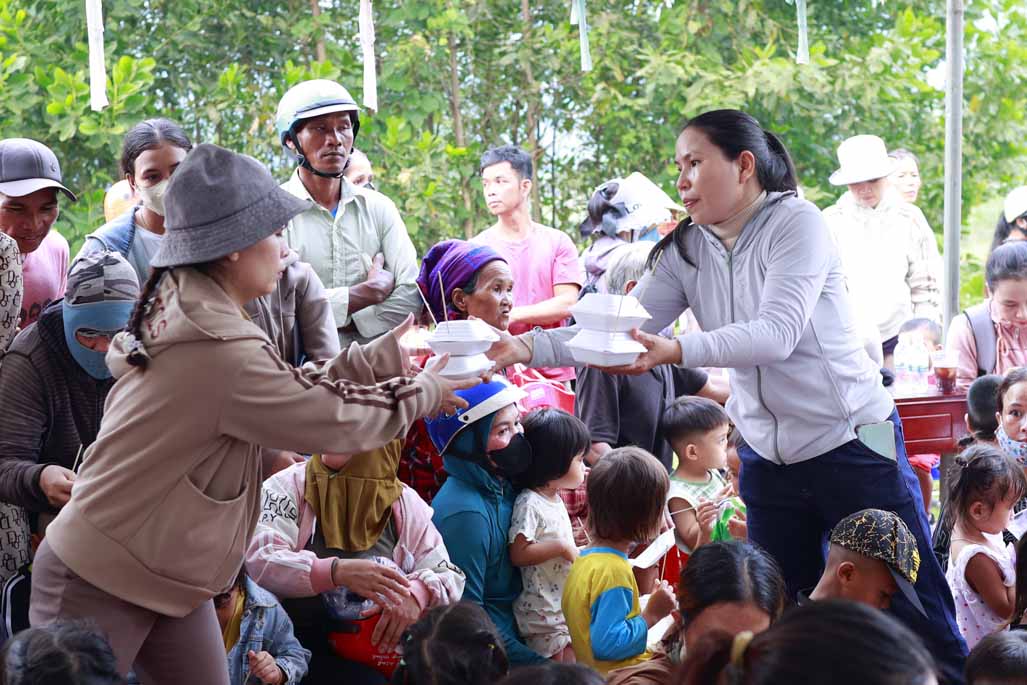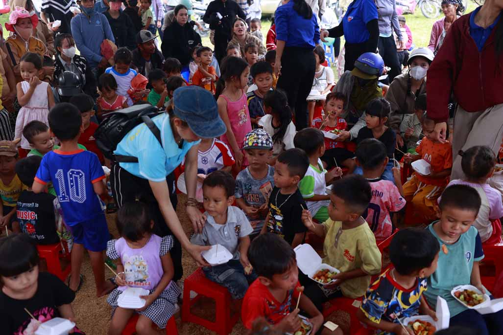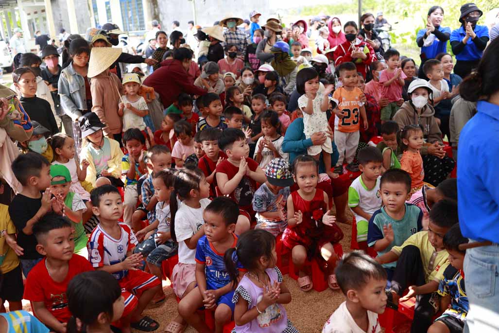 Đặc biệt, nhằm cải thiện điều kiện sinh hoạt tại trường Mầm non Sơn Ca và các trường điểm lân cận, đoàn còn hỗ trợ 50 phần giường, mền và gối mới cho các bé bán trú mầm non. Ngoài ra, 350 suất ăn cho các bé và 350 suất ăn cho bà con cũng đã được chuẩn bị chu đáo, thể hiện sự quan tâm toàn diện đến cộng đồng.