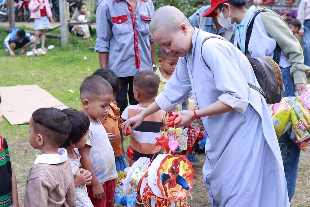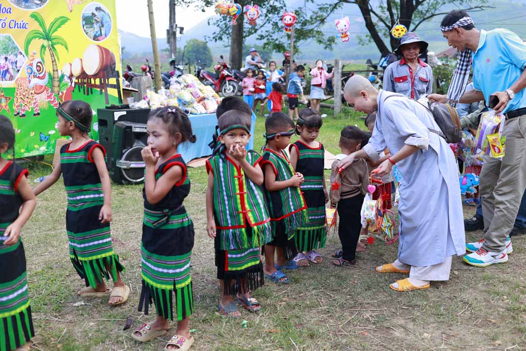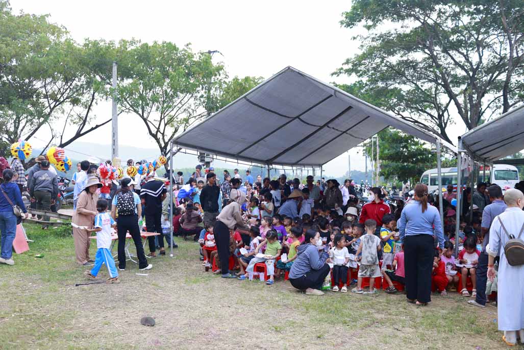 Đoàn đã trao tổng cộng 350 phần quà cho các bé, bao gồm lồng đèn và bánh Trung Thu, nhằm động viên tinh thần và chia sẻ khó khăn với các em vùng cao.