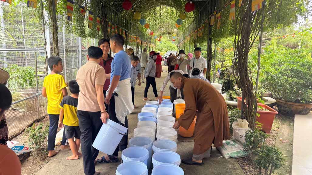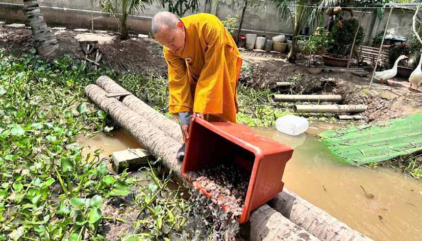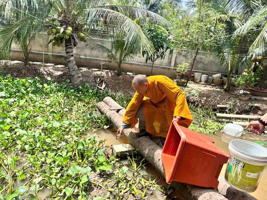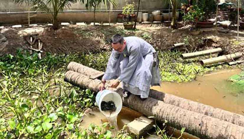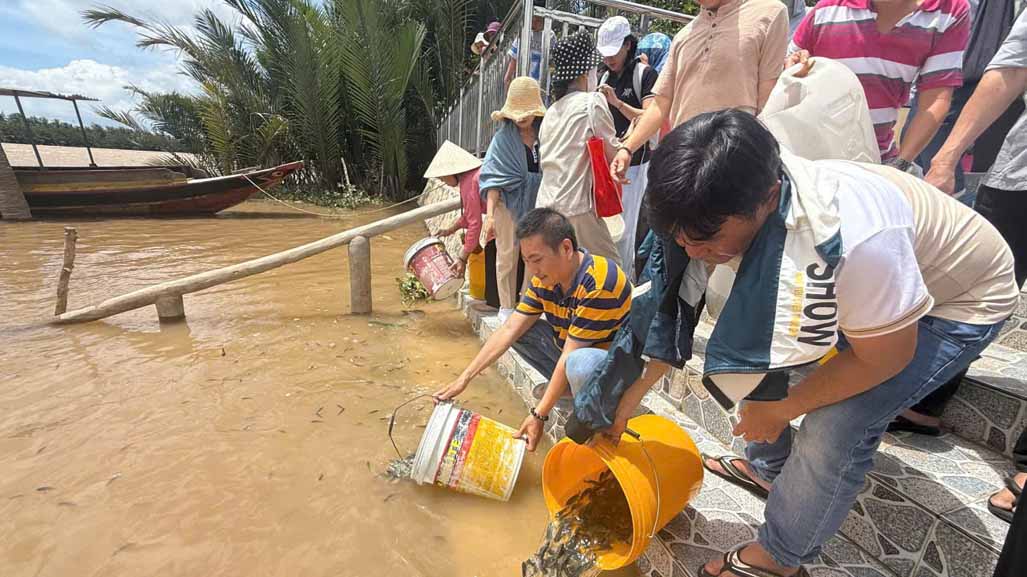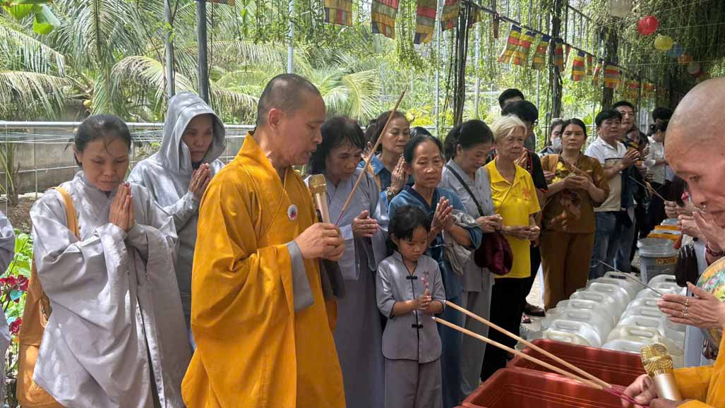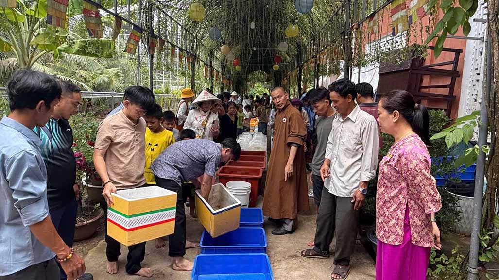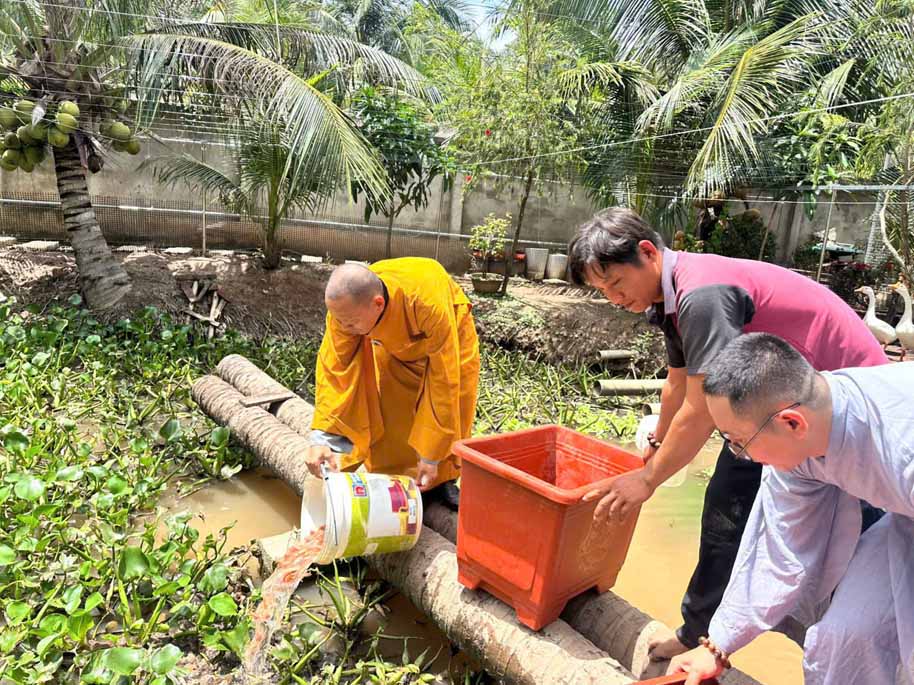 Nhân dịp này, Chư Tăng Phật tử đã thực hiện nghi thức phóng sanh hơn 500 kg cá, ếch các loại xuống dòng sông Tiền, gieo duyên lành, nuôi dưỡng tâm từ bi, góp phần bảo vệ sự sống muôn loài.