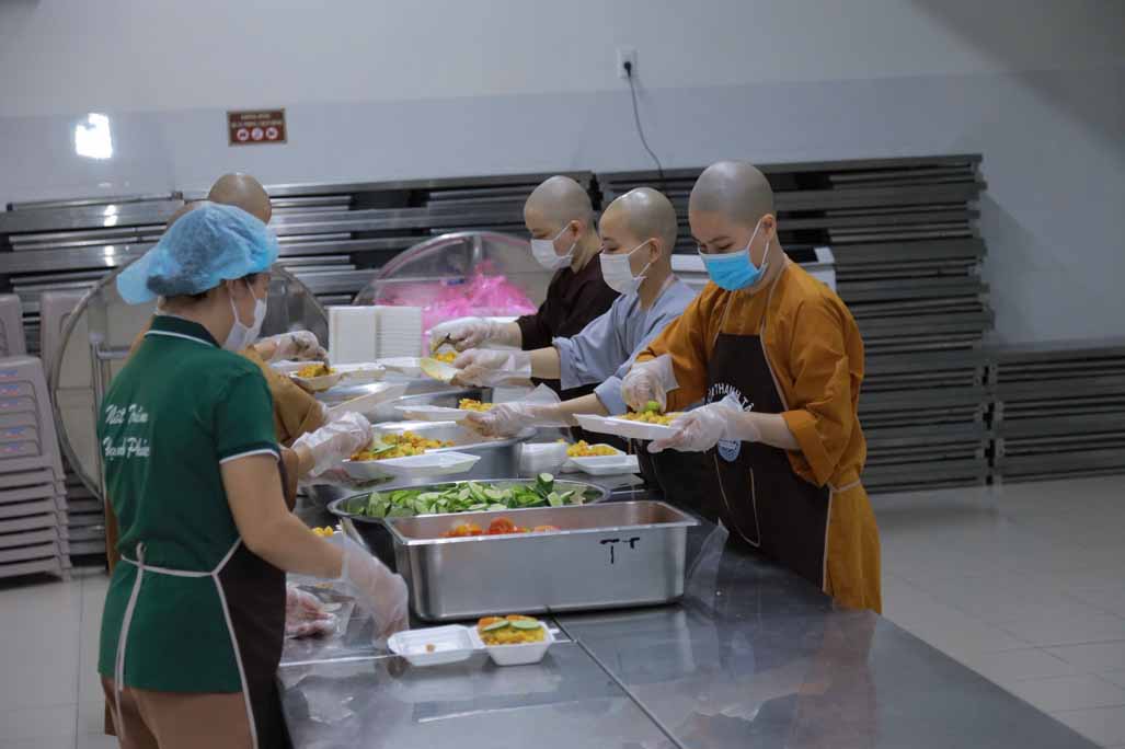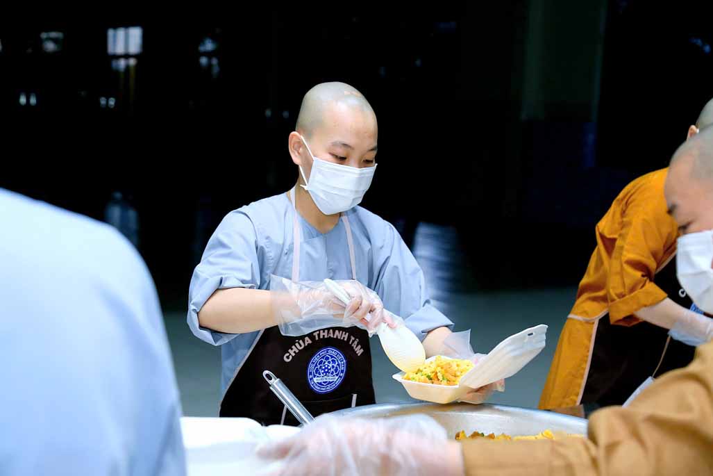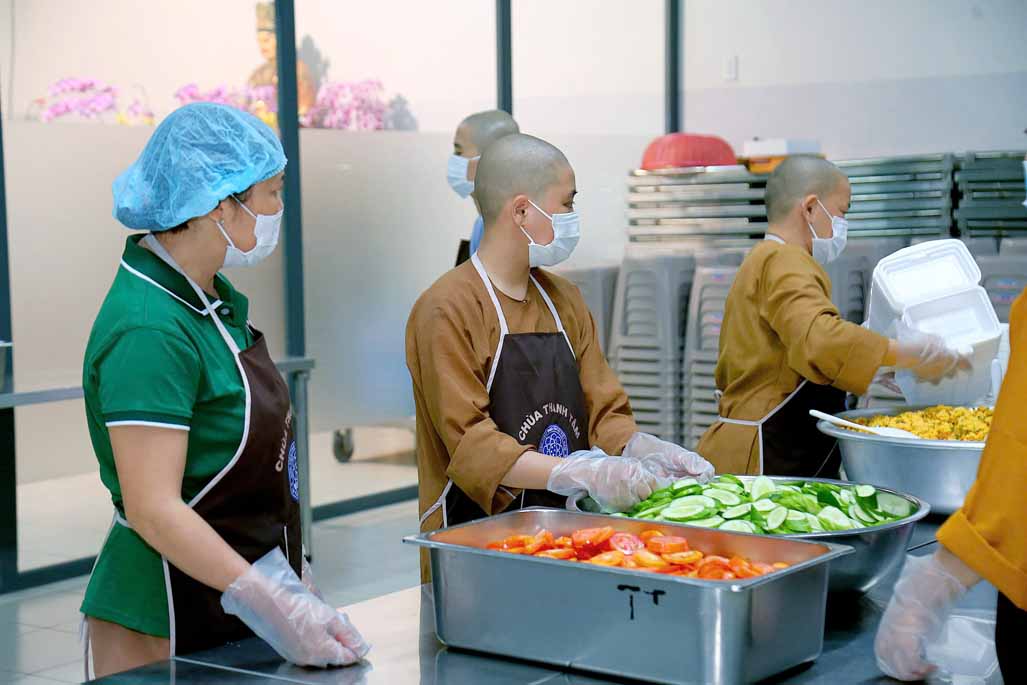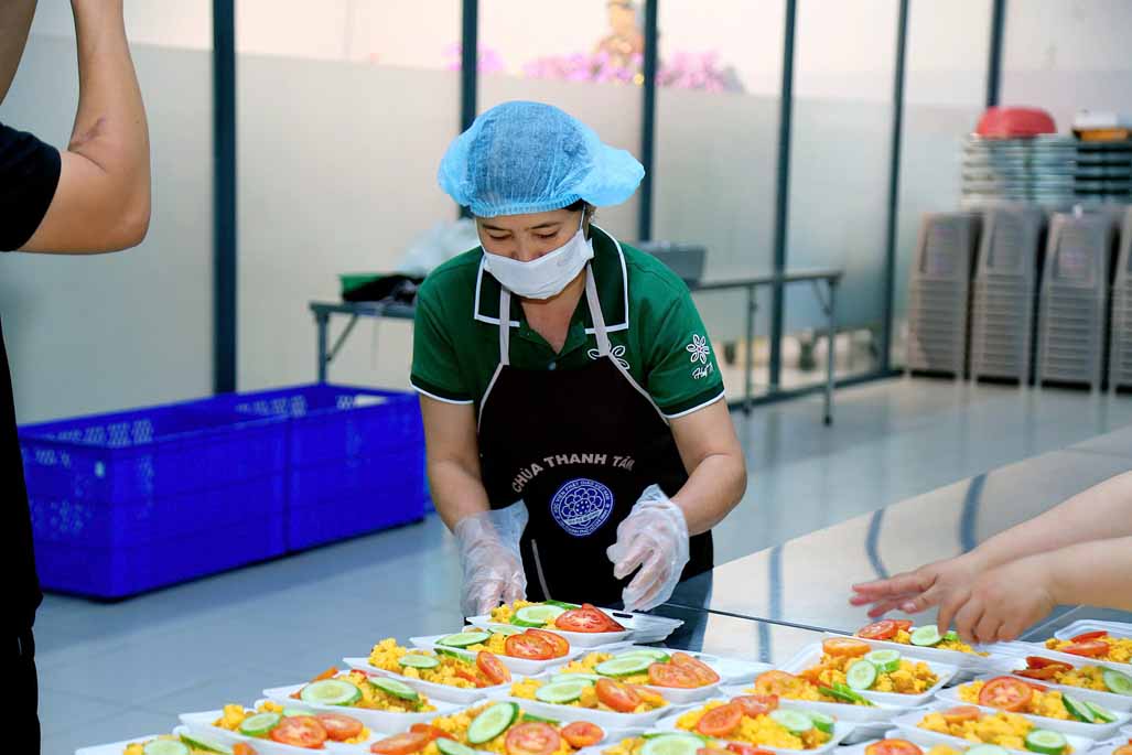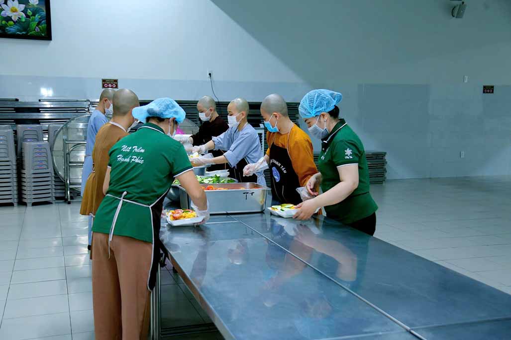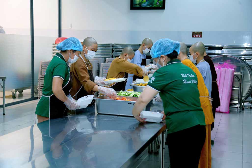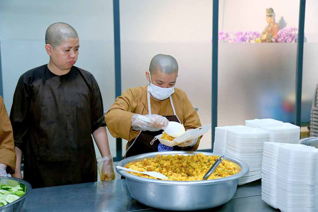 Hoạt động diễn ra trong không khí ấm áp, tràn đầy niềm hoan hỷ. Mỗi phần cơm chay được chuẩn bị chu đáo, gửi gắm tấm lòng từ bi và tinh thần sẻ chia của những người con Phật.