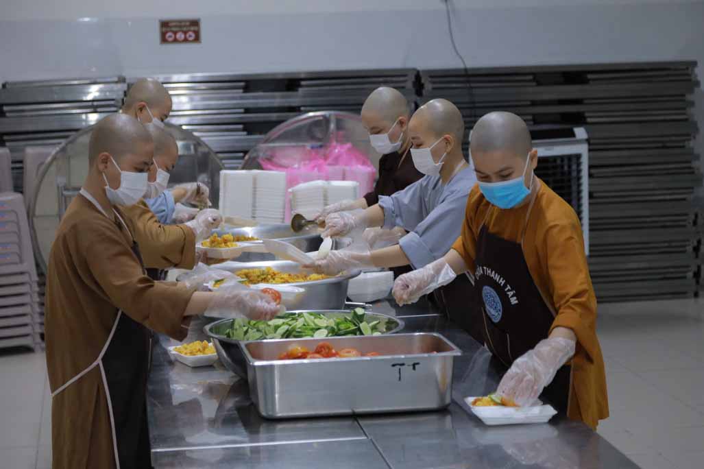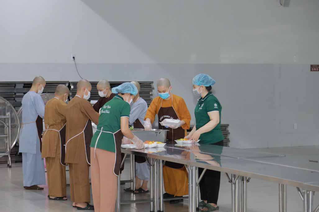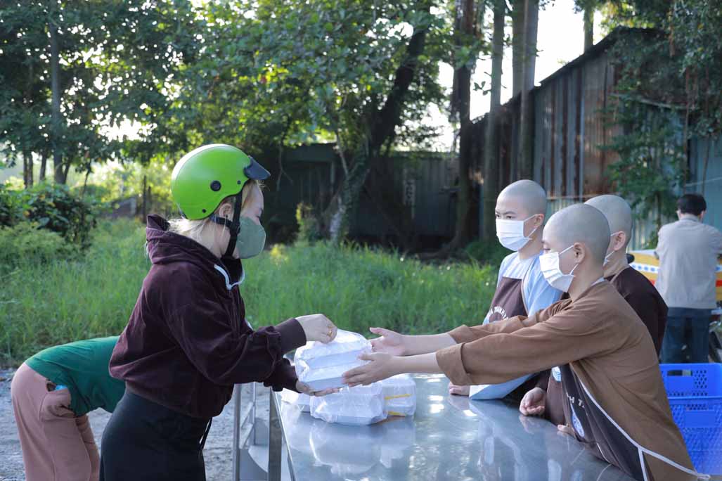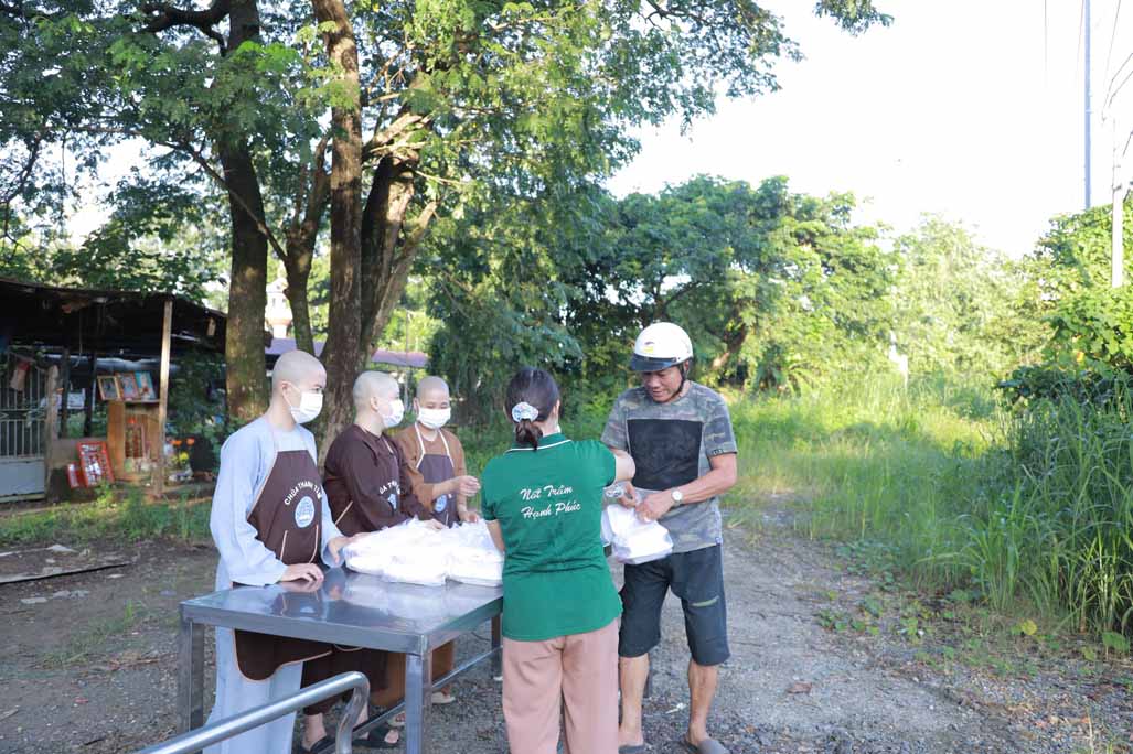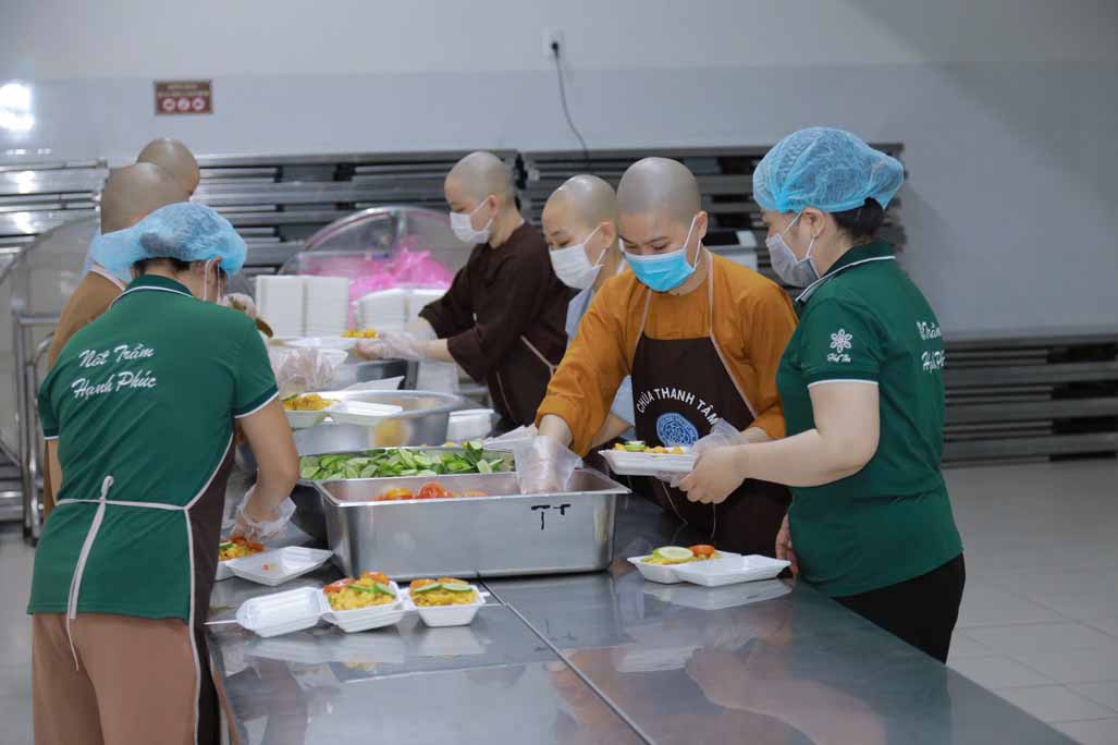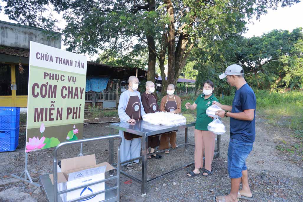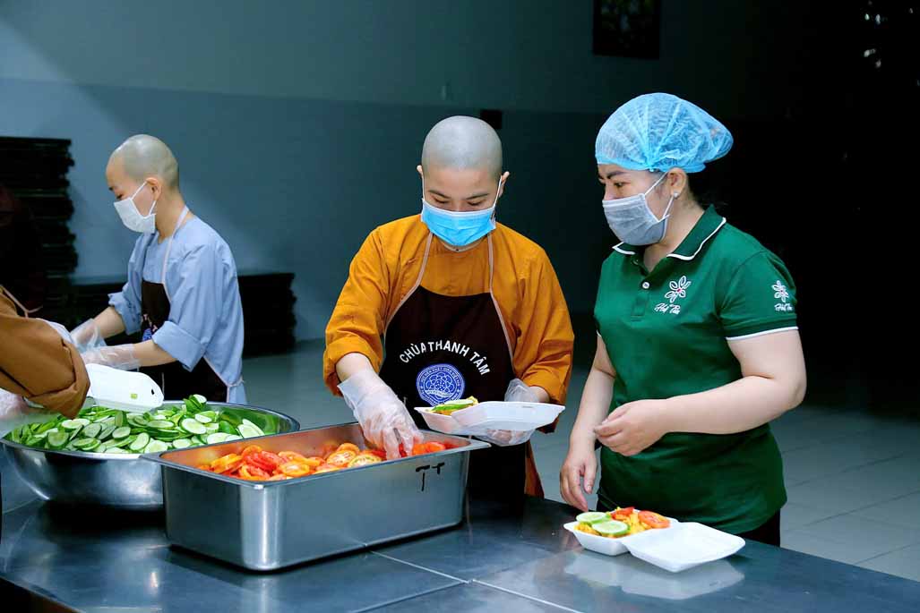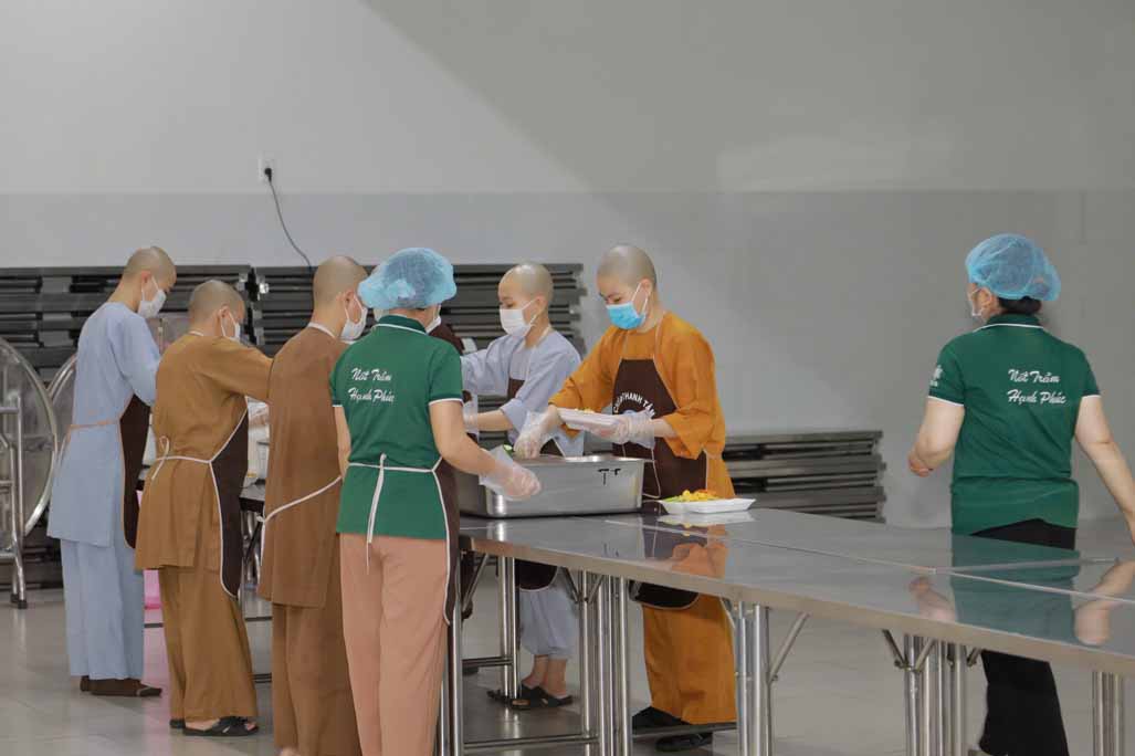 Hoạt động diễn ra trong không khí ấm áp, tràn đầy niềm hoan hỷ. Mỗi phần cơm chay được chuẩn bị chu đáo, gửi gắm tấm lòng từ bi và tinh thần sẻ chia của những người con Phật.