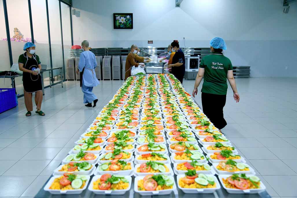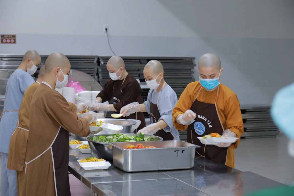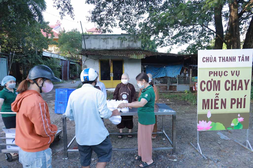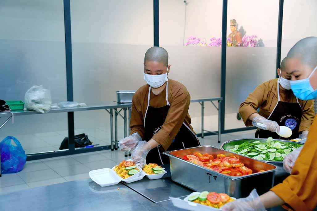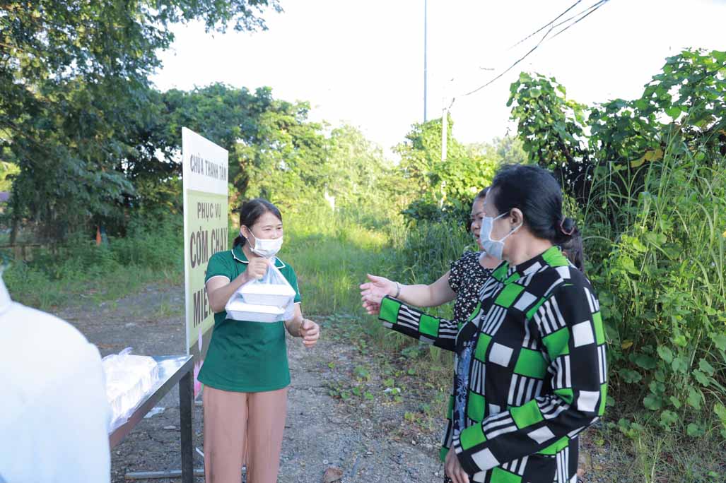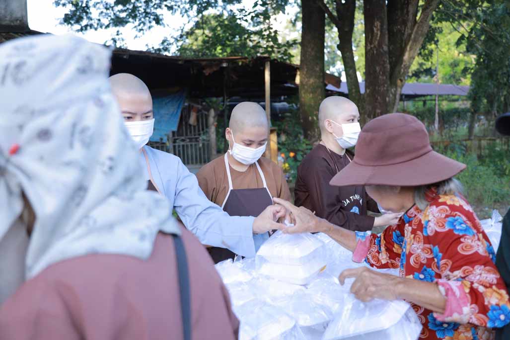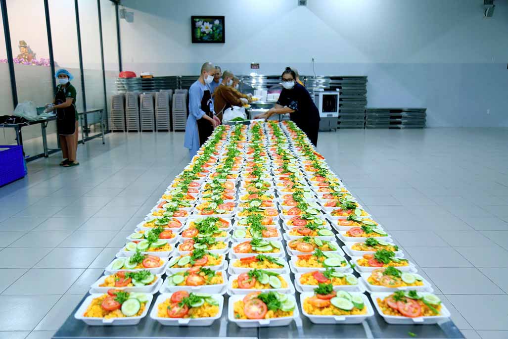 Hoạt động diễn ra trong không khí ấm áp, tràn đầy niềm hoan hỷ. Mỗi phần cơm chay được chuẩn bị chu đáo, gửi gắm tấm lòng từ bi và tinh thần sẻ chia của những người con Phật.