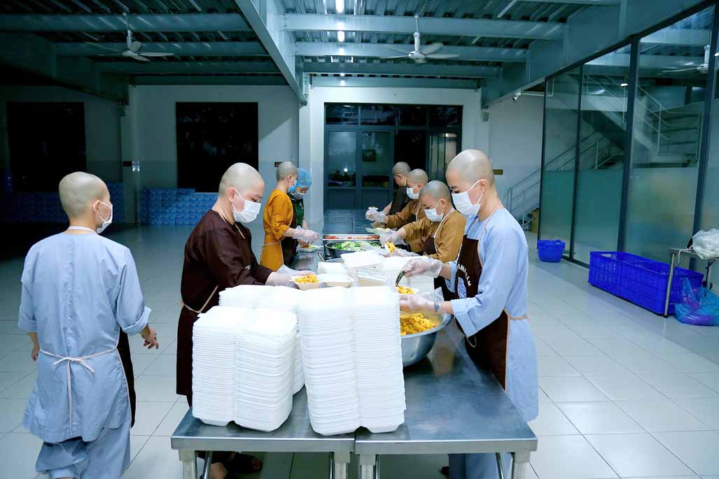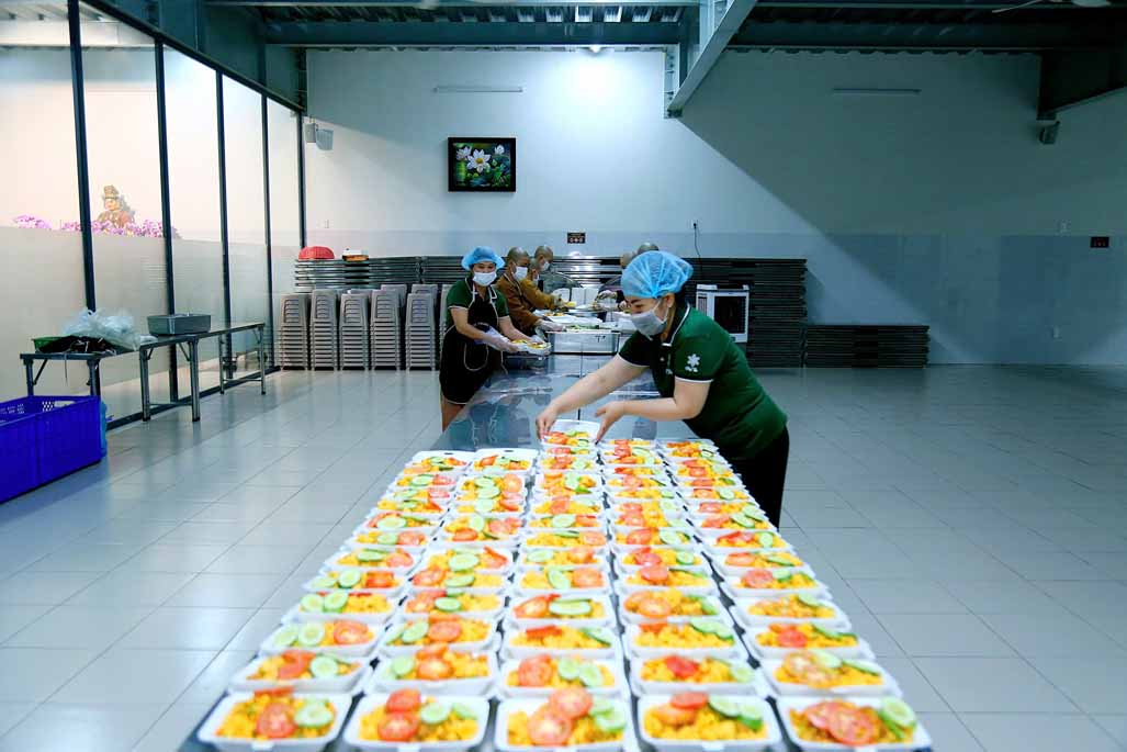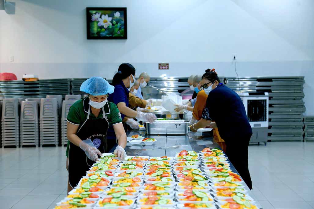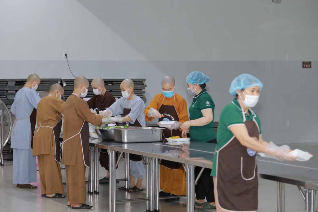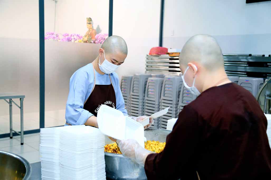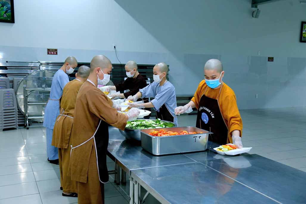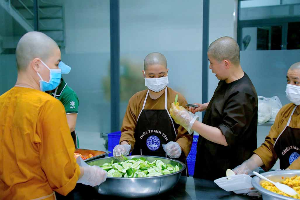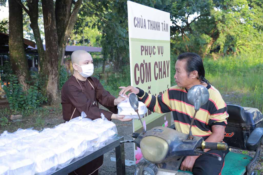 Hoạt động diễn ra trong không khí ấm áp, tràn đầy niềm hoan hỷ. Mỗi phần cơm chay được chuẩn bị chu đáo, gửi gắm tấm lòng từ bi và tinh thần sẻ chia của những người con Phật.