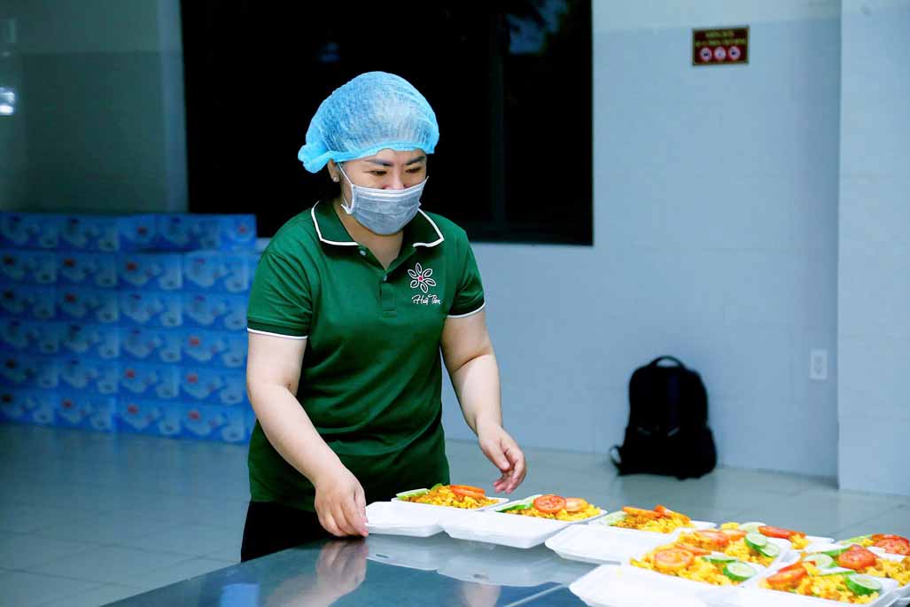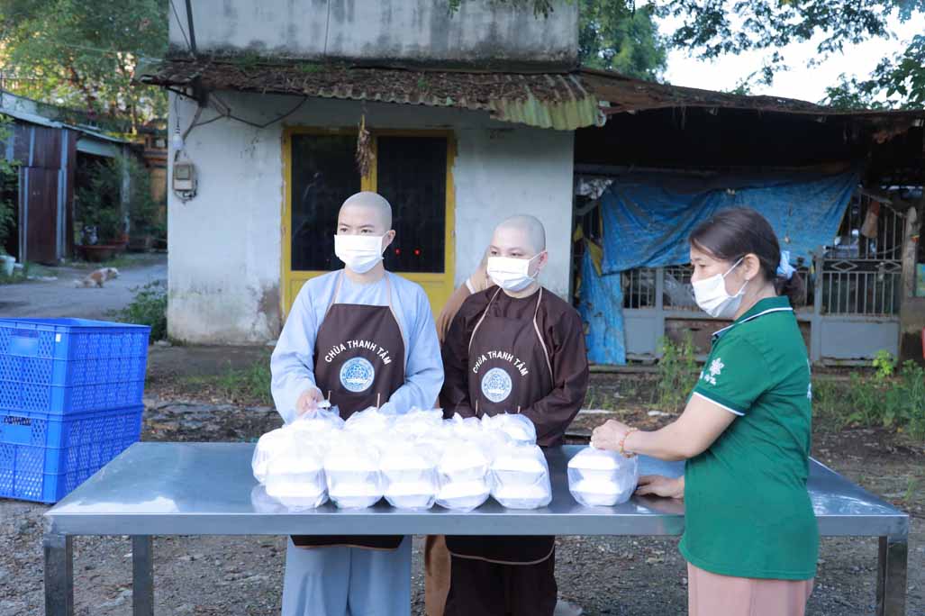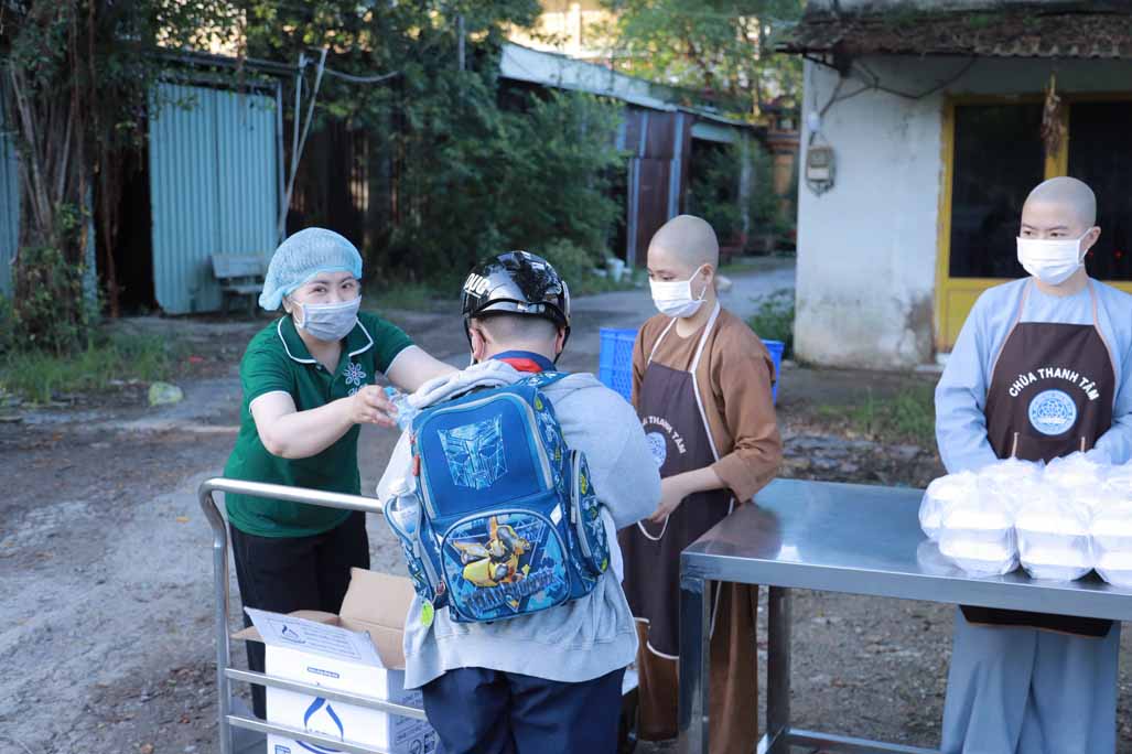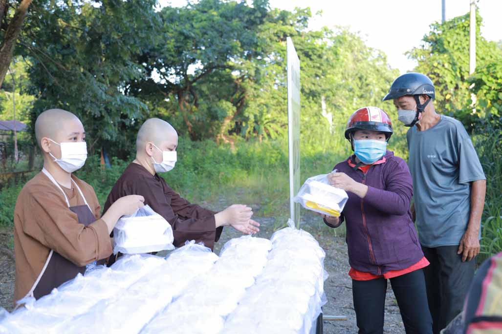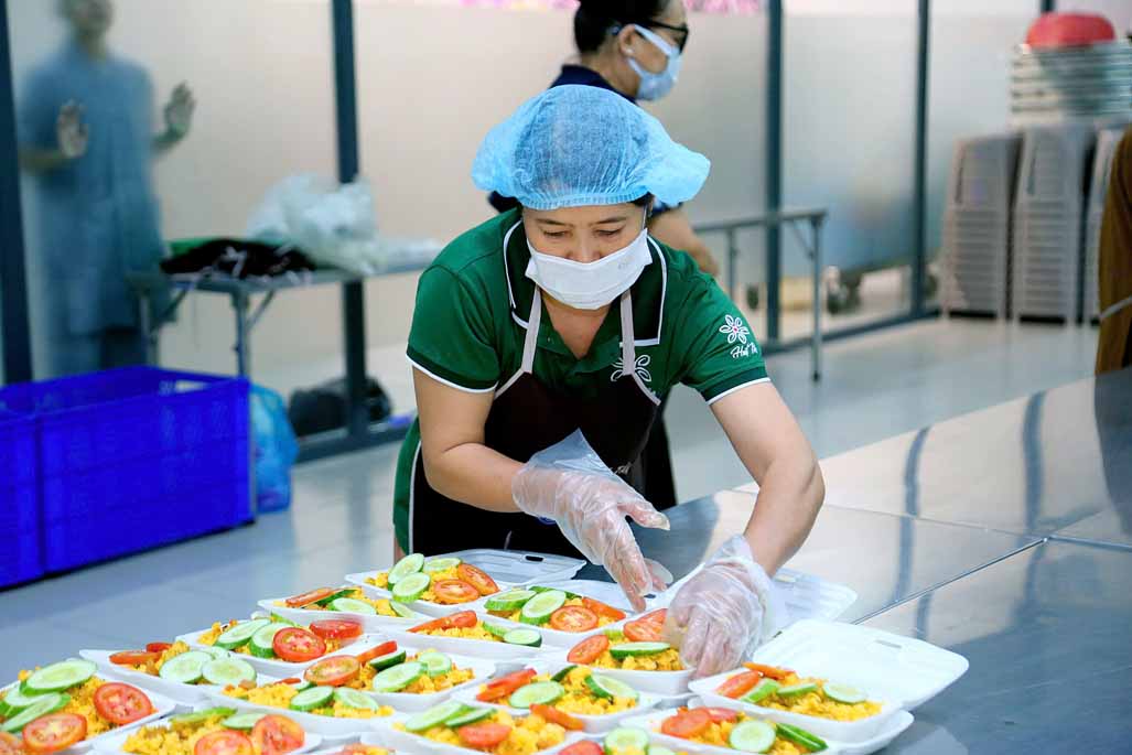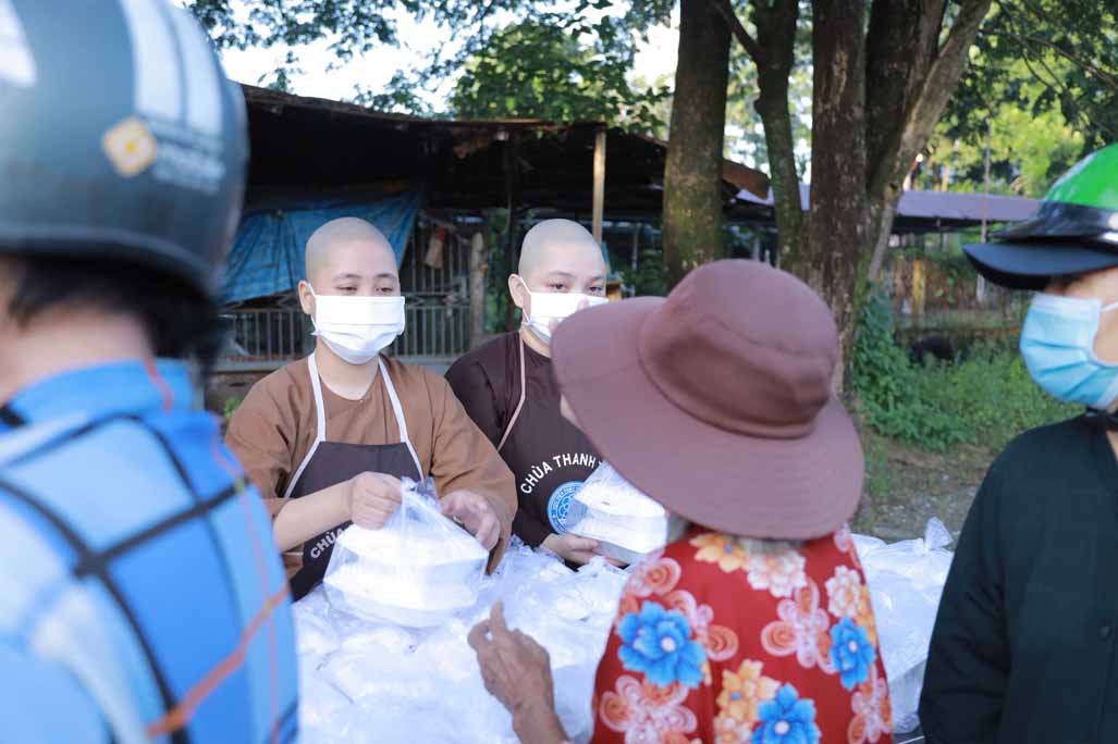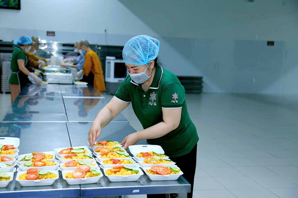 Hoạt động diễn ra trong không khí ấm áp, tràn đầy niềm hoan hỷ. Mỗi phần cơm chay được chuẩn bị chu đáo, gửi gắm tấm lòng từ bi và tinh thần sẻ chia của những người con Phật.
