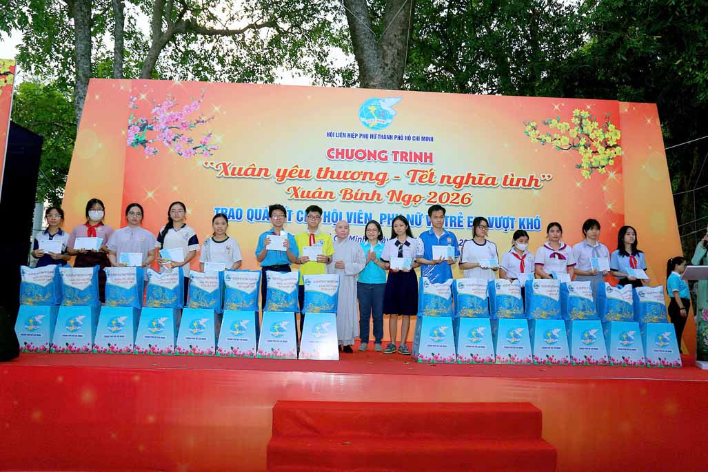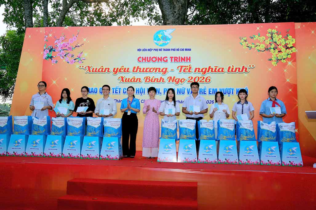 Chiều ngày 31/01/2026, trong không khí rộn ràng của những ngày giáp Tết, Hội Liên hiệp Phụ nữ (LHPN) TP. Hồ Chí Minh, đã trang trọng tổ chức lễ trao tặng học bổng, quà và thẻ bảo hiểm y tế (BHYT) trong khuôn khổ chương trình “Xuân yêu thương – Tết nghĩa tình” tại Công viên Văn hóa Đầm Sen. Đây là hoạt động thiết thực, nhằm chăm lo cho trẻ em và bà con có hoàn cảnh khó khăn đón một mùa xuân ấm áp, an vui.