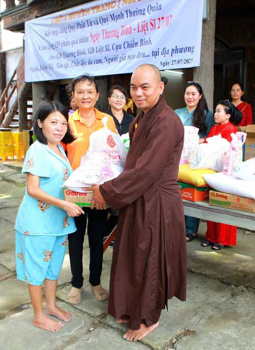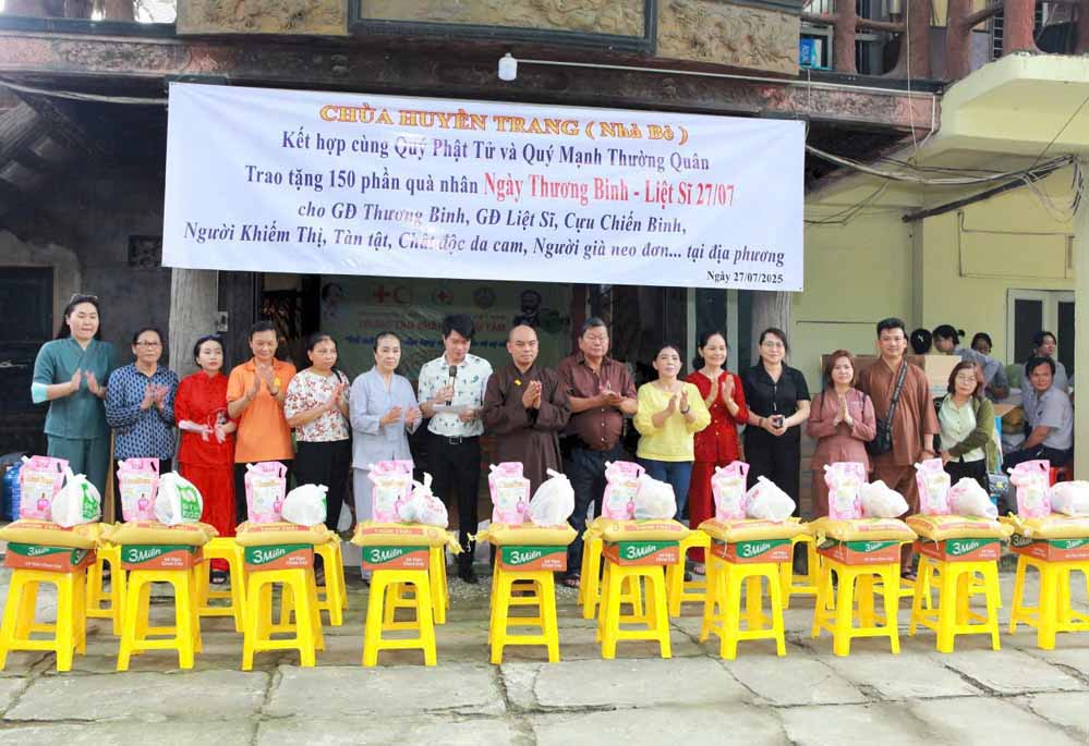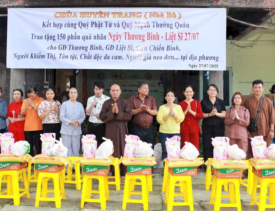 Sáng ngày 27/ 07/ 2025, nhân kỷ niệm 78 năm ngày Thương binh – Liệt sĩ (27/7/1947 – 27/7/2025), chùa Huyền Trang, xã Nhà Bè, TP. HCM đã tổ chức trao tặng 150 phần quà đến các thương binh, cựu chiến binh, nạn nhân chất độc màu da cam/dioxin và người khiếm thị đang sinh sống trên địa bàn xã.
