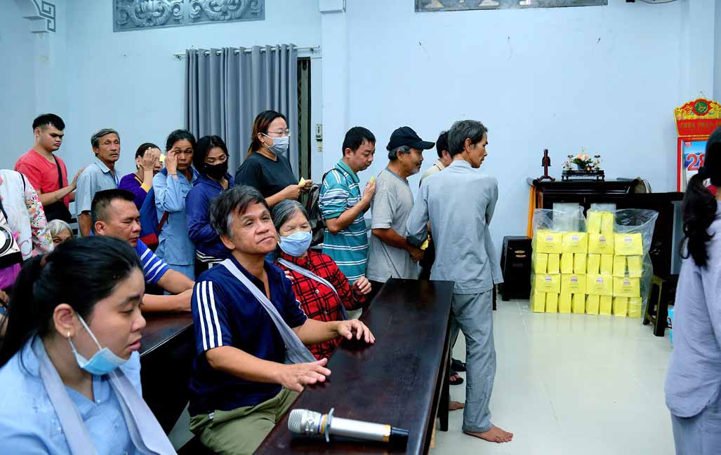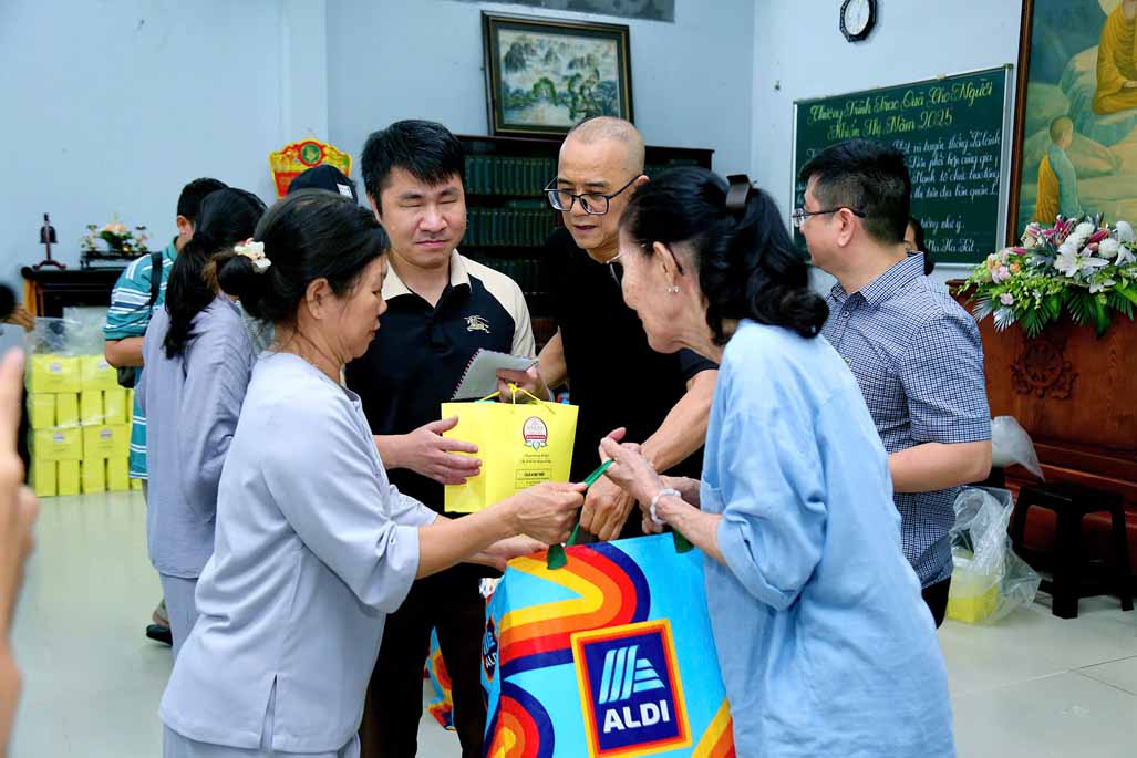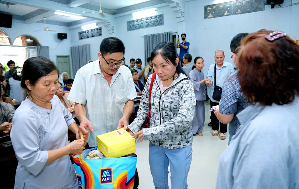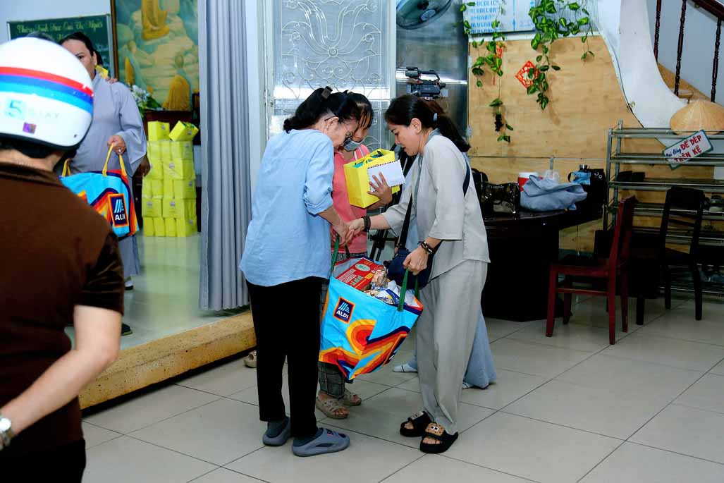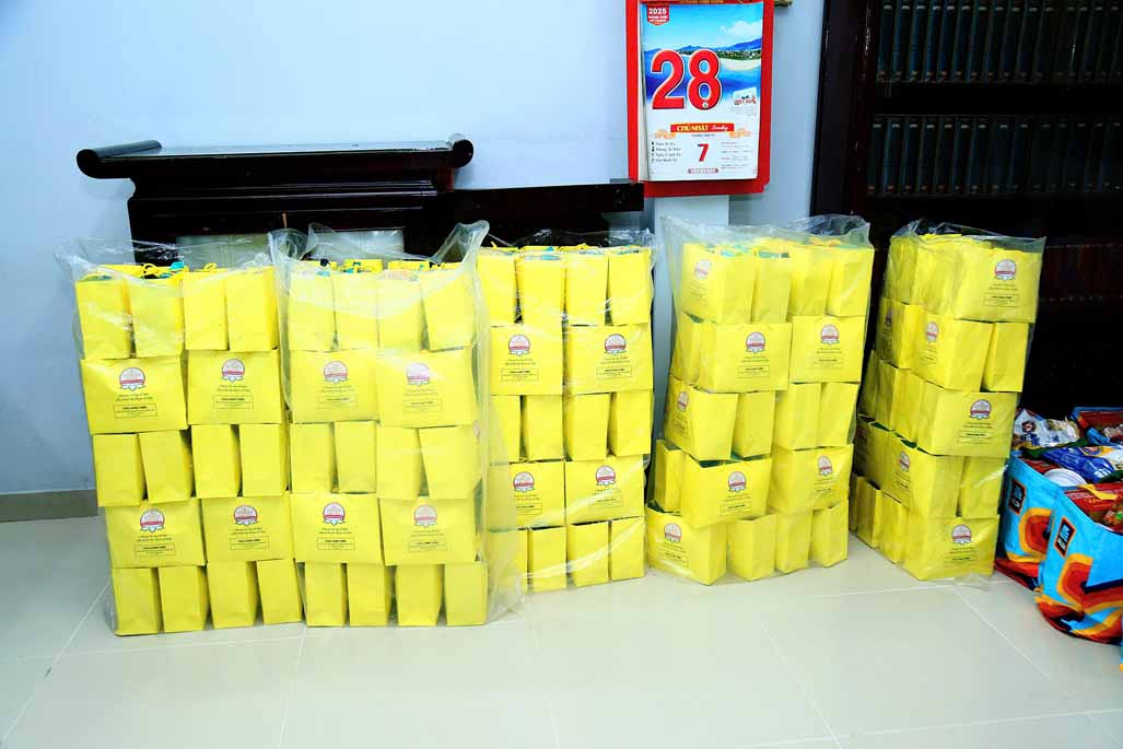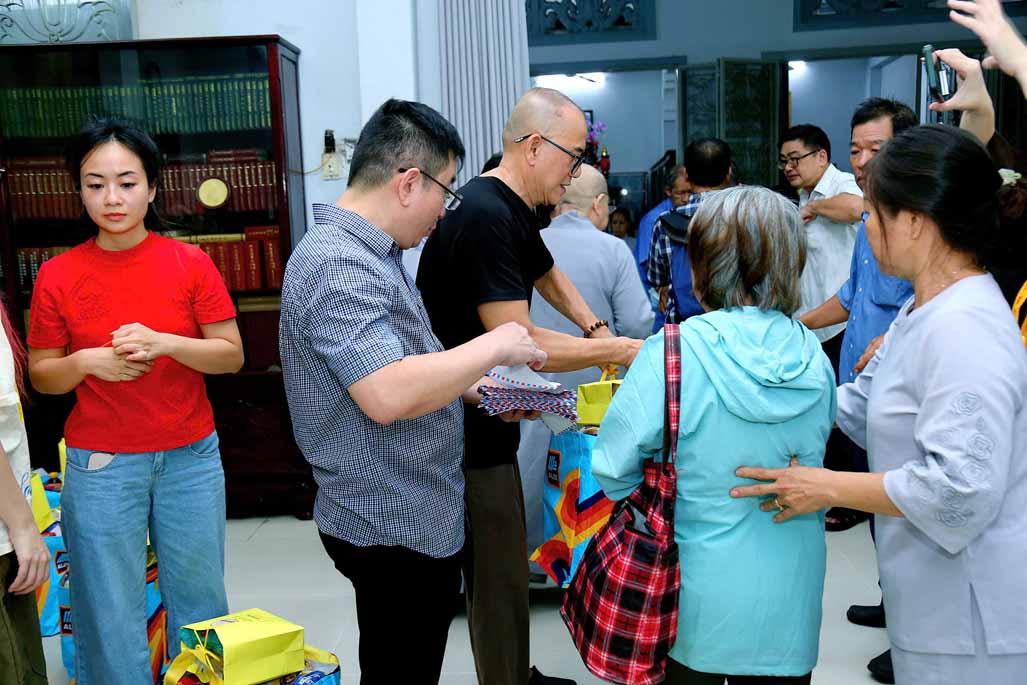 Điều xúc động nhất là niềm hoan hỷ rạng ngời của bà con khiếm thị. Mỗi phần quà gồm 10 ký gạo, 1 thùng mì, chai nước tương, 1 ký bột nêm, cháo và bao thư 100 nghìn đồng cùng với phần quà từ Ni sư Thích Như Lan (chùa Hưng Thiền) cũng chung tay trao tặng.