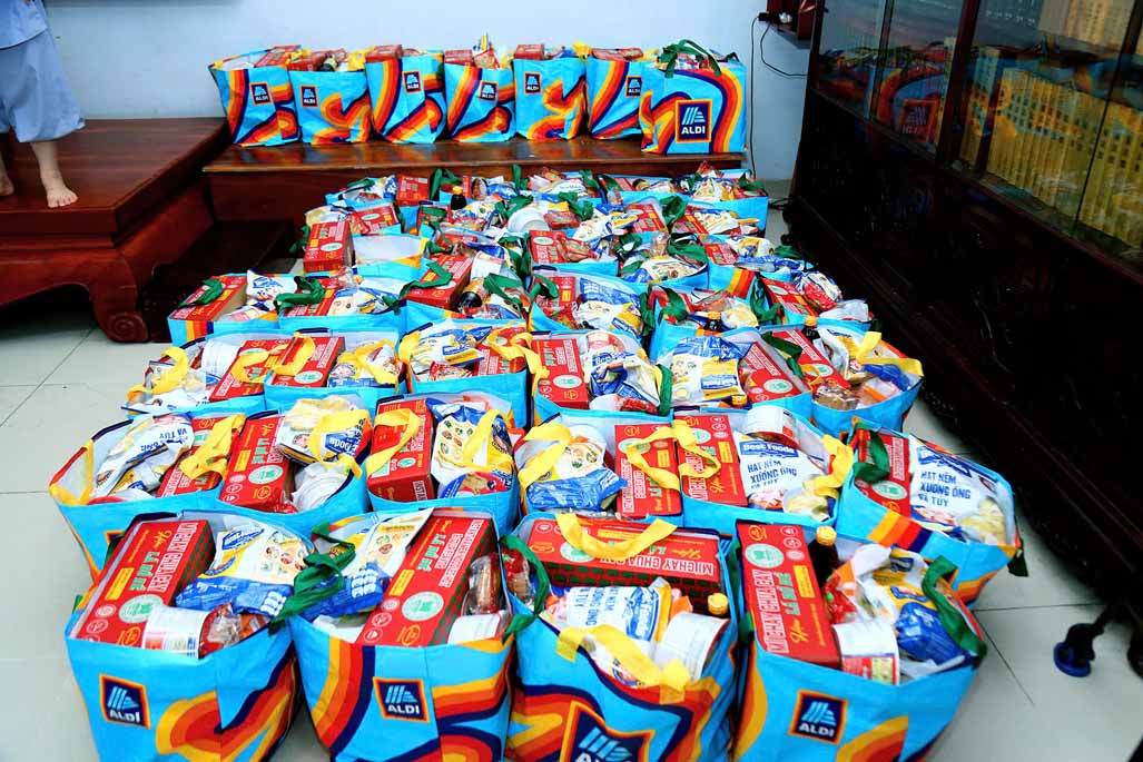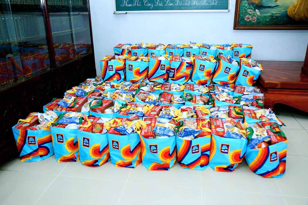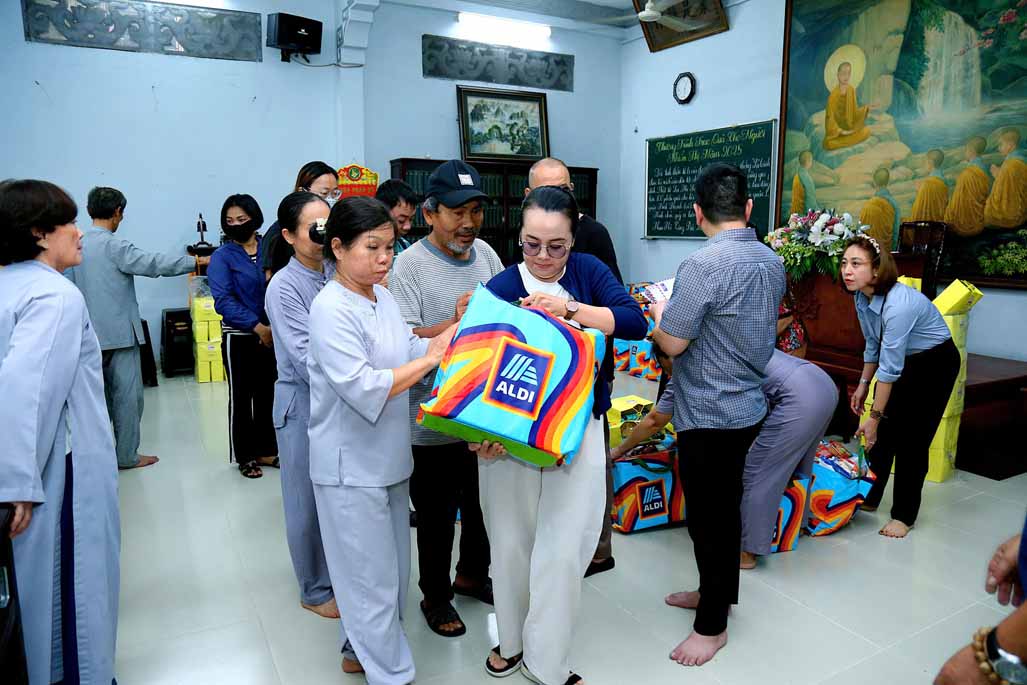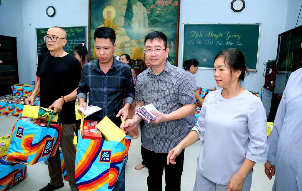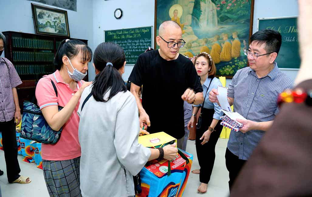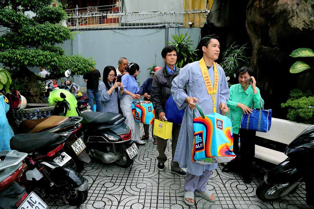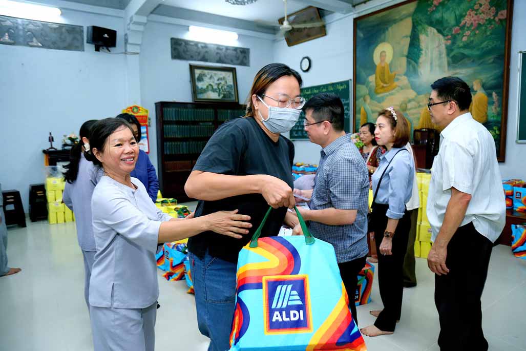 Điều xúc động nhất là niềm hoan hỷ rạng ngời của bà con khiếm thị. Mỗi phần quà gồm 10 ký gạo, 1 thùng mì, chai nước tương, 1 ký bột nêm, cháo và bao thư 100 nghìn đồng cùng với phần quà từ Ni sư Thích Như Lan (chùa Hưng Thiền) cũng chung tay trao tặng.