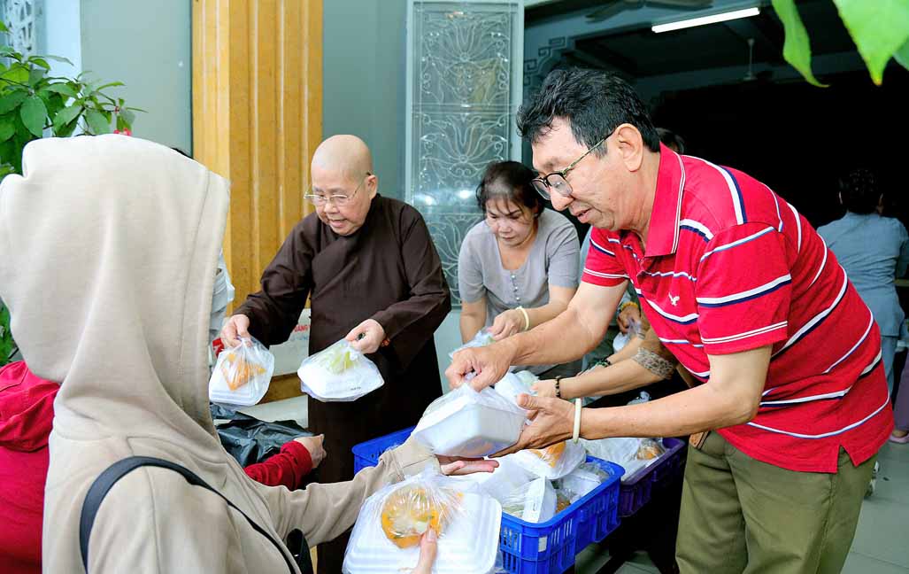 Mỗi phần cơm chay hôm nay, không chỉ là thức ăn mà còn là tấm lòng của chư Ni tại chùa và quý mạnh thường quân dành cho bà con, là nguồn động viên lớn lao, tiếp thêm sức mạnh cho những người có hoàn cảnh khó khăn, để vơi đi phần nào chi tiêu trong cuộc sống.