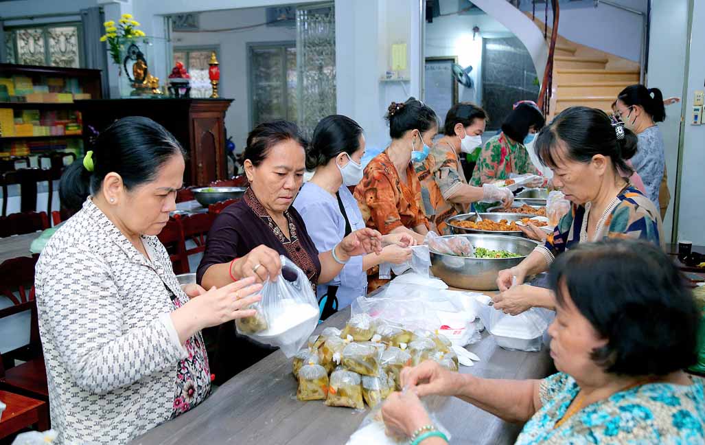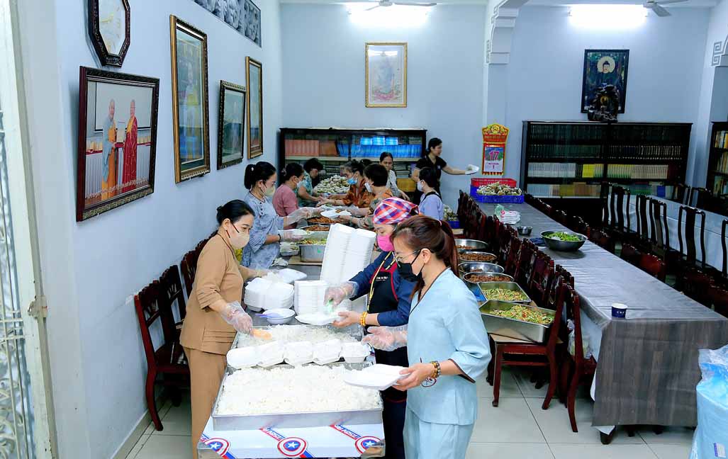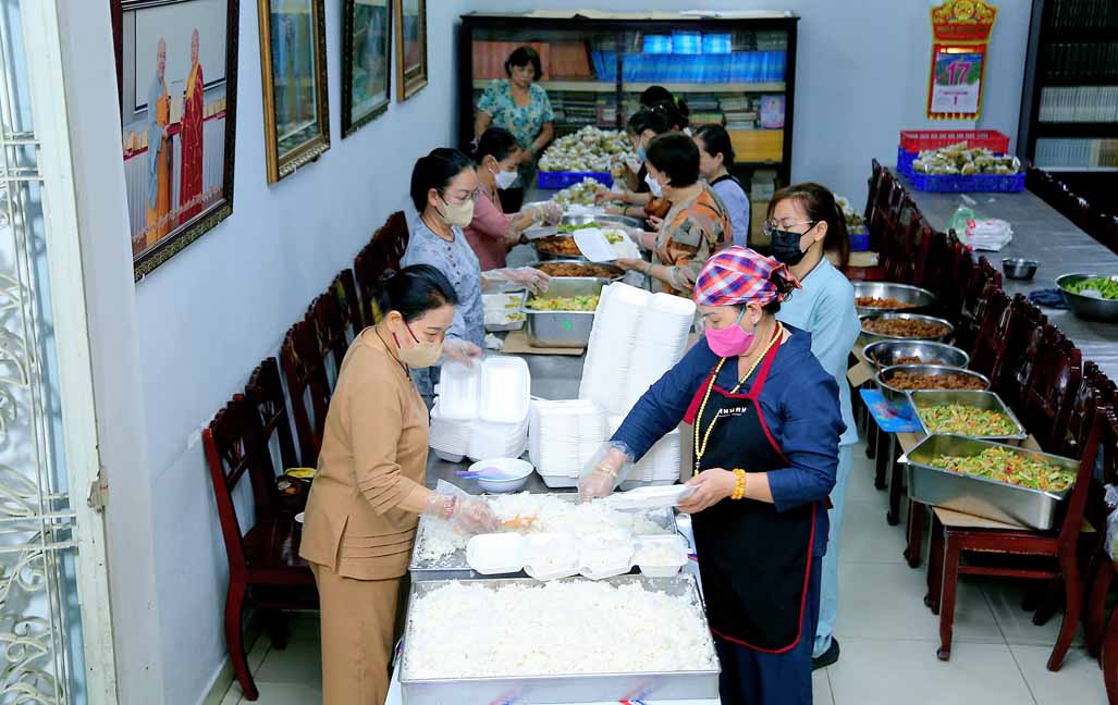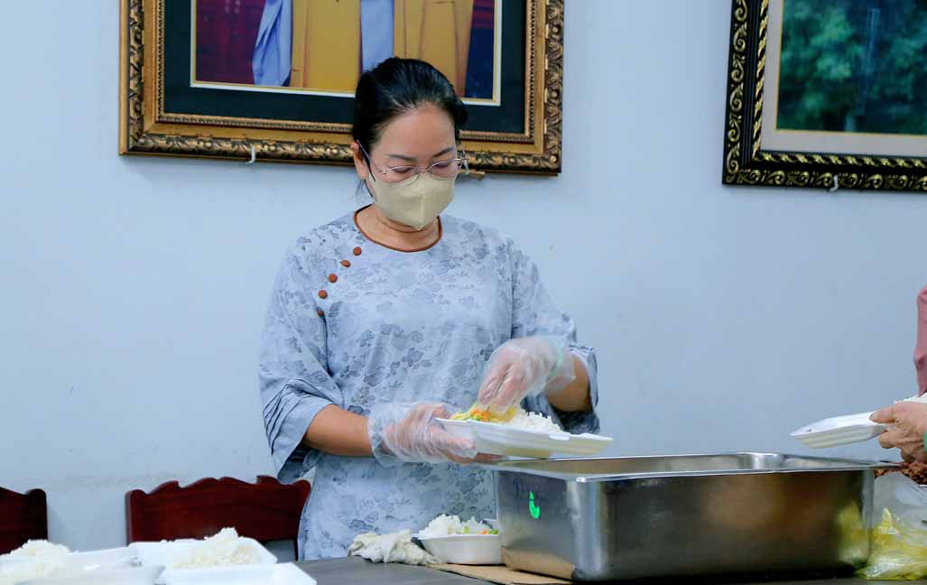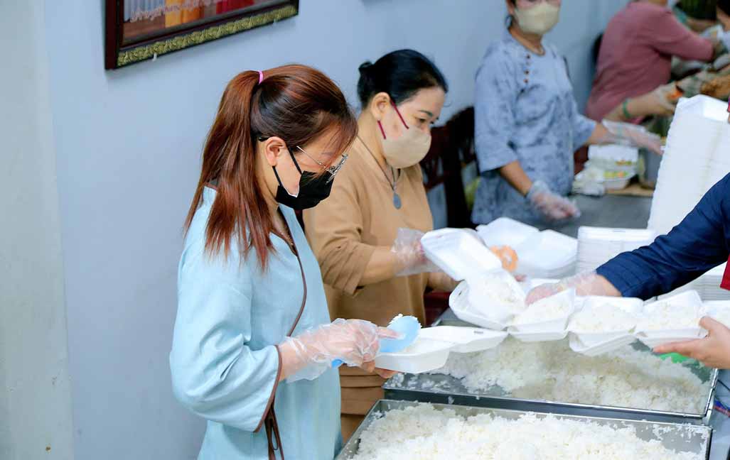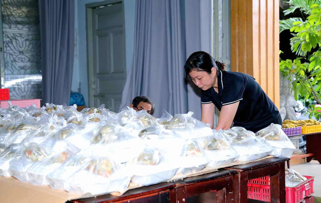 Từng phần cơm được chuẩn bị chu đáo, gửi gắm trong đó là tấm lòng của những nhà hảo tâm, với mong muốn xoa dịu phần nào nỗi lo toan cơm áo gạo tiền cho bà con nghèo, người lao động tự do và người già neo đơn.