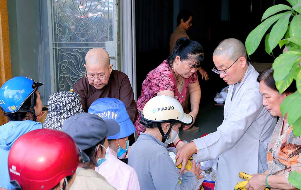 Tại buổi trao tặng, có sự hiện diện của Ni trưởng Thích Từ Nhẫn – Trụ trì chùa Phước Viên. Trong không khí thân tình, Ni trưởng đã có những lời chia sẻ, động viên sâu sắc đến bà con. “Những phần cơm tuy nhỏ bé về vật chất, nhưng là sự kết tinh của tình thương và lòng từ bi. Mong rằng bà con hãy luôn giữ vững niềm tin, nghị lực để vượt qua nghịch cảnh. Chùa Phước Viên và các nhà hảo tâm sẽ luôn là điểm tựa tinh thần, đồng hành cùng mọi người”.