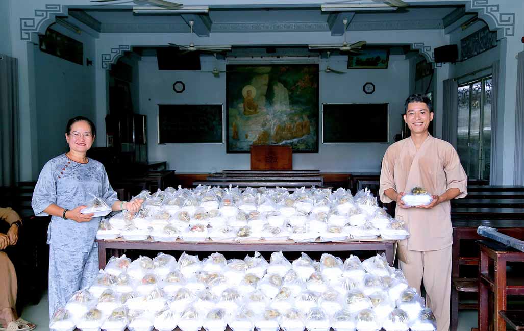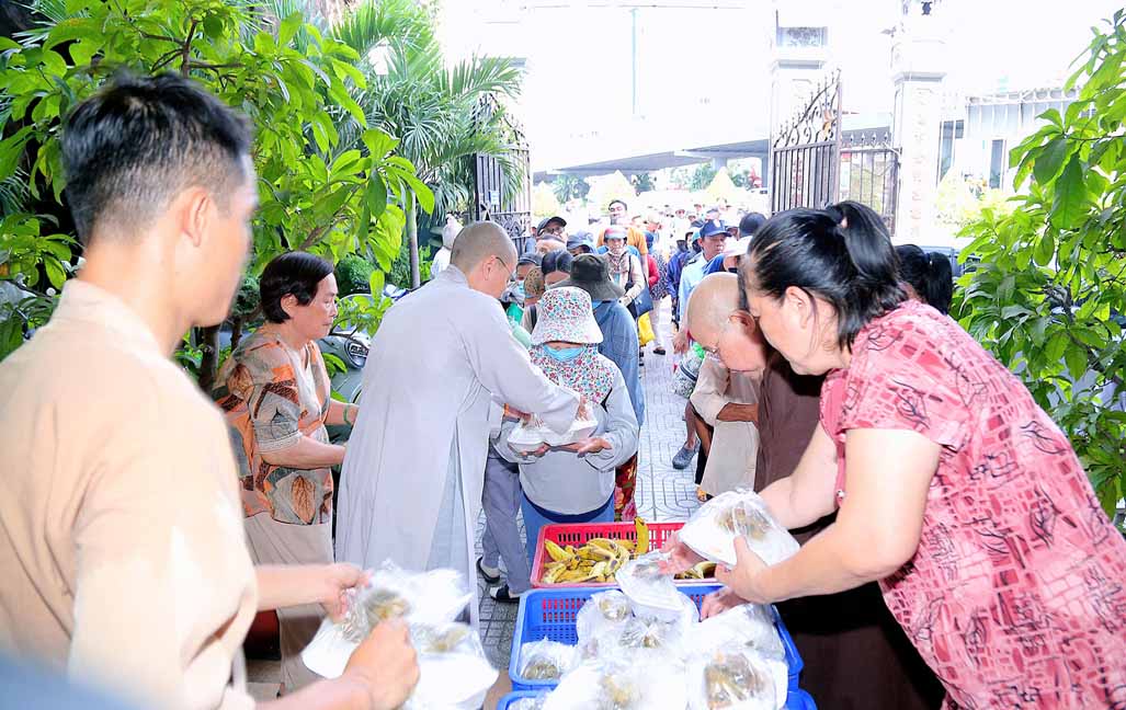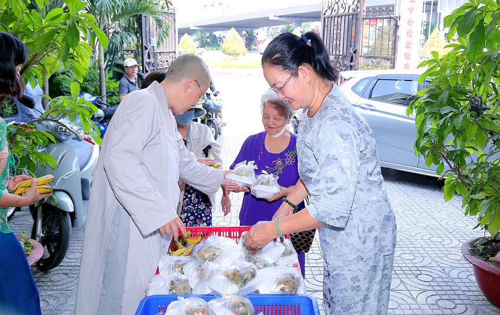 Hoạt động ý nghĩa này được chùa duy trì đều đặn mỗi tháng 2 kỳ vào các ngày mùng 01 và 15 âm lịch, nhằm sẻ chia yêu thương, góp phần chăm lo an sinh xã hội. Những phần cơm chay tuy giản dị, nhưng thấm đượm tình người, không chỉ giúp bà con vơi bớt nhọc nhằn, mà còn lan tỏa tinh thần từ bi của đạo Phật đến với cộng đồng.