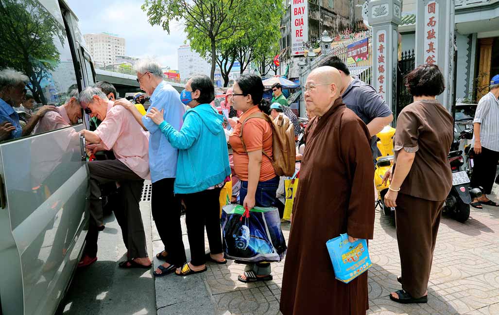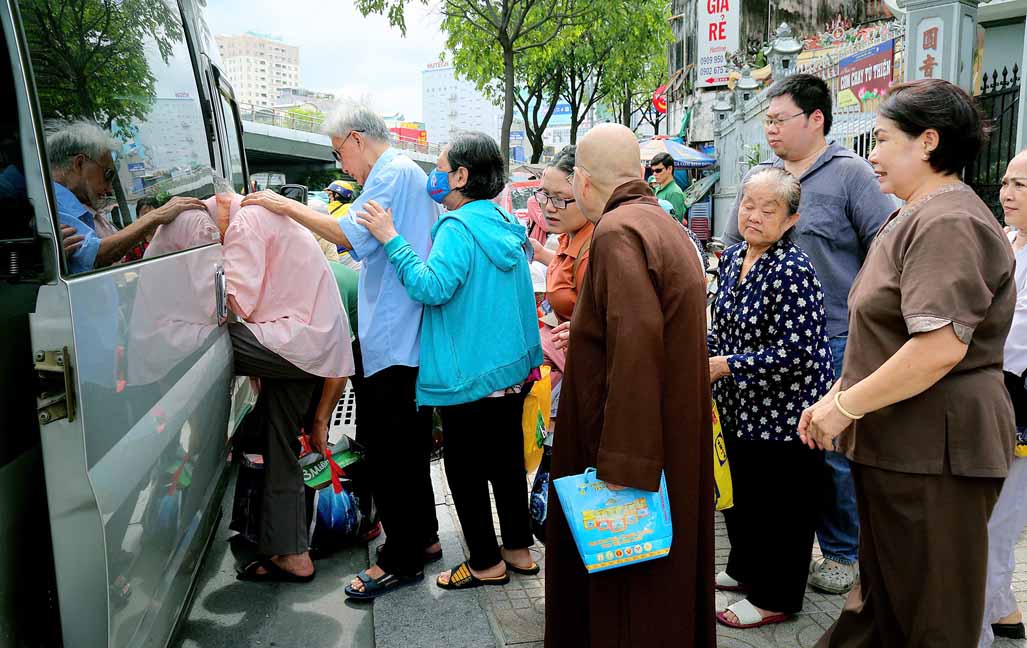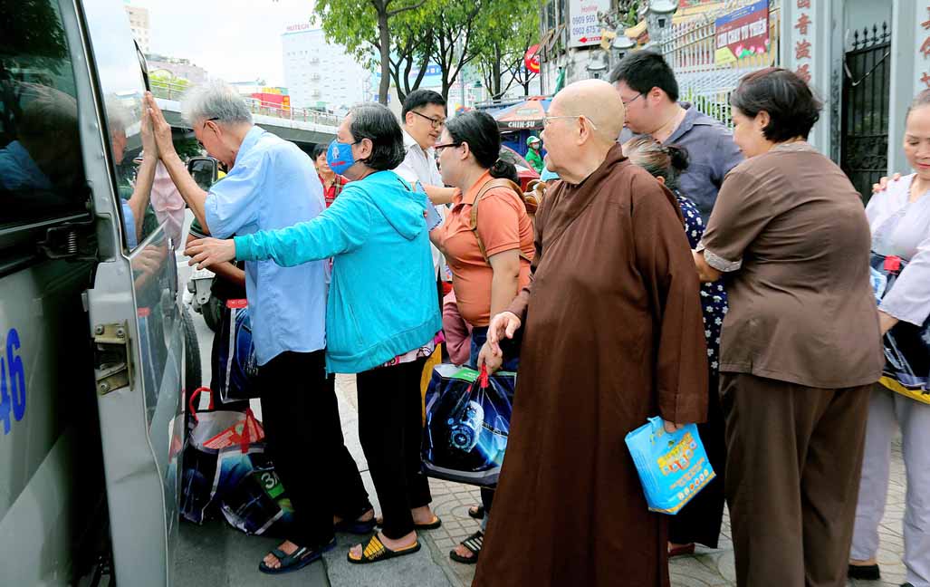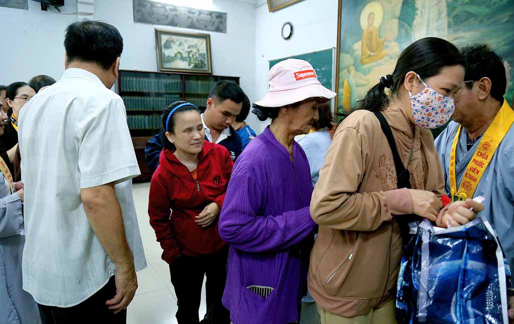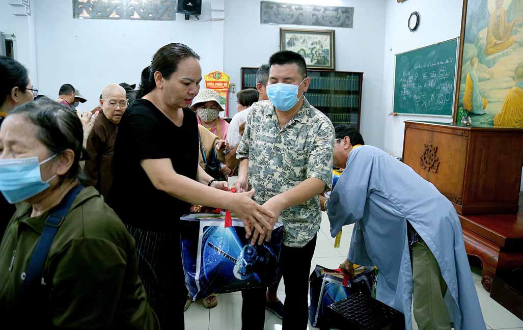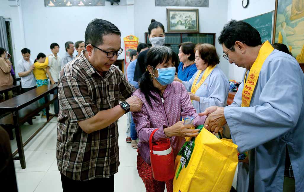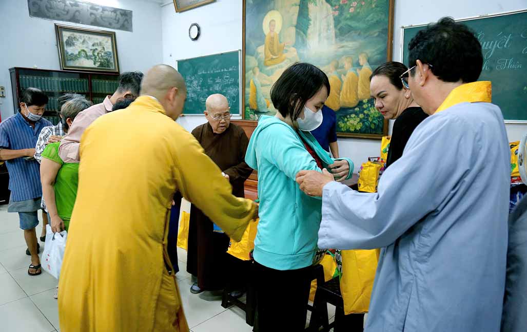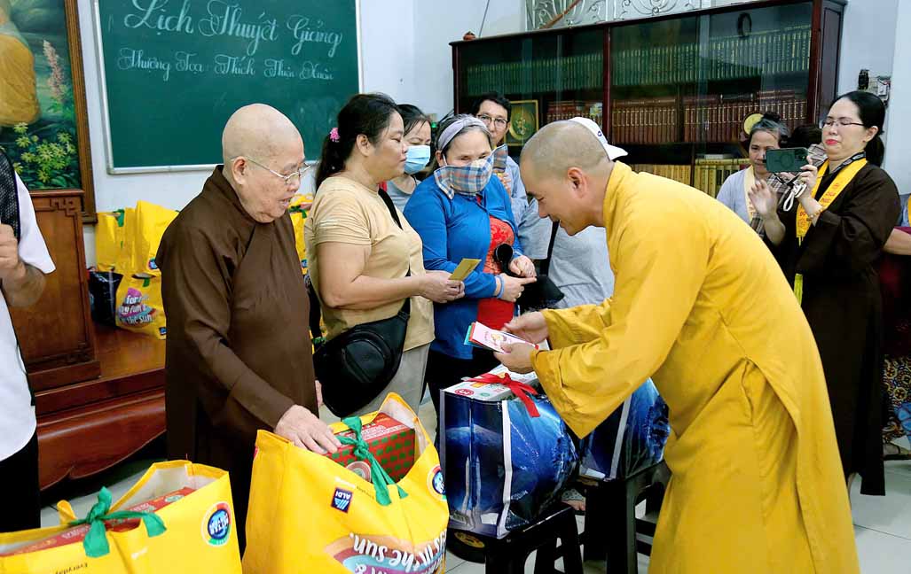 Buổi trao quà với sự tham dự của TT. Thích Thiện Xuân – Phó Ban Từ thiện Xã hội Trung ương, Trụ trì Tu viện Linh Thứu, Củ Chi, TP. HCM. Ni Trưởng Thích Từ Nhẫn – Phó trưởng Phân ban Ni giới Trung ương, Phó BTS GHPGVN TP. HCM, Trưởng Phân ban Ni giới Phật giáo TP. HCM, trụ trì chùa Phước Viên cùng chư Tôn đức Ni và quý Phật tử. Đây là hoạt động diễn ra thường xuyên tại chùa Phước Viên, mỗi phần quà gồm 10 ký gạo, 1 thùng mì và bao thư 100 nghìn.