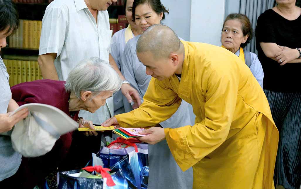 Tại buổi trao quà, Ni trưởng Thích Từ Nhẫn động viên bà con cố gắng vượt qua nghịch cảnh, luôn hướng tâm lương thiện, giữ vững niềm tin đối với Phật giáo, cầu nguyện cho chúng sanh mạnh lành, bệnh tật tiêu trừ. Những phần quà ý nghĩa này không chỉ là sự hỗ trợ vật chất mà còn là lời động viên tinh thần sâu sắc, giúp người khiếm thị cảm nhận được sự quan tâm của những người con Phật.