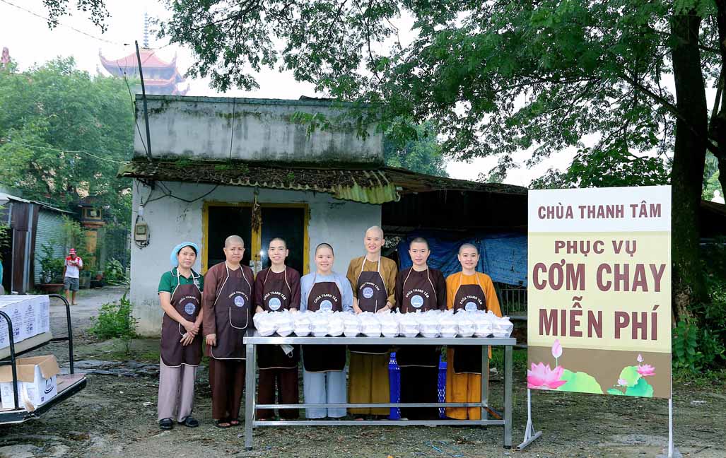 Ngày 5 / 10/ 2025 (14 tháng 8 năm Ất Tỵ). Chùa Thanh Tâm phối hợp cùng Nhà hàng chay Huệ Tâm, tiếp tục thực hiện chương trình thiện nguyện, phục vụ miễn phí 700 suất ăn chay và nước suối đến người dân địa phương.