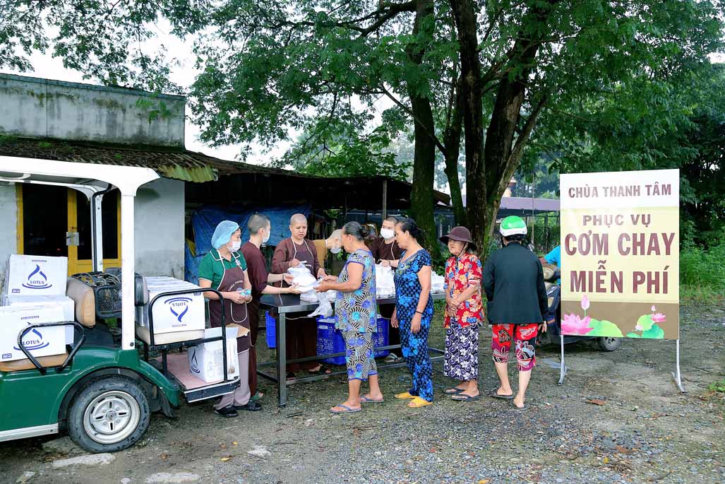 Ngày 5 / 10/ 2025 (14 tháng 8 năm Ất Tỵ). Chùa Thanh Tâm phối hợp cùng Nhà hàng chay Huệ Tâm, tiếp tục thực hiện chương trình thiện nguyện, phục vụ miễn phí 700 suất ăn chay và nước suối đến người dân địa phương.