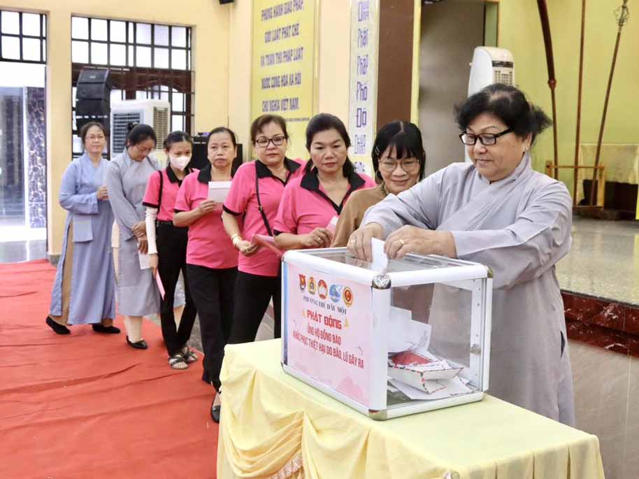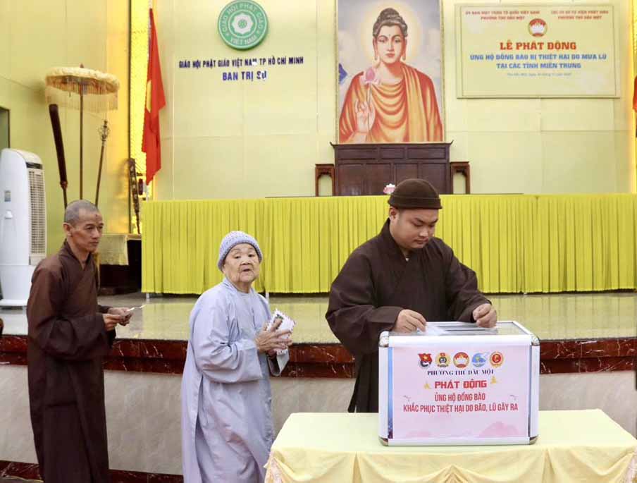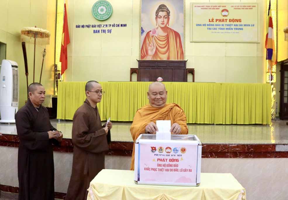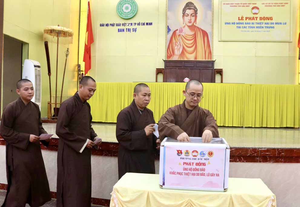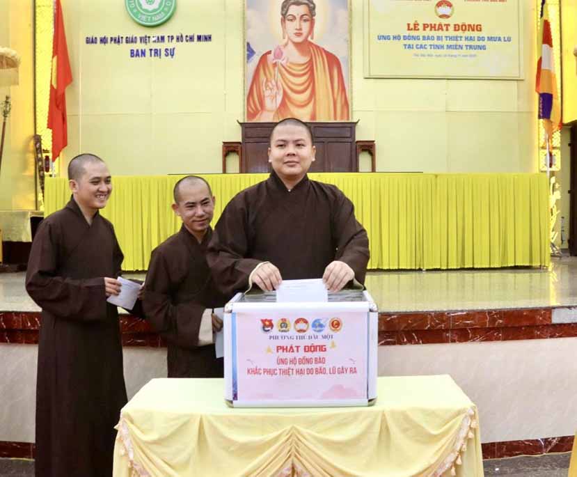 Được biết trước đó, theo báo cáo từ Văn phòng Ban Trị sự TP.Hồ Chí Minh, khu vực Bình Dương (cũ) thì từ khi hay tin bà con miền Trung bị thiệt hại nặng nề trong các đợt bão lũ, chư Tôn đức Tăng Ni trụ trì các tự viện thuộc khu vực Bình Dương (cũ) đã vận động tịnh tài, nhu yếu phẩm, thuốc men đến tận nơi chia sẻ những khó khăn hiện tại của người dân nơi đây, với tổng trị giá gần 25 tỷ đồng, với mong muốn tiếp thêm nguồn động lực giúp bà con vượt qua khó khăn, sớm ổn định lại cuộc sống.