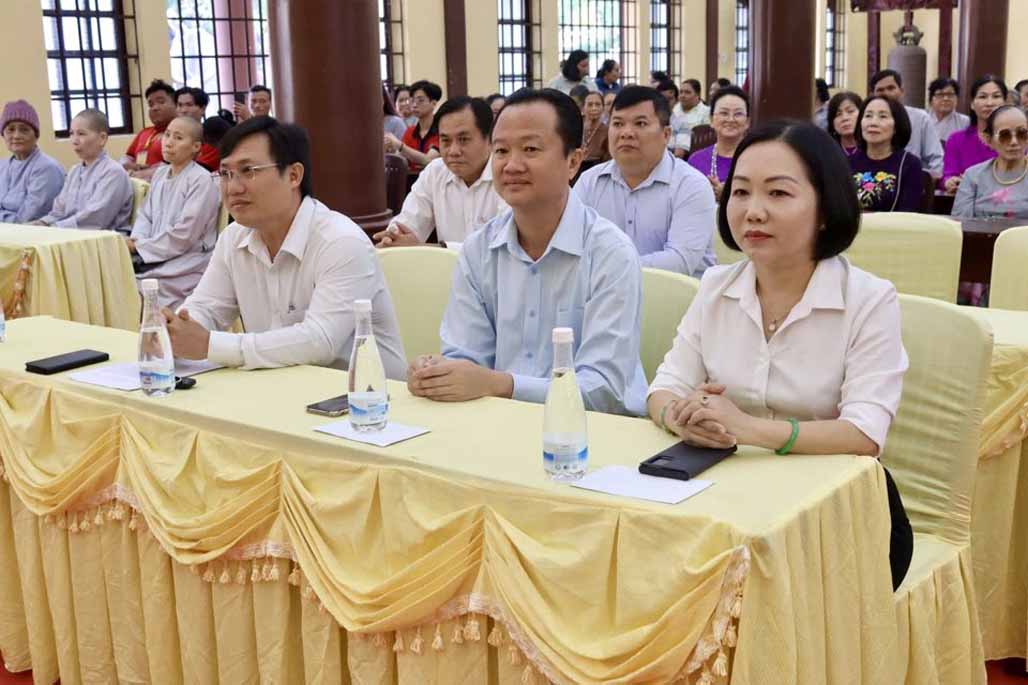Buổi lễ được sự hiện diện của: Hòa thượng Thích Huệ Thông – Phó Chủ tịch HĐTS, Trưởng ban Pháp chế Trung ương, Cố vấn Ban Trị sự GHPGVN TP.Hồ Chí Minh, Trụ trì Tổ đình Hội Khánh; TT. Thích Minh Vũ – Phó ban Trị sự kiêm Phó ban Thường trực Ban Hoằng pháp Phật giáo TP.HCM; TT. Thích Minh Lực – Phó ban Trị sự, Phó ban Thường trực Ban Phật giáo Quốc tế GHPGVN thành phố; ĐĐ. Thích Thiện Hưng – Phó ban Trị sự, Phó ban Thường trực Ban Thông tin Truyền thông PG TP; TT. Thích Huệ Tín – Phó ban Trị sự GHPGVN thành phố; ĐĐ. Thích Huệ Nghiêm – Phó Thư ký BTS PG TP.HCM, phụ trách Văn phòng PG Bình Dương (cũ); ĐĐ. Thích Huệ Nhật – Phó Thư ký Ban Trị sự Phật giáo thành phố; cùng chư Tôn đức Tăng Ni trụ trì các cơ sở tự viện các phường Thủ Dầu Một, Bình Dương…. đồng tham dự.