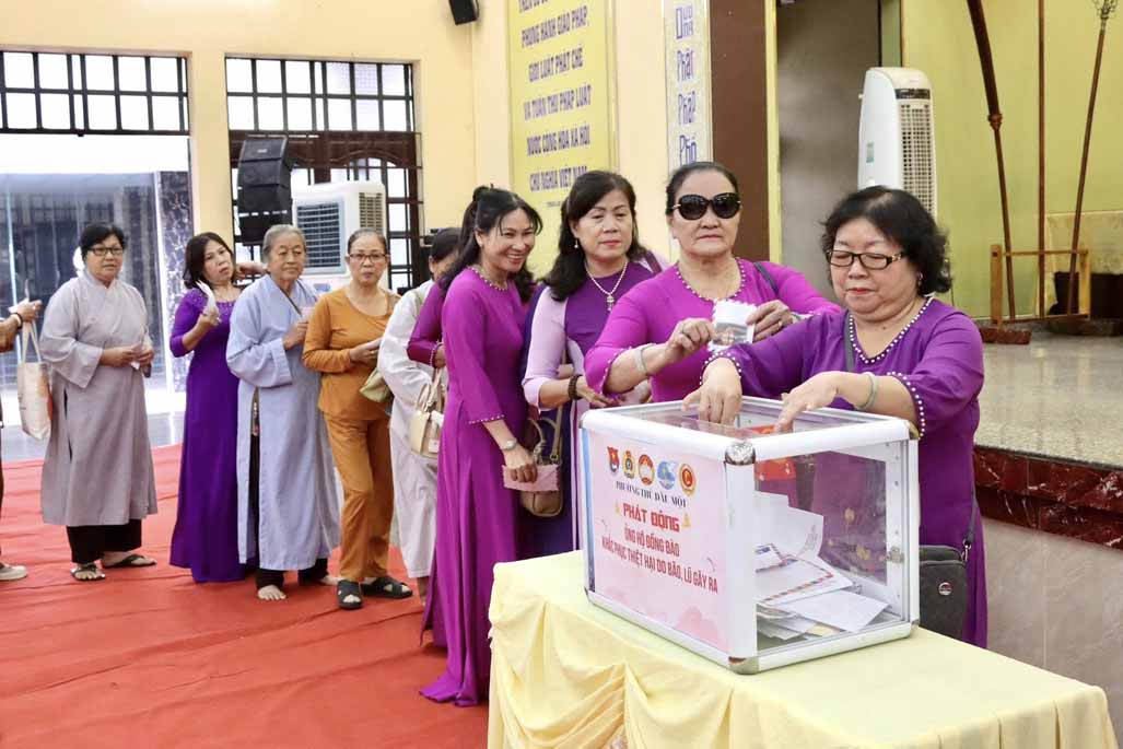 Ngay sau lễ phát động, lãnh đạo địa phương, chư Tôn đức Tăng Ni và Phật tử đã trực tiếp tham gia quyên góp được gần 100 triệu đồng và 1.000 vỉ thuốc, thể hiện tinh thần hưởng ứng mạnh mẽ đối với hoạt động đầy ý nghĩa này. Toàn bộ nguồn lực quyên góp sẽ được Ủy ban MTTQ phường Thủ Dầu Một tổng hợp và chuyển đến tận tay người dân vùng bị ảnh hưởng trong thời gian sớm nhất.