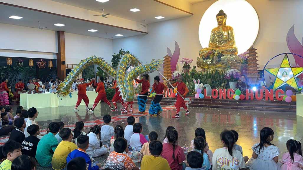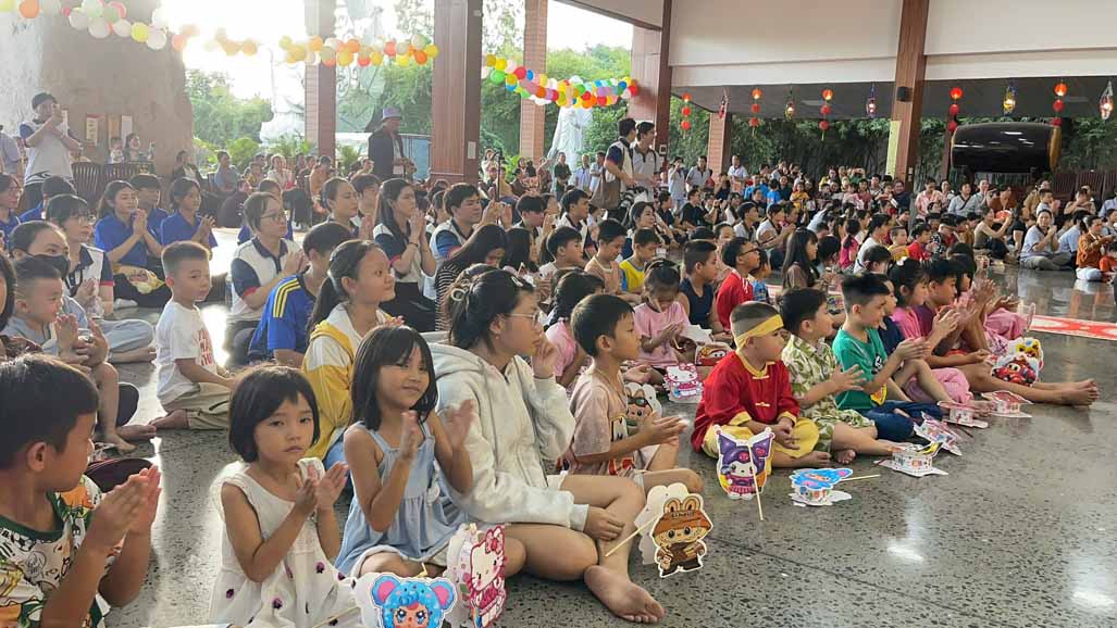 Chiều ngày 5 tháng 10 năm 2025 (14/ 8/ Ất Tỵ), trong không khí rộn ràng của mùa trăng Rằm, Tu Viện Long Hưng (P. Bình Tân, TP. Hồ Chí Minh) đã trang nghiêm tổ chức chương trình “Vui Tết Trung Thu – Vui Hội Trăng Rằm”, thu hút hơn 1000 em thiếu nhi cùng quý phụ huynh địa phương tham dự.