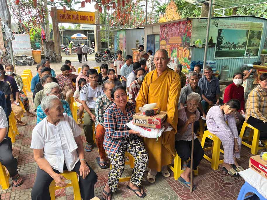 Tại chương trình, Thượng tọa Thích Huệ Đạt – Ủy viên ban Trị sự GHPGVN tỉnh Vĩnh Long, Trụ trì Niệm Phật đường Bình An, cùng quý Phật tử đã gửi tặng 110 phần quà đến các hộ gia đình khó khăn.